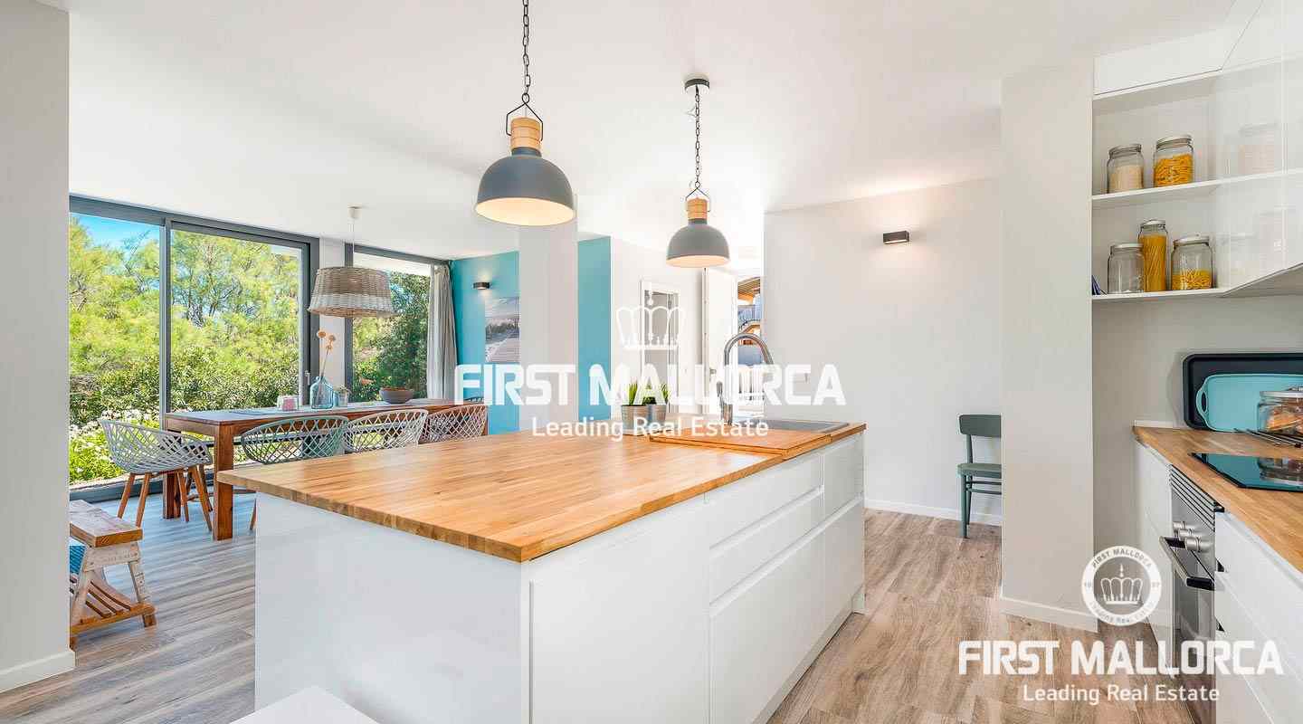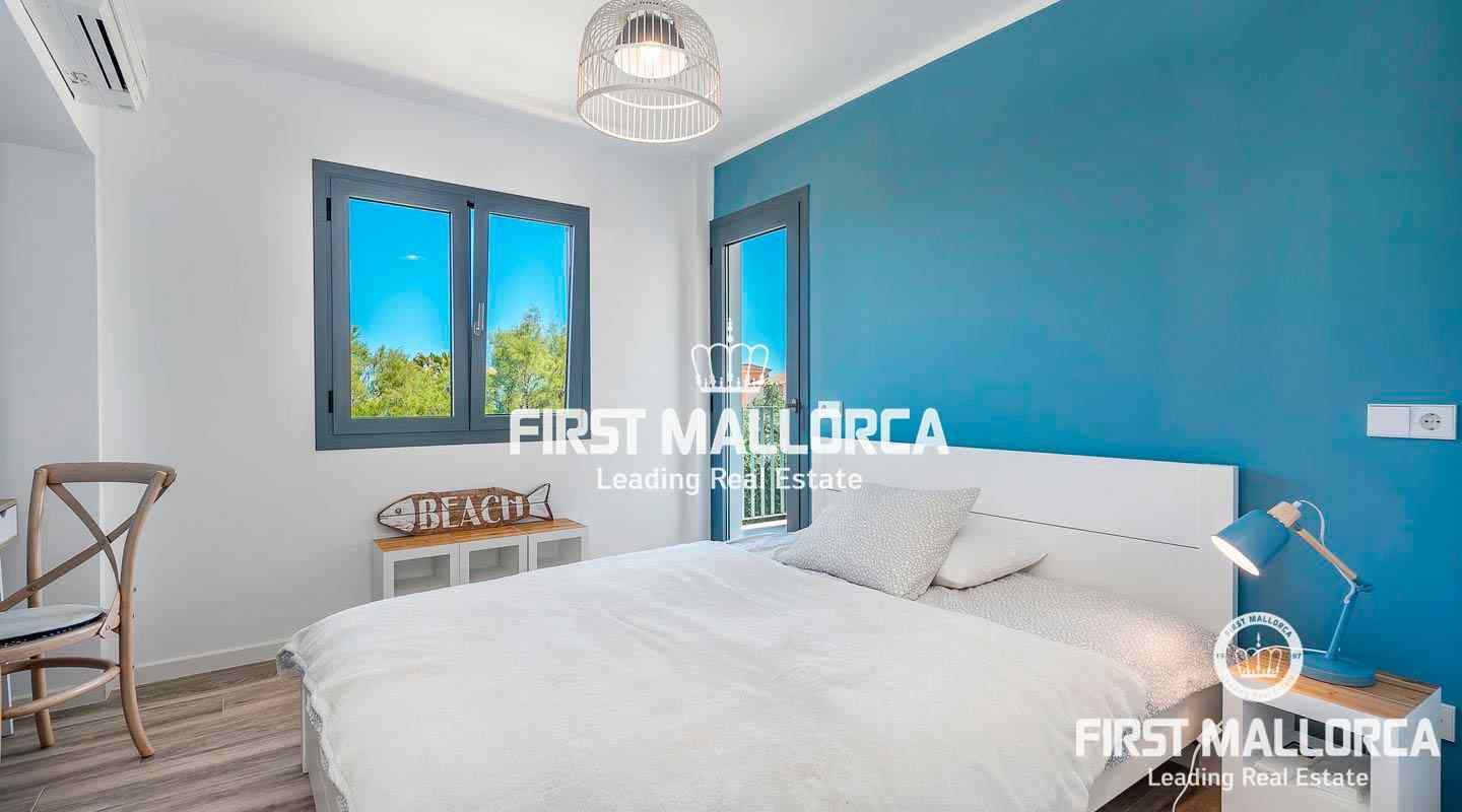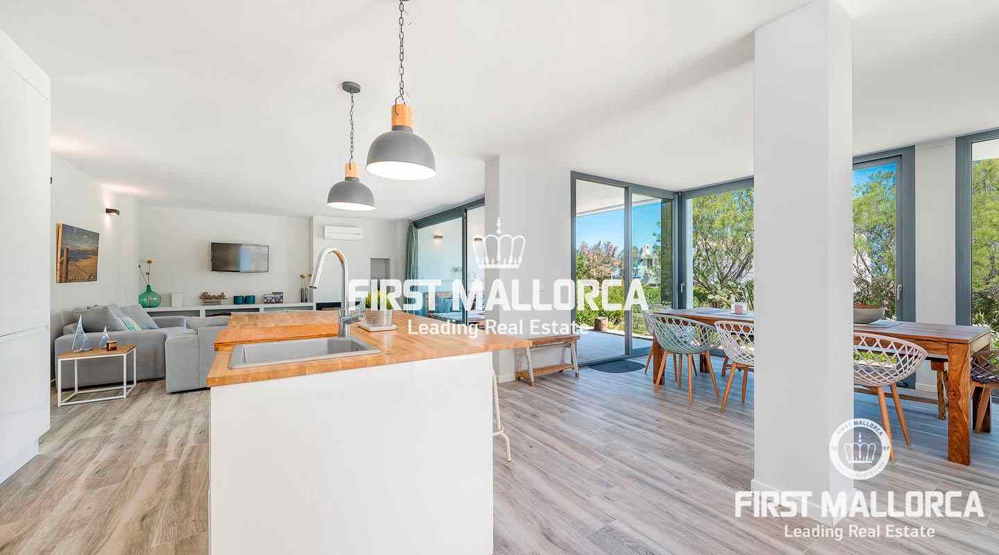 Esta villa construida en 2018 goza de una ubicación fantástica en la tercera línea de la playa natural de Son Serra de Marina, una de las playas más preciosas de Mallorca.