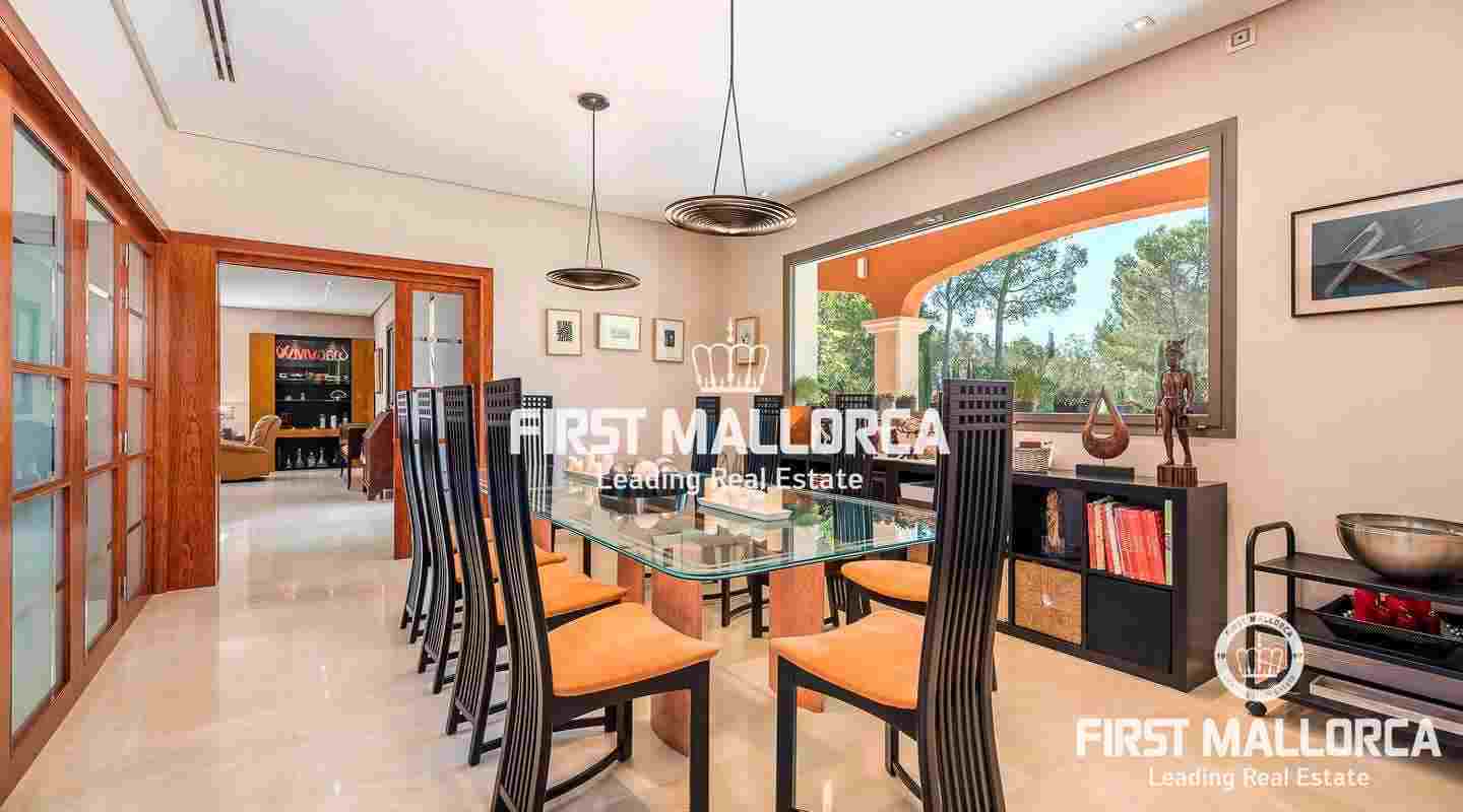 Esta elegante villa familiar, construida en 2011, se encuentra en un amplio solar con jardines orientado al sur en la exclusiva y tranquila zona residencial de Son Vida. Se ha dedicado mucho tiempo y esfuerzo a crear una generosa, elegante y a la vez práctica casa familiar, que conecta espacios interiores perfectamente con el jardín subtropical y las amplias terrazas. La villa destaca por su hermosa entrada de doble altura muy representativa y el jardín que es la verdadera joya de esta propiedad.