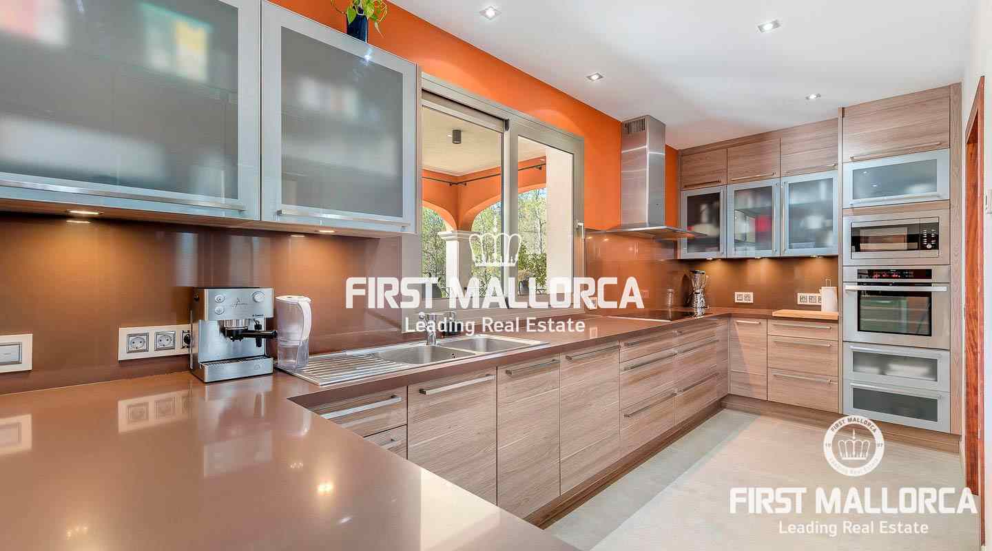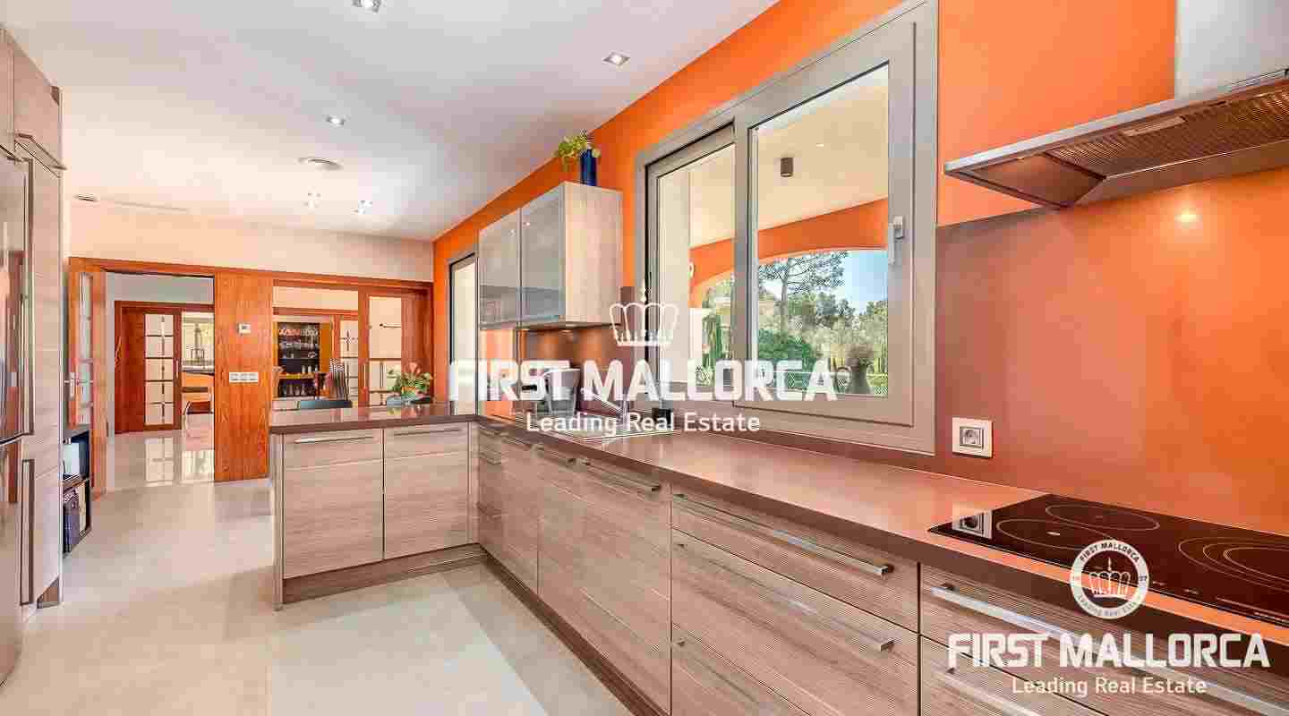 La planta baja dispone de un gran salón con comedor adyacente, ambos con acceso directo una gran terraza cubierta, una cocina independiente totalmente equipada y la suite principal con un amplio baño en suite y vestidor. Además hay otro dormitorio con baño en suite. La primera planta consta de otros 3 dormitorios, cada uno con baño en suite y acceso a la terraza. El sótano ofrece cuartos completos para el personal, varios espacios de almacenamiento y un garaje para 3 coches.