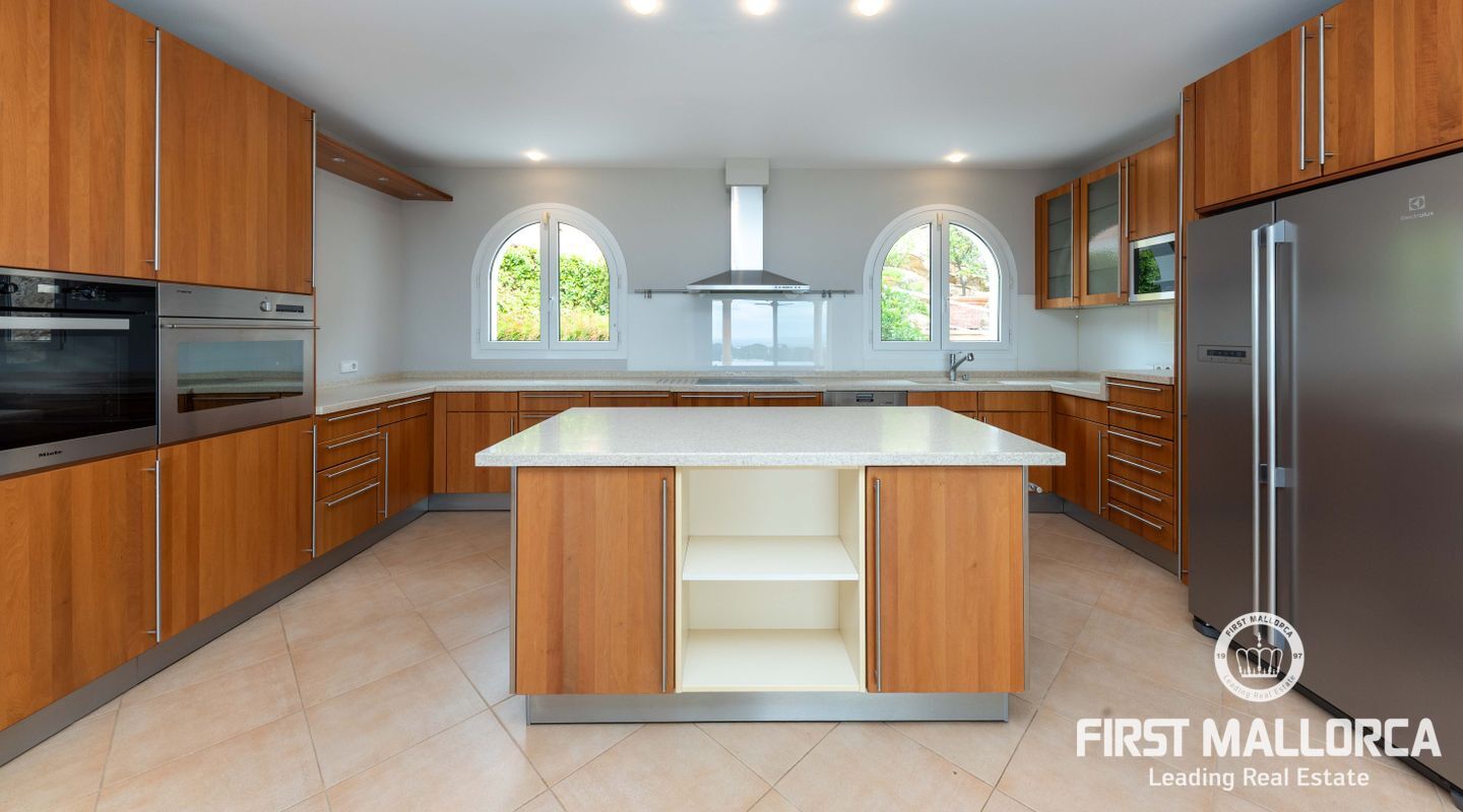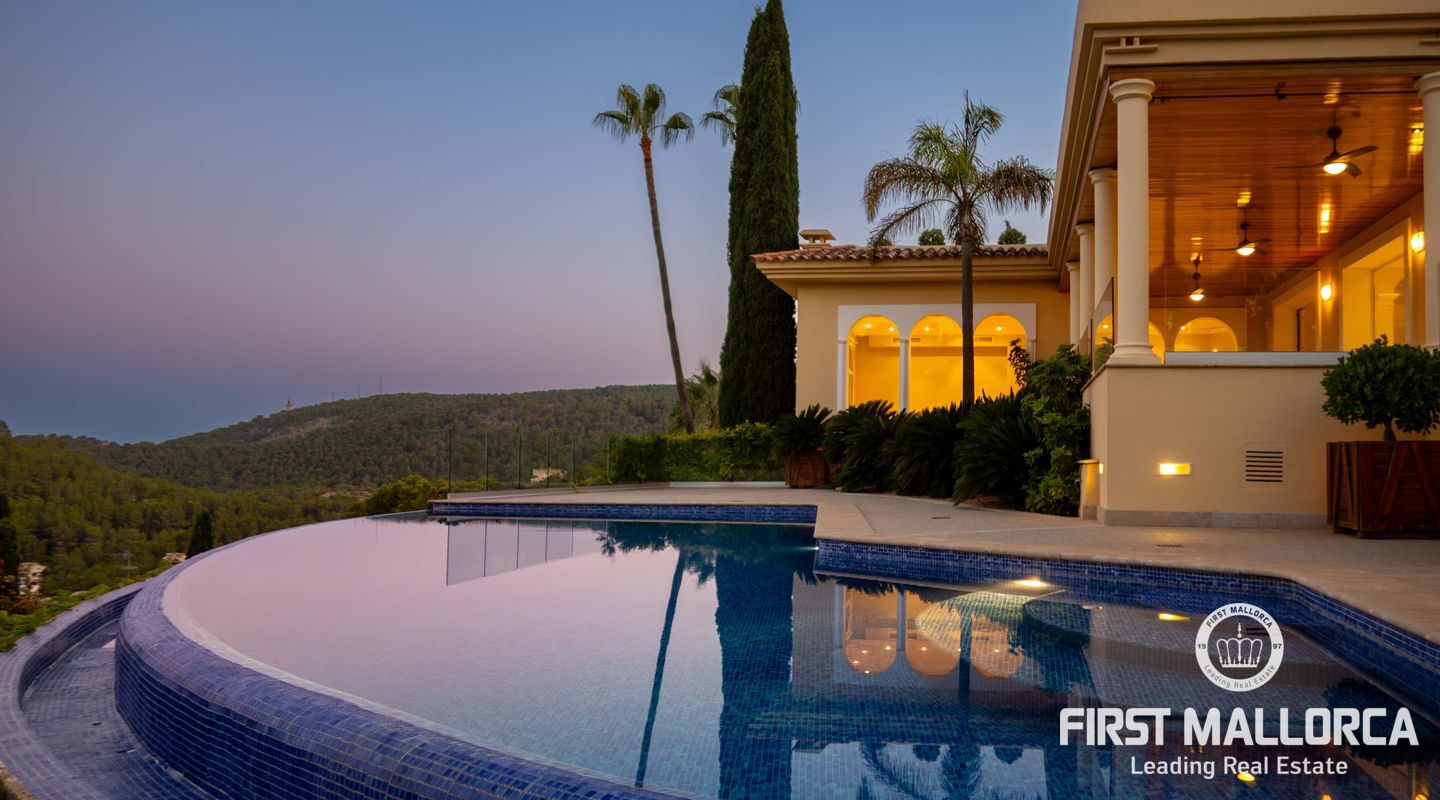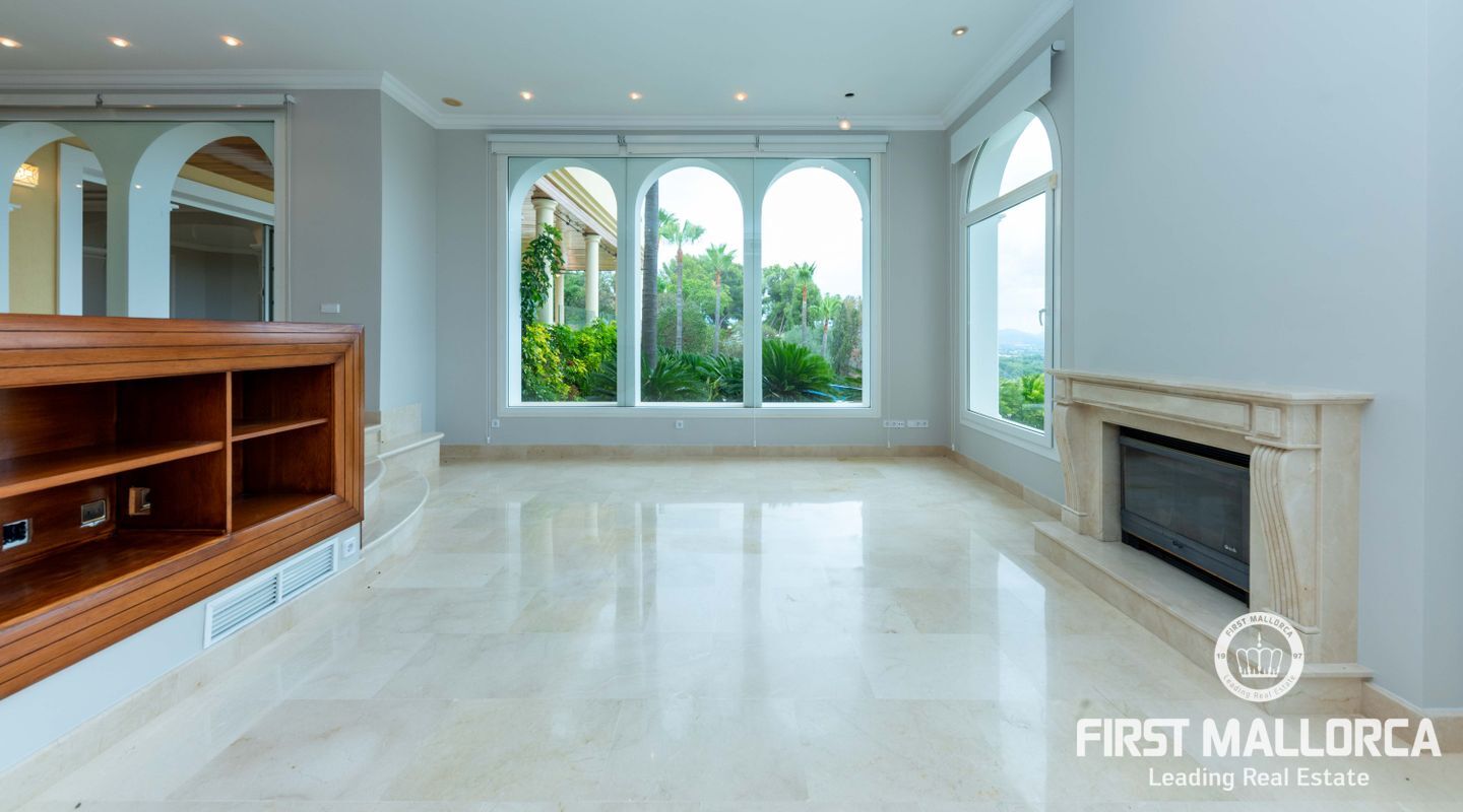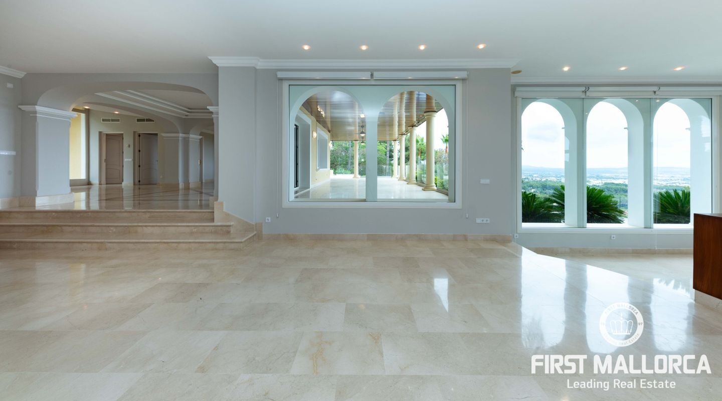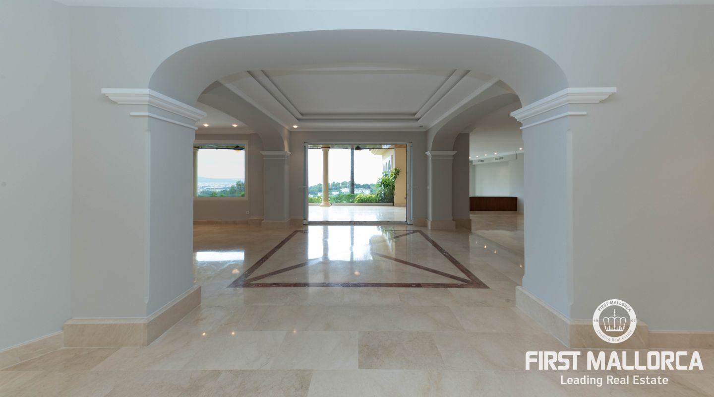 Esta elegante villa de estilo clásico se encuentra en una amplia parcela de aproximadamente 2.016 m², en una zona elevada de Son Vida. Construida en 1999 por su actual propietario, la propiedad destaca por su excelente calidad de construcción y ofrece unos 598 m² de superficie construida, con impresionantes vistas al mar y a la bahía de Palma. Un acceso privado y cómodo conduce a la majestuosa entrada principal. En la planta baja se ubican un amplio salón, dos comedores, una espaciosa cocina, aseo de cortesía y varios espacios de almacenamiento. Además, cuenta con un dormitorio de invitados con baño en suite y entrada independiente. Desde esta planta se accede a una generosa terraza cubierta, ideal para disfrutar del clima mediterráneo. La planta superior alberga un espectacular dormitorio principal con vestidor y un amplio baño en suite, junto con dos dormitorios dobles adicionales, también con baño en suite, y una estancia adicional con múltiples posibilidades de uso. Todas las habitaciones gozan de vistas panorámicas al mar. Entre otras comodidades, la villa dispone de aire acondicionado frío/calor, suelos de mármol, doble acristalamiento, trasteros, cochera para dos vehículos y un sótano que ocupa toda la superficie de la casa.
