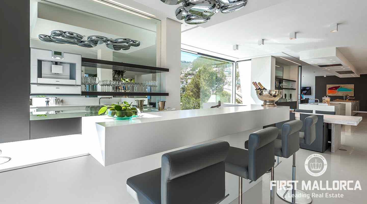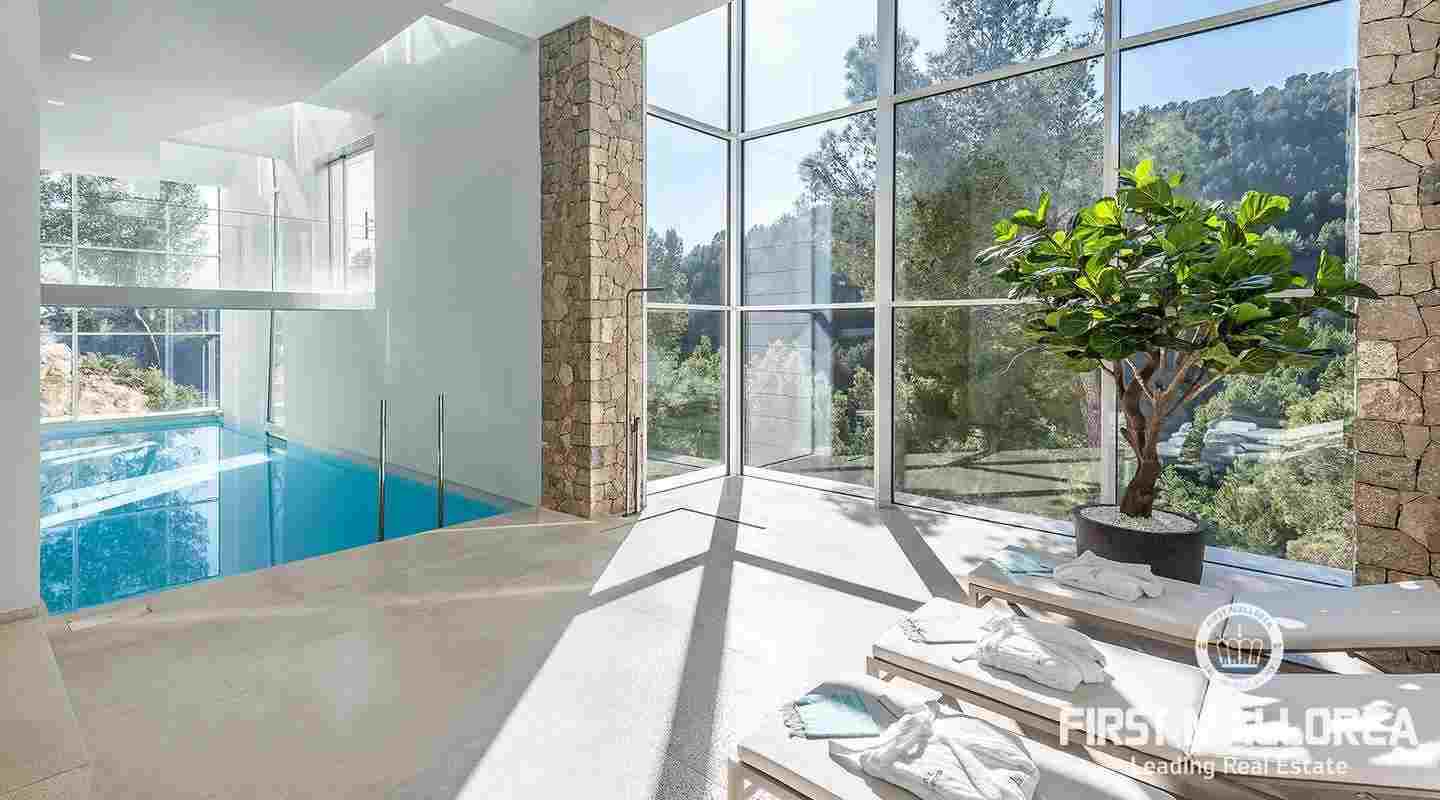 Una auténtica pieza asombrosa de arquitectura incluso para Son Vida: villa fantástica de calidades más altas, construida aplicando tecnologías ultramodernas y las últimas normas ecológicas como energía geotérmica y placas solares. La propiedad de 10 dormitorios y 8 baños, incluyendo una amplia casa de invitados de 200 m2 con 3 dormitorios con baños en suite, se encuentra en un solar de 6.200 m2 con preciosos jardines mediterráneos y excepcionales vistas al mar. Dispone de una superficie construida de 2.414 m2 incluyendo aproximadamente 150 m2 de terrazas cubiertas más aproximadamente 350 m2 de terrazas descubiertas. Otras características incluyen una amplia zona de estar con sofisticados efectos de iluminación por LED, bar, cocina de lujo profesional de Bulthaupt con zona de show cooking, comedor, salón de TV, cine casera, sala de lectura, biblioteca, atrio, centro de spa y wellness con piscina interior y zona amplia de sauna y gimnasio, baños de Boffi y Dornbracht, sistema electrónico inteligente BUSS, vigilancia por video y una amplia zona de piscina exterior que debido a un sistema hidráulico de plataformas puede duplicar la superficie de las terrazas exteriores. Son Vida es una de las más antiguas urbanizaciones en Mallorca y una de las zonas residenciales más prestigiosas en la isla. Se encuentra rodeada de tres campos de golf espectaculares y a pocos minutos en coche del centro y de varios puertos deportivos. En la zona se hallan 2 hoteles exclusivos de 5 estrellas. El conocido Hotel Son Vida pertenece a los "Leading Hotels of the World" y en él se han alojado personalidades como Grace Kelly o Aristóteles Onassis.