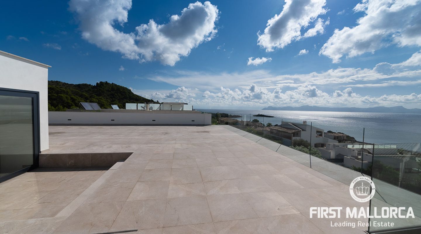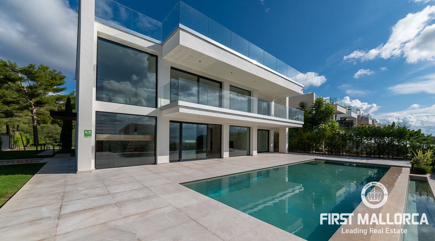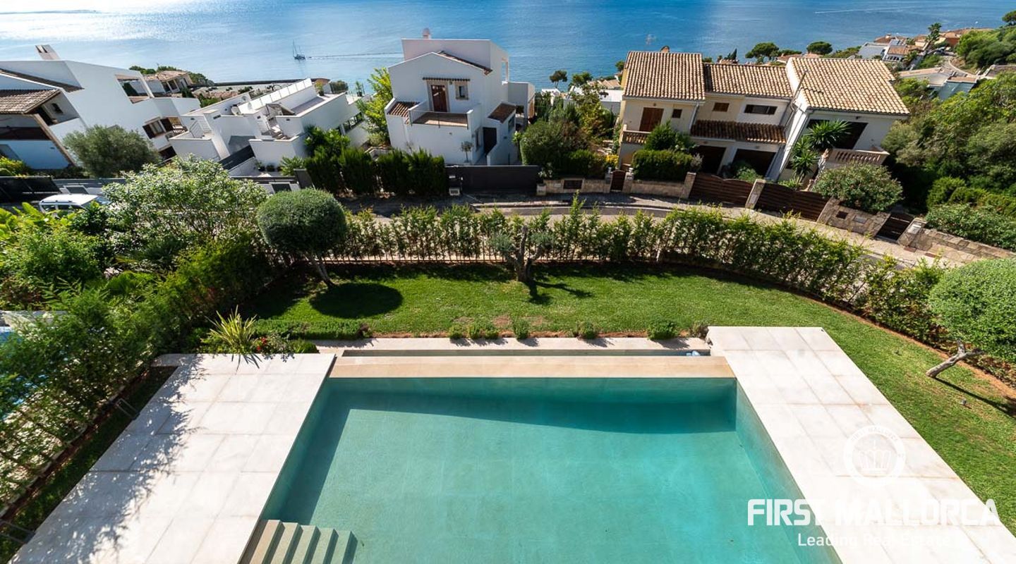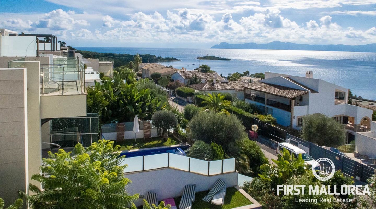 Esta villa está situada al final de un callejón sin salida en la zona residencial de Aucanada en el norte de Mallorca.