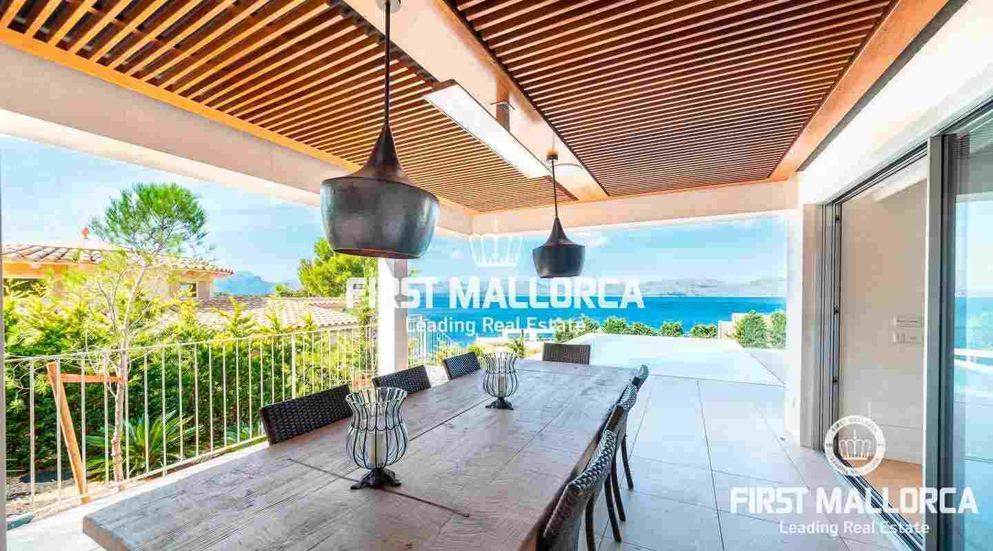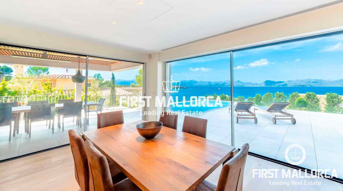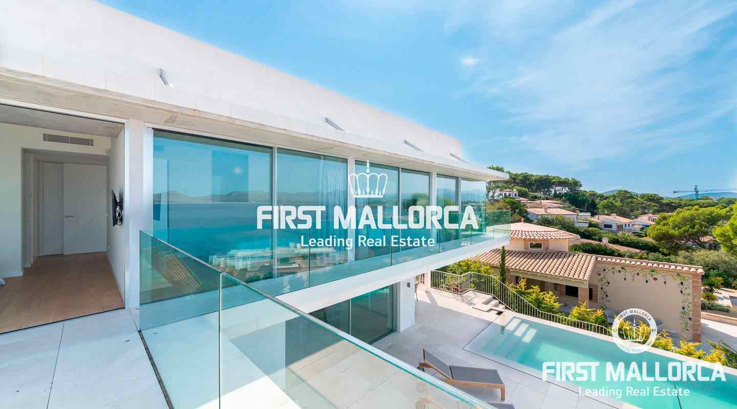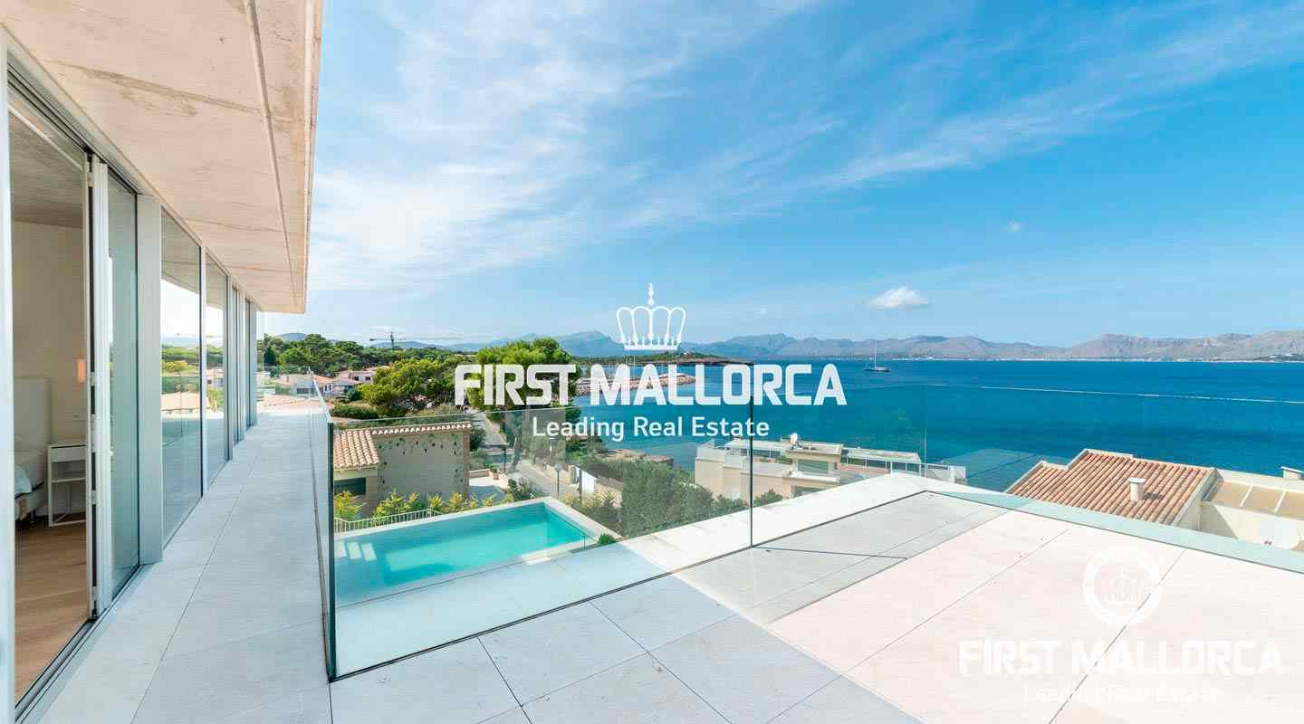 Magnifica Villa de reciente construcción en una de las zonas mas espectaculares del Norte de Mallorca. Esta preciosa Villa está situada en la exclusiva zona residencial de Bonaire, en el norte de la isla de Mallorca. La excelente ubicación nos ofrece una fabulosa vista sobre toda la bahía hasta Puerto de Pollensa. La vivienda esta distribuida en tres plantas. En la planta principal se encuentra la acogedora sala de estar, una espectacular cocina- completamente equipada- y una zona comedor. Los grandes ventanales nos permiten unas vistas increíbles y en verano amplían la zona de estar con la gran terraza cubierta y piscina. En la planta primera encontramos cuatro habitaciones dobles, cada una con baño en suite y vistas al mar. Las persianas eléctricas proporcionan privacidad. En la planta sótano hay un gran lavadero y un garaje con espacio para hasta 6 coches. ¡Contáctenos para ver esta fabulosa villa con vista al mar!