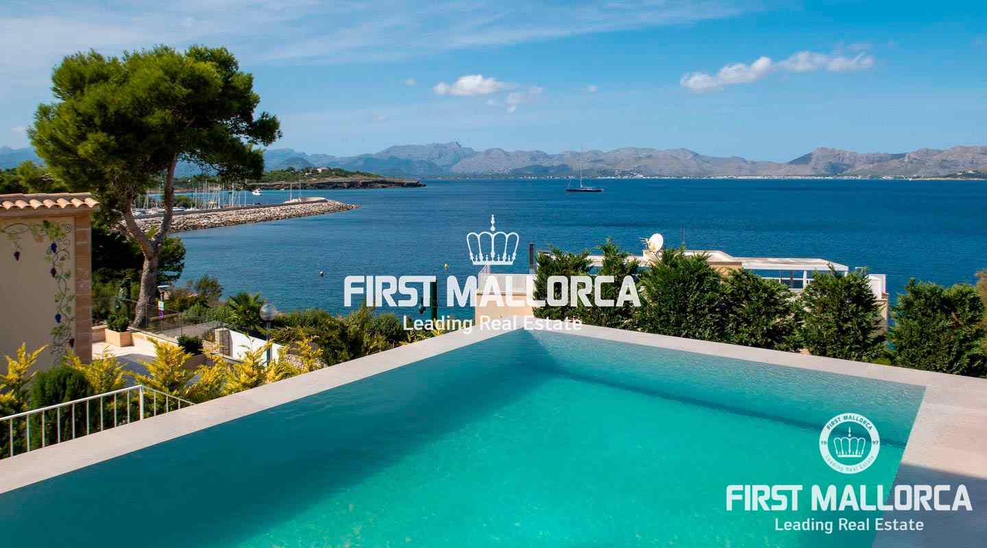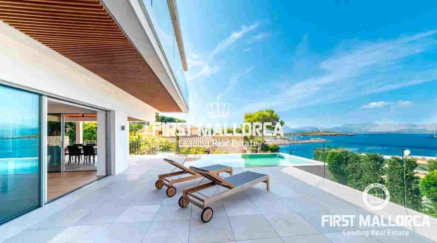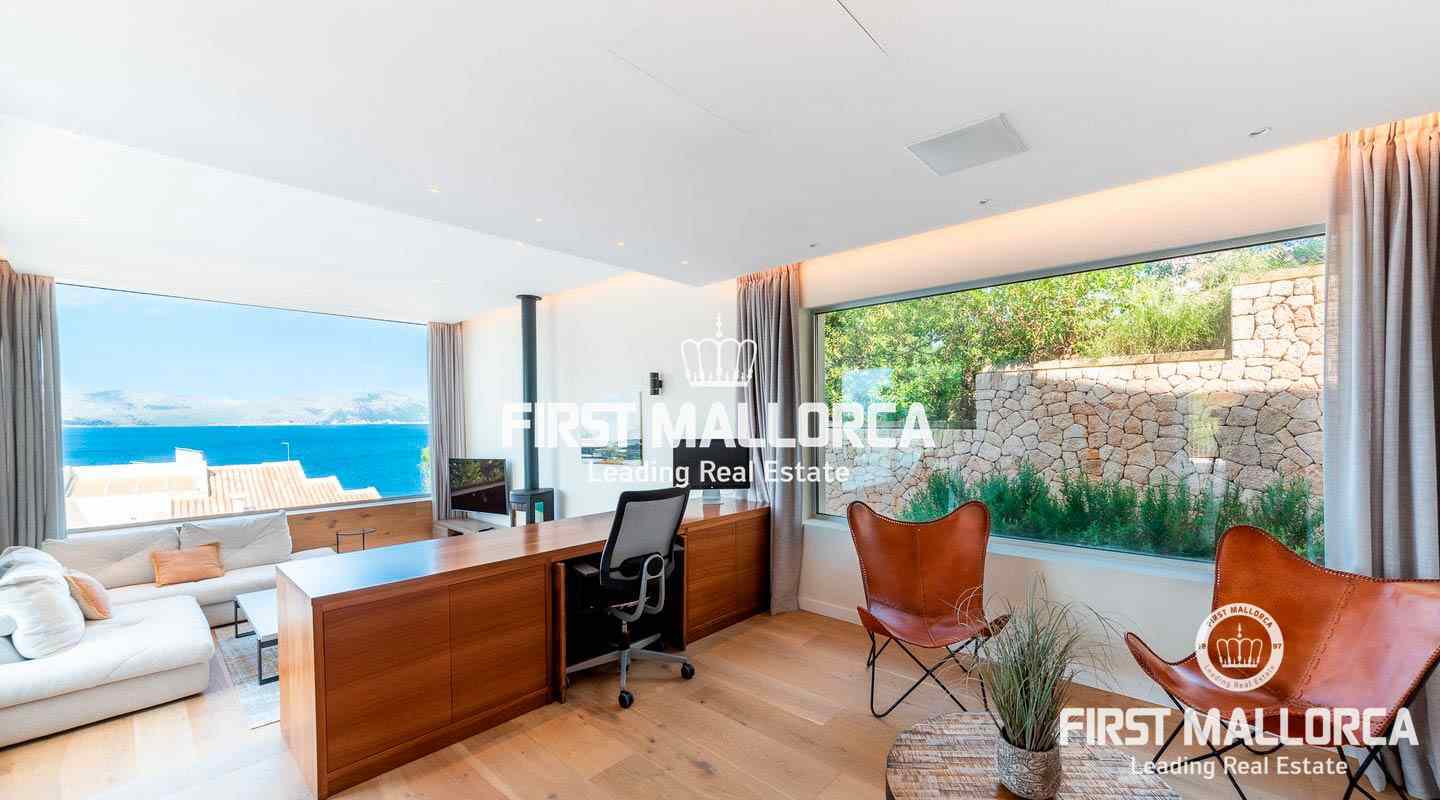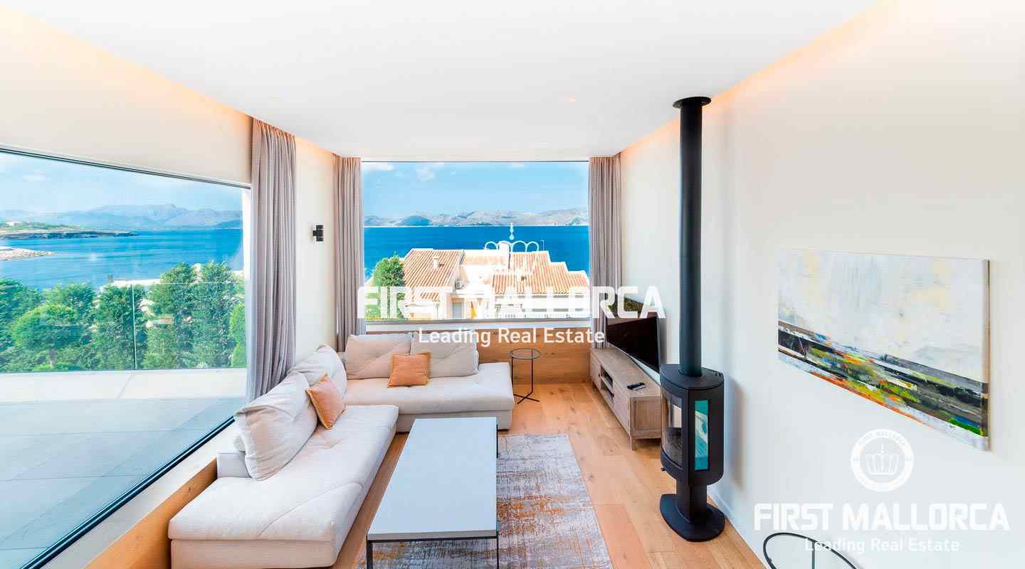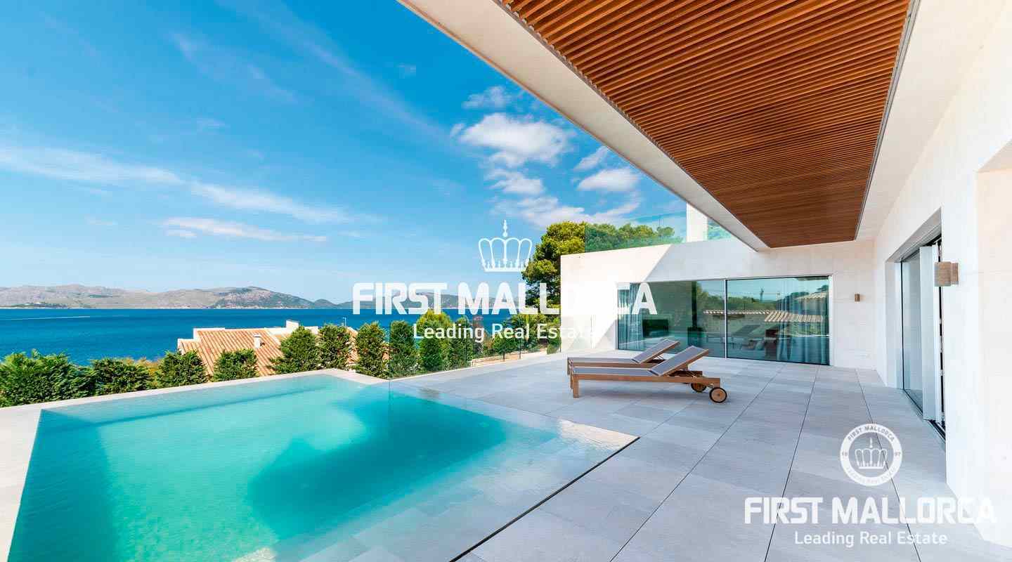 Magnifica Villa de reciente construcción en una de las zonas mas espectaculares del Norte de Mallorca. Esta preciosa Villa está situada en la exclusiva zona residencial de Bonaire, en el norte de la isla de Mallorca. La excelente ubicación nos ofrece una fabulosa vista sobre toda la bahía hasta Puerto de Pollensa. La vivienda esta distribuida en tres plantas. En la planta principal se encuentra la acogedora sala de estar, una espectacular cocina- completamente equipada- y una zona comedor. Los grandes ventanales nos permiten unas vistas increíbles y en verano amplían la zona de estar con la gran terraza cubierta y piscina. En la planta primera encontramos cuatro habitaciones dobles, cada una con baño en suite y vistas al mar. Las persianas eléctricas proporcionan privacidad. En la planta sótano hay un gran lavadero y un garaje con espacio para hasta 6 coches. ¡Contáctenos para ver esta fabulosa villa con vista al mar!
