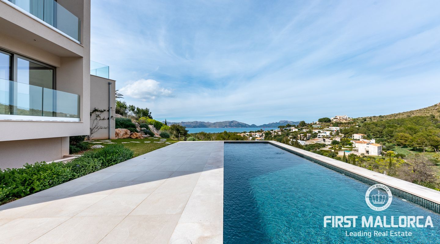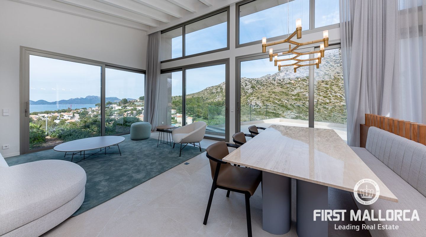 Esta excepcional villa, en venta en Bonaire, tiene una de las mejores posiciones en la cima de una colina en una deseable zona residencial del norte de Mallorca, su codiciada ubicación ofrece impresionantes vistas panorámicas de la bahía de Pollensa y está a sólo 5 minutos del puerto deportivo y pintorescas bahías. El énfasis principal de la villa está en el amplio salón-comedor con cocina de diseño; equipada con electrodomésticos integrados de calidad, materiales superiores y ventanas de suelo a techo, la villa permite una abundancia de luz natural en el interior y ofrece fantásticas vistas al mar. Además, hay cuatro dormitorios dobles y tres baños (dos en suite) con vistas al mar o a la montaña. En el exterior se encuentran jardines, una piscina privada con zona para tomar el sol, y varias terrazas donde se puede disfrutar de las vistas desde su ubicación privilegiada. Otras características incluyen un sistema Smart Home, un aseo de invitados, aire acondicionado reversible y calefacción por suelo radiante para la comodidad durante todo el año. No dude en ponerse en contacto con nuestro equipo FIRST MALLORCA para obtener más información y una cita para ver la propiedad.