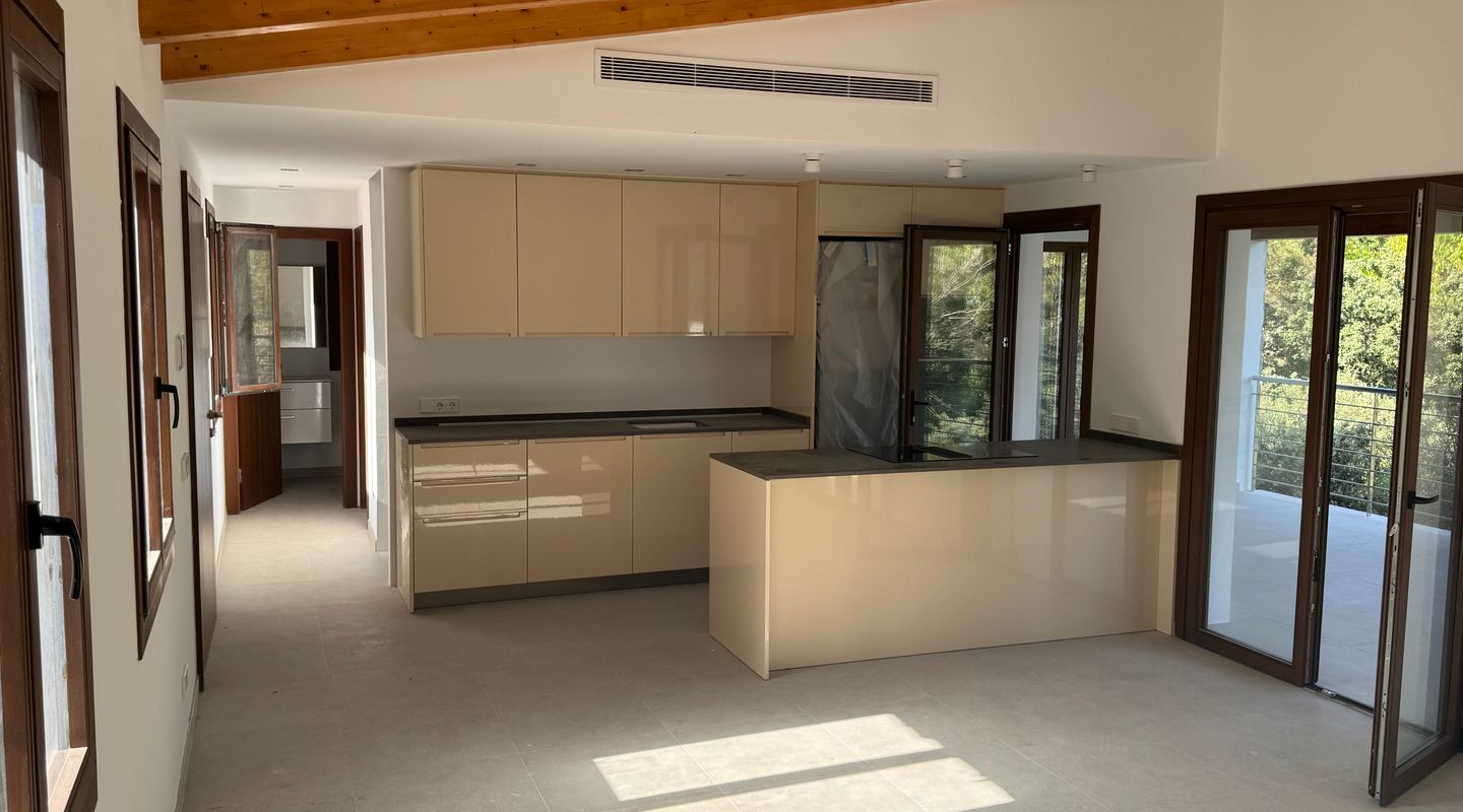 Esta villa a estrenar con vistas al mar estará terminada en diciembre de 2025. Al entrar en la villa, se accede a la cocina y al salón abierto, que da acceso a una enorme terraza con vistas al bosque protegido y a la Fortaleza de Puerto Pollensa. Detrás de la cocina, encontrará un baño y un amplio dormitorio con vistas al bosque y al mar. Al bajar a la planta baja, encontrará a su izquierda un dormitorio con baño en suite y acceso a una zona exterior. En el centro, encontrará un amplio lavadero y un dormitorio principal con baño en suite y acceso a otra terraza con vistas al mar. En el futuro, una vez levantada la moratoria, podrá construir una piscina, pero también tendrá la opción de caminar hasta el mar (200 metros). La casa está equipada con calefacción por suelo radiante y aire acondicionado integrado de primera marca. Una casa a estrenar en Bonaire con vistas al mar por menos de un millón de Euros, solo hay una.