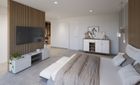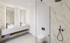 La planta baja cuenta con un gran salón-comedor con cocina abierta totalmente equipada, un dormitorio en suite y un aseo de cortesía. En la planta superior se encuentran tres dormitorios, todos con vestidor y baño privado, además de una terraza en la azotea con vistas a la Bahía de Palma y la Serra de Tramuntana.
