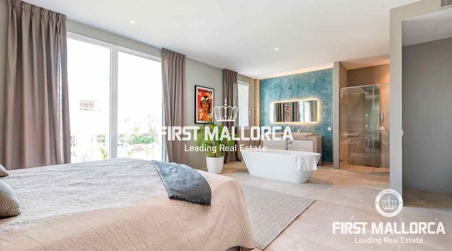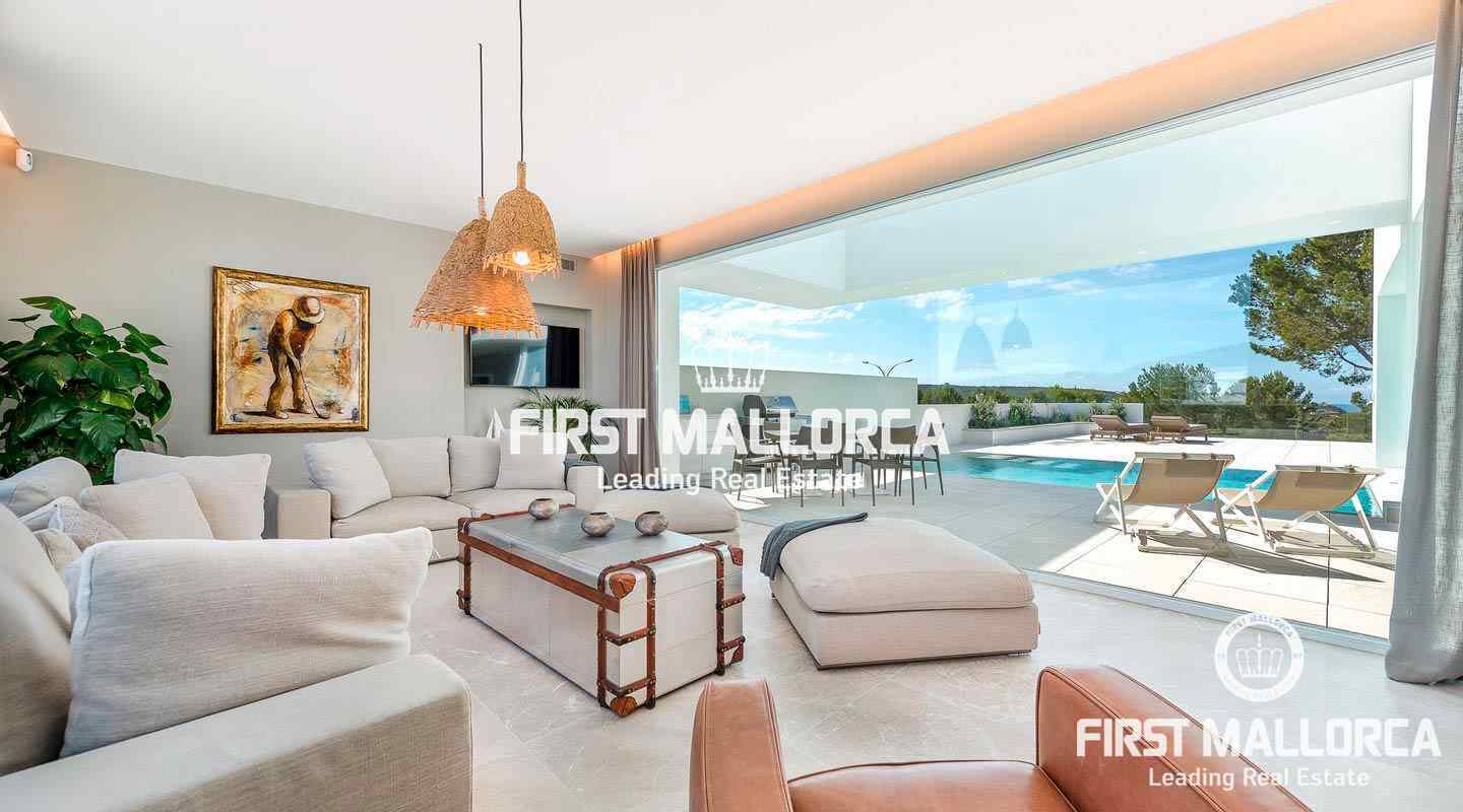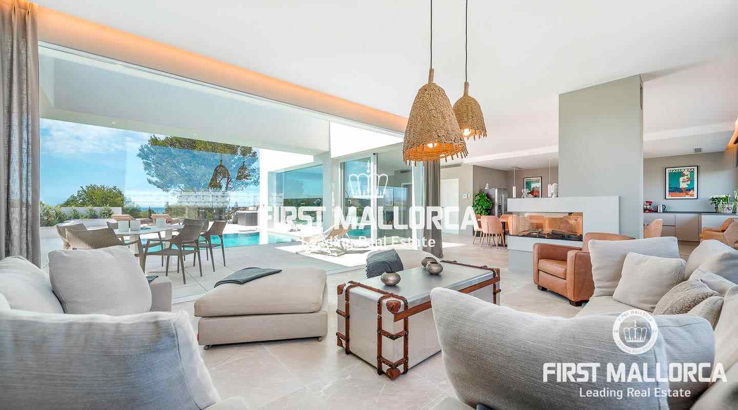 Esta moderna y luminosa villa, construida en 2019, goza de espléndidas vistas al mar y las montañas y de una excelente ubicación en Nova Santa Ponsa, a pocos minutos de hermosas playas, campos de golf y el moderno puerto deportivo de Port Adriano.