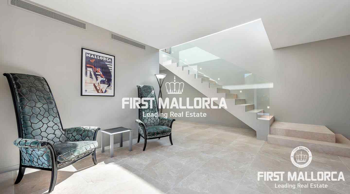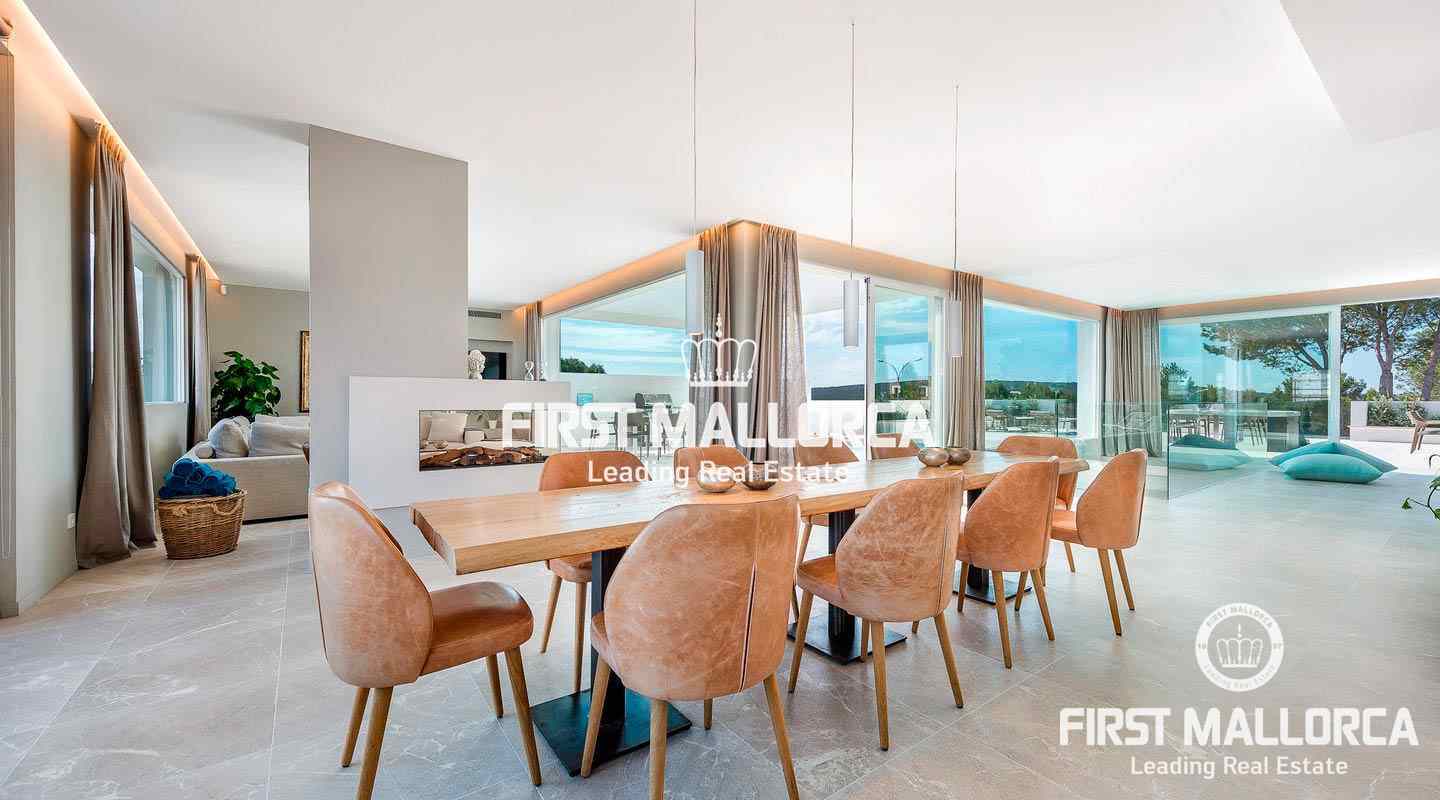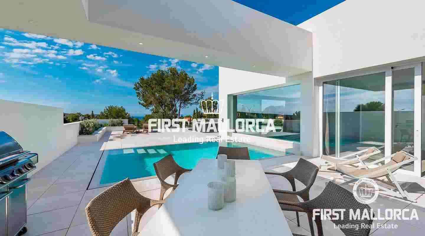 Esta moderna y luminosa villa, construida en 2019, goza de espléndidas vistas al mar y las montañas y de una excelente ubicación en Nova Santa Ponsa, a pocos minutos de hermosas playas, campos de golf y el moderno puerto deportivo de Port Adriano.