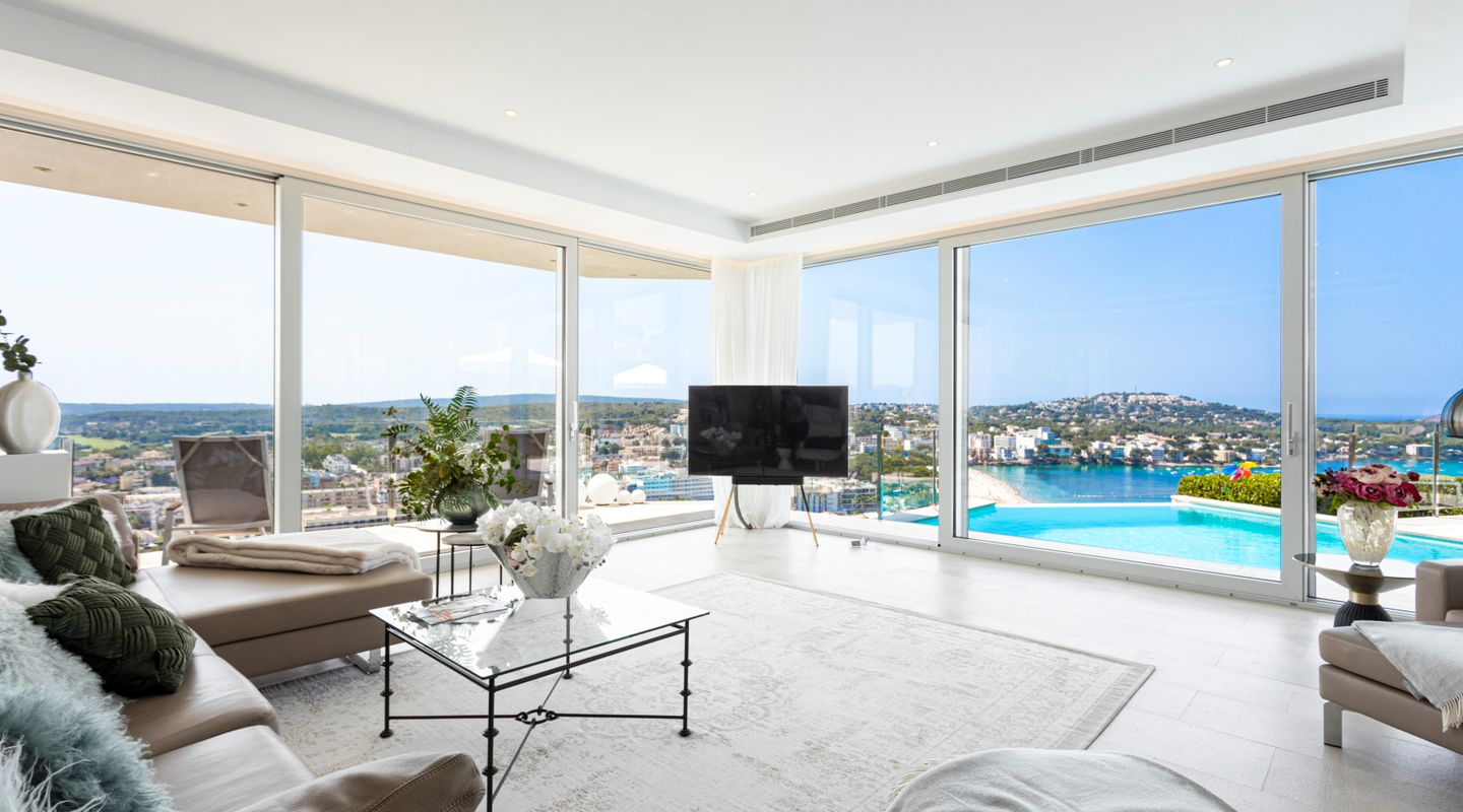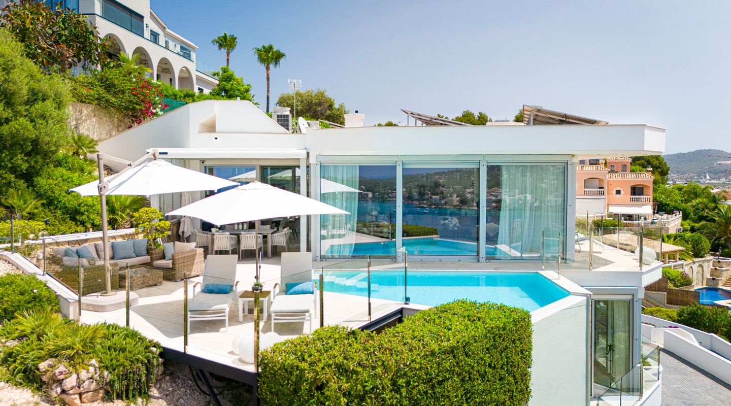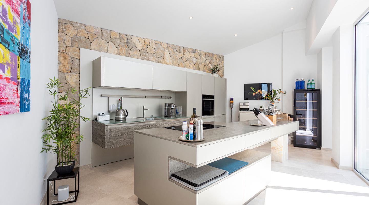 Impresionantes vistas panorámicas al mar y abundante luz natural crean un ambiente luminoso, abierto y acogedor en toda la casa. La propiedad está equipada con aire acondicionado frío/calor y calefacción por suelo radiante, así como con un sistema solar con almacenamiento en batería y persianas exteriores totalmente automáticas. Un sistema domótico de última generación permite controlar cómodamente la iluminación, la climatización y otras funciones del hogar, garantizando el máximo confort y eficiencia.