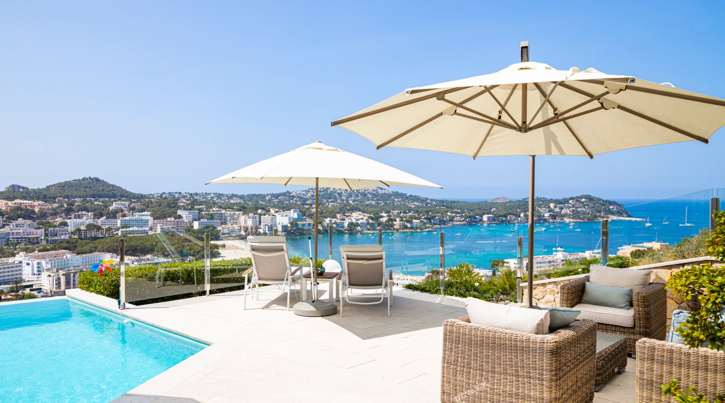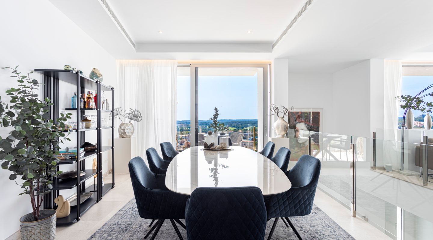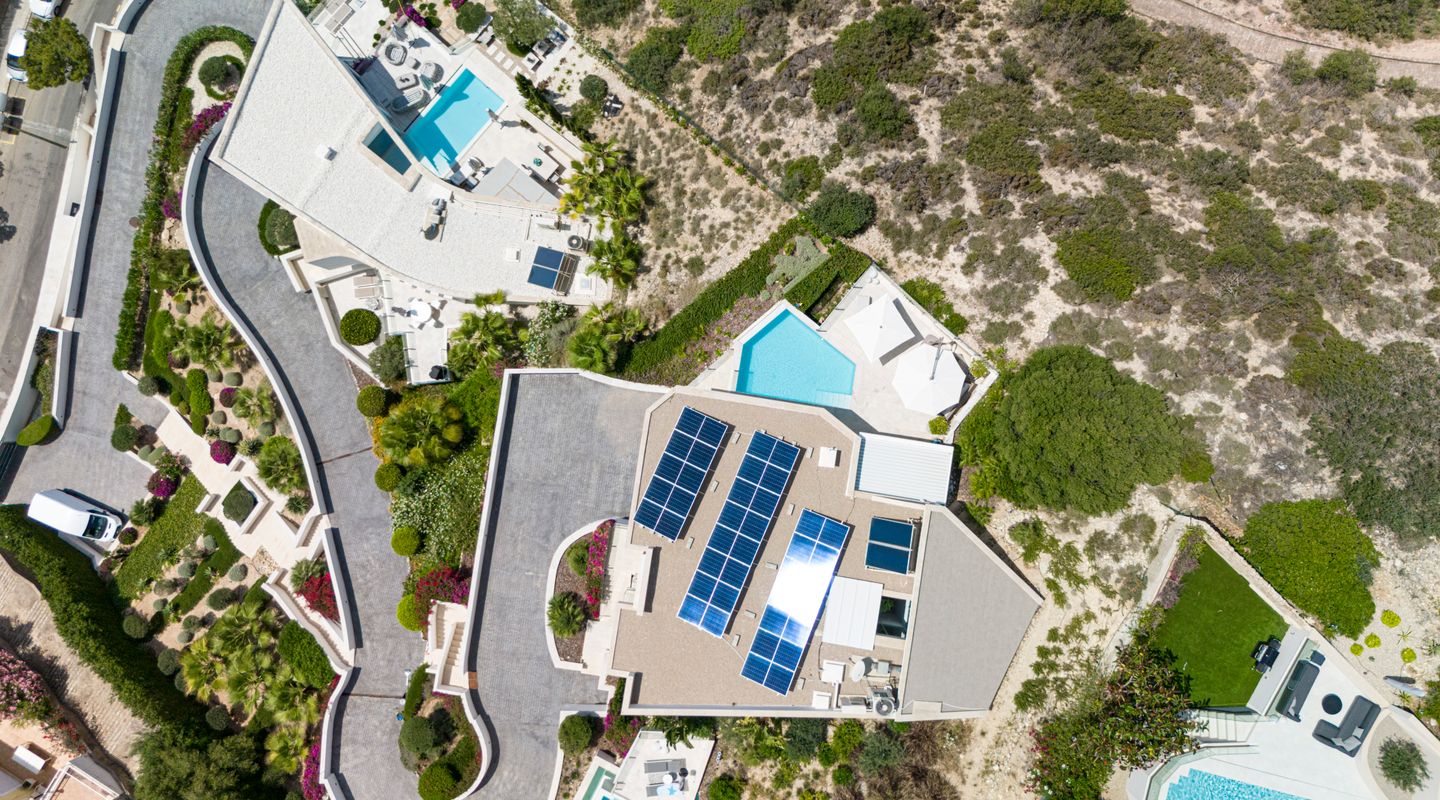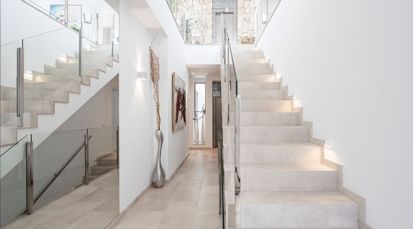 Impresionantes vistas panorámicas al mar y abundante luz natural crean un ambiente luminoso, abierto y acogedor en toda la casa. La propiedad está equipada con aire acondicionado frío/calor y calefacción por suelo radiante, así como con un sistema solar con almacenamiento en batería y persianas exteriores totalmente automáticas. Un sistema domótico de última generación permite controlar cómodamente la iluminación, la climatización y otras funciones del hogar, garantizando el máximo confort y eficiencia.