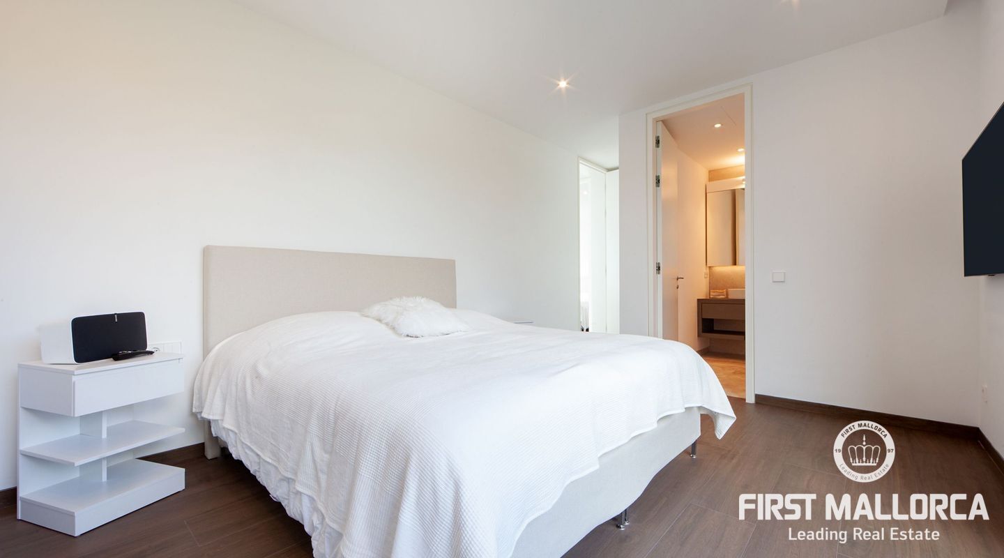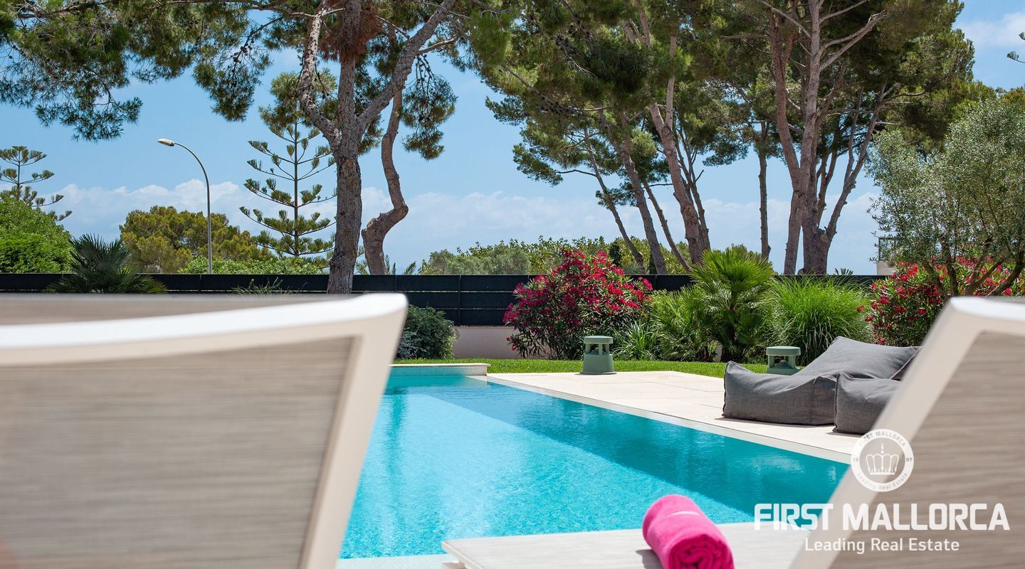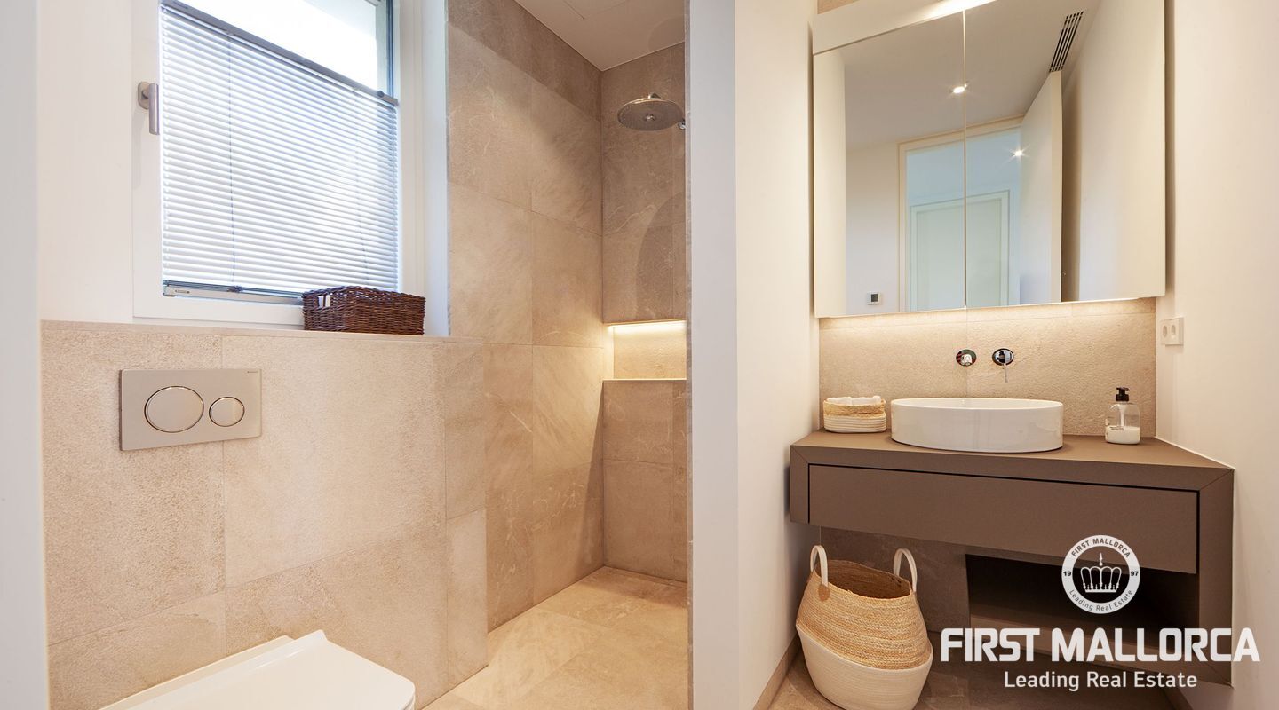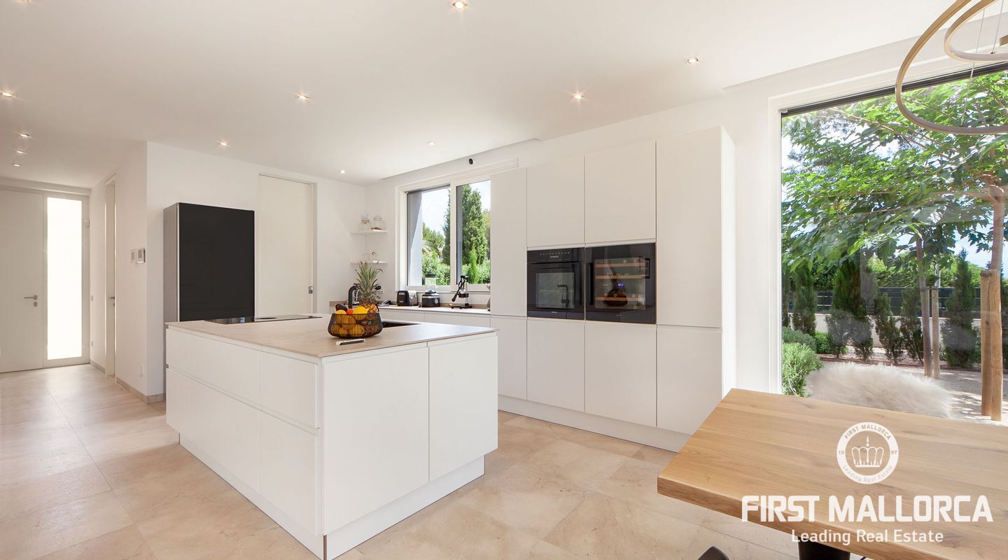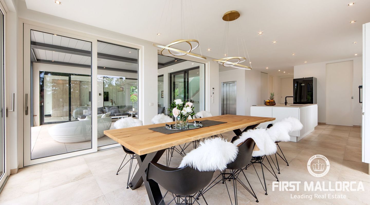 Esta nueva moderna villa de lujo combinada con el encanto mediterráneo ofrece una gran orientación soleada y un confort de vida incomparable con habitaciones luminosas y está situada en Sol de Mallorca, en el hermoso suroeste de la isla. En tres niveles, perfectamente conectados con un ascensor, encontrará 5 amplios dormitorios y 5 baños, así como un apartamento adicional en el sótano. La propiedad ofrece materiales de alta calidad y está equipada con una cocina de diseño moderno con isla y despensa. La zona exterior soleada y cubierta invita a relajarse y a disfrutar de la gran piscina de agua salada.
