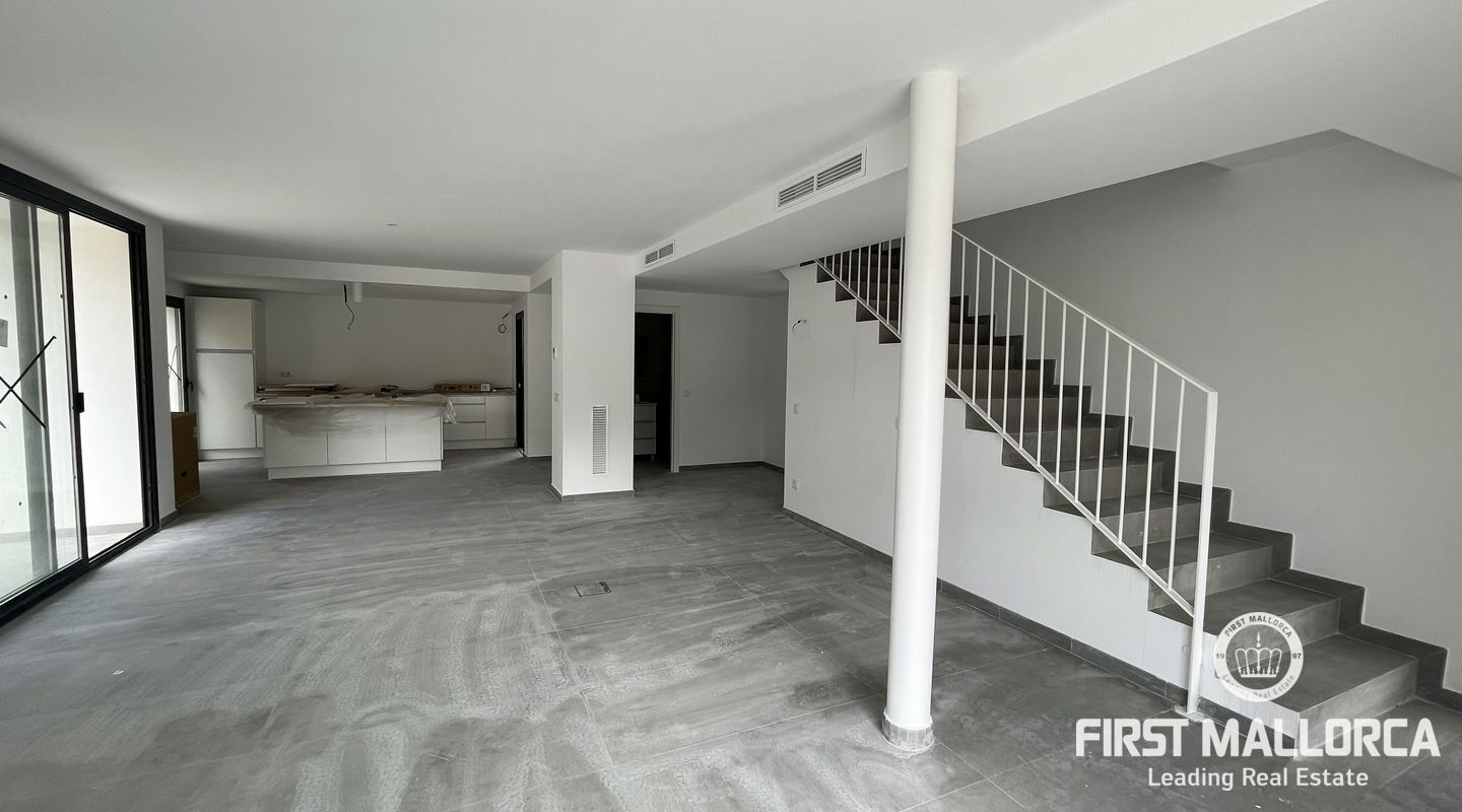 En la planta baja, un moderno concepto abierto integra salón, comedor y cocina en un espacio fluido y luminoso, ideal para disfrutar del estilo de vida mediterráneo. Desde aquí se accede directamente al patio exterior con piscina privada, perfecto para relajarse o compartir momentos con familia y amigos.