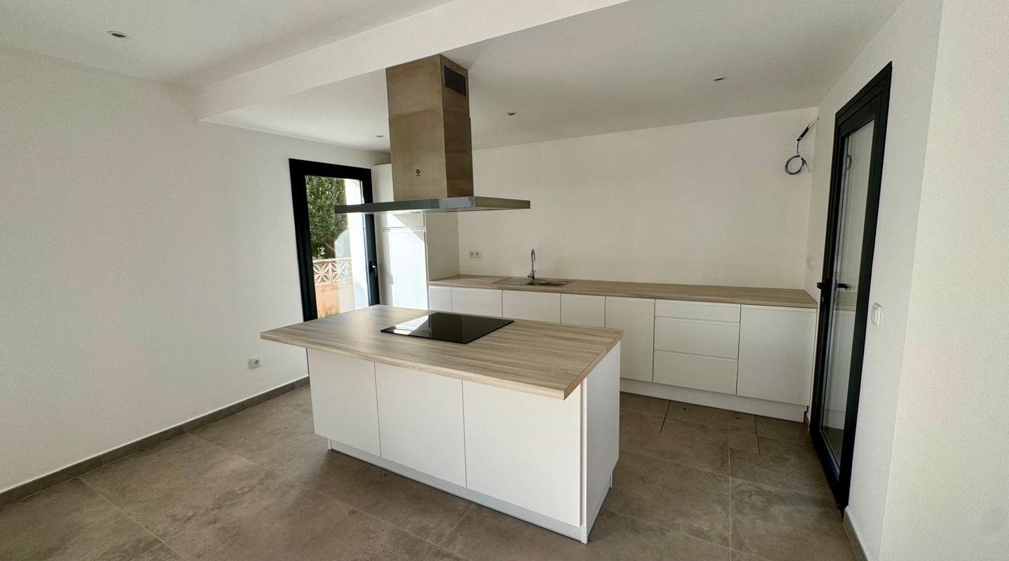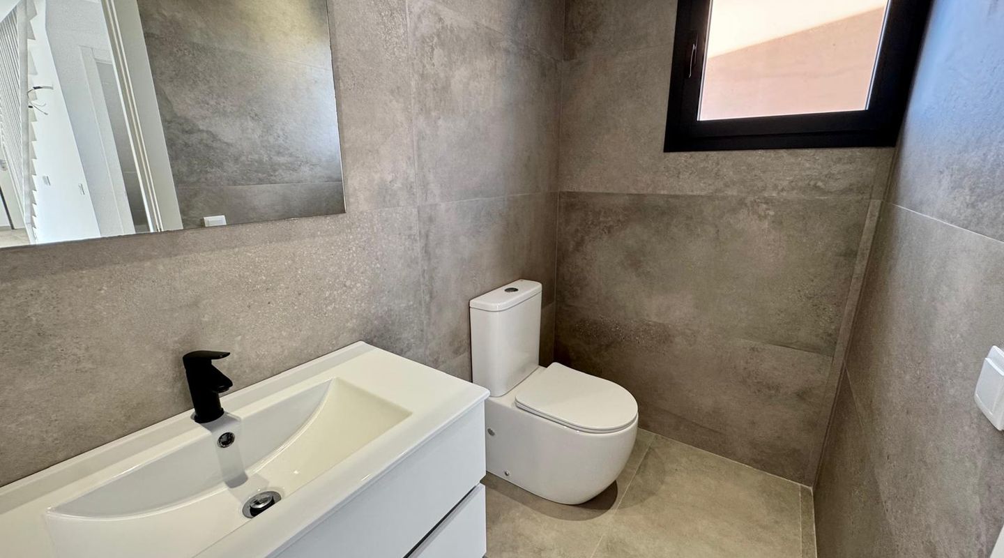 En la planta baja, un moderno concepto abierto integra salón, comedor, aseo y cocina en un espacio fluido y luminoso, ideal para disfrutar del estilo de vida mediterráneo. Desde aquí se accede directamente al patio exterior con piscina privada, perfecto para relajarse o compartir momentos con familia y amigos.
