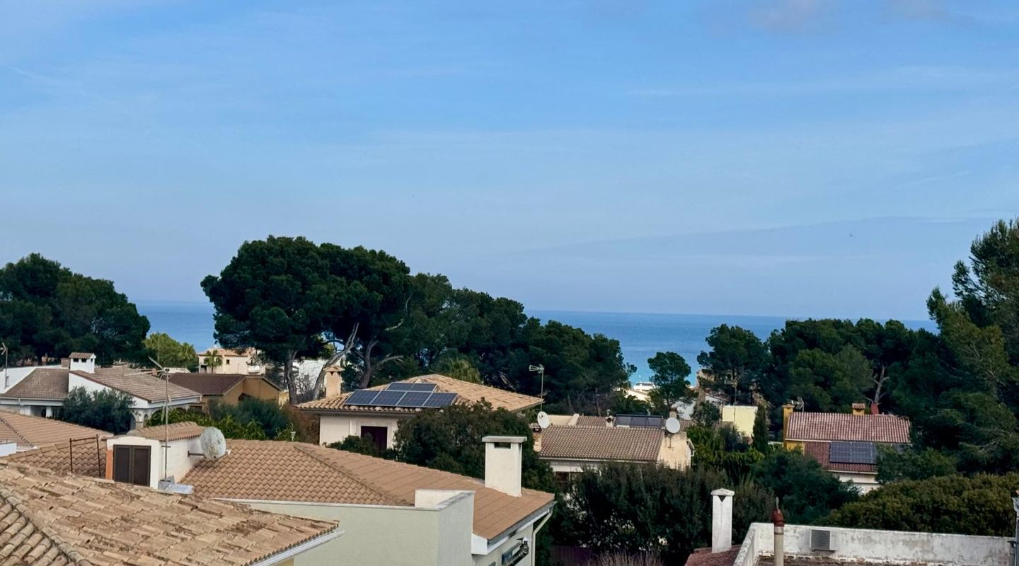 La planta superior alberga cuatro dormitorios y tres baños, incluyendo una suite principal con vistas y gran privacidad. Desde la azotea se puede disfrutar de impresionantes vistas al mar, creando un rincón exclusivo para contemplar el atardecer o disfrutar de las noches de verano.