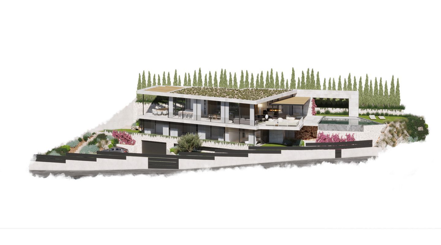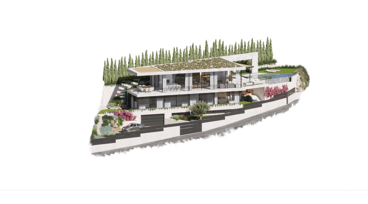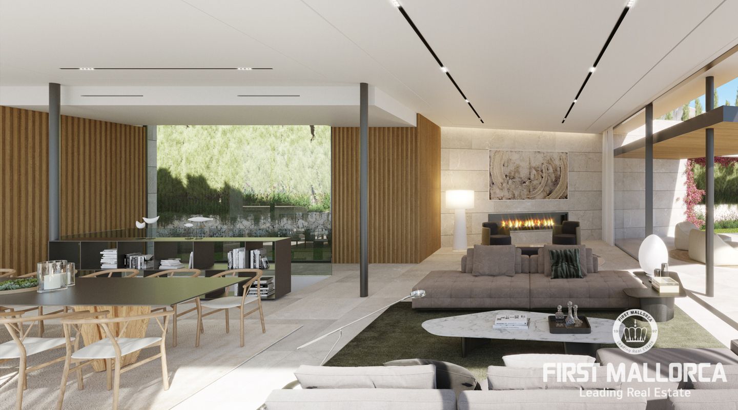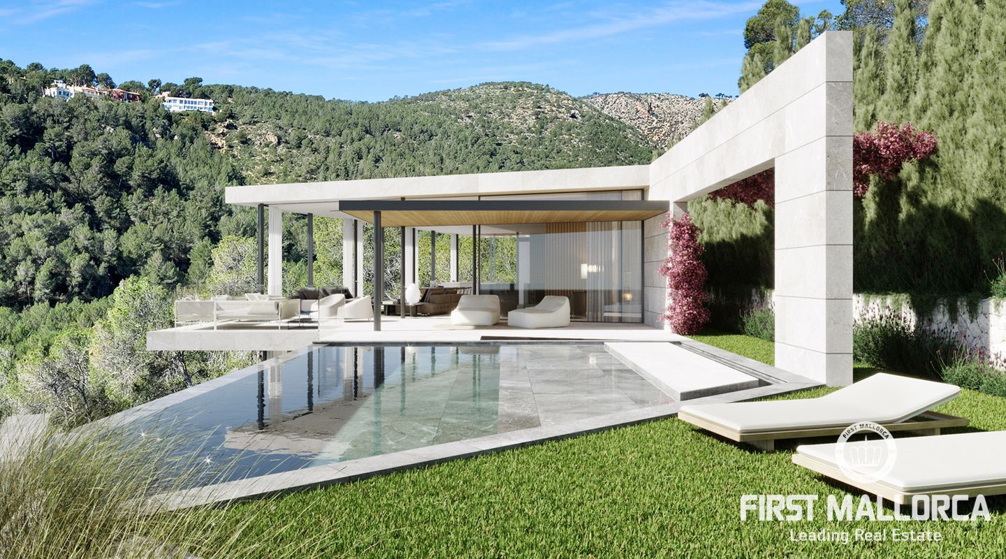 Este moderno chalet de nueva construcción con vistas al mar está listo para entrar a vivir. En la planta superior, a la que se accede a través de un ascensor que sube hasta el garaje, se encuentra el luminoso salón-comedor con ventanales de suelo a techo con transición sin barreras a las terrazas y a la amplia piscina de 57 m². La cocina totalmente equipada ofrece una zona de terraza cubierta, ideal para desayunar. En la planta baja, a la que se puede acceder por las escaleras o el ascensor, hay cuatro dormitorios dobles, cada uno con baño en suite totalmente equipado y amplios armarios empotrados. Un quinto dormitorio adicional con baño en-suite se encuentra en la planta baja, que también ofrece un amplio espacio para una sala de fitness. Características de la villa incluyen: Ascensor, calefacción por suelo radiante, aire acondicionado (frío/calor), un garaje doble y una plaza de aparcamiento exterior adicional. El mobiliario se puede adquirir por separado bajo petición. Si desea concertar una visita personal, no dude en ponerse en contacto con una de nuestras oficinas de FIRST MALLRCA hoy mismo.