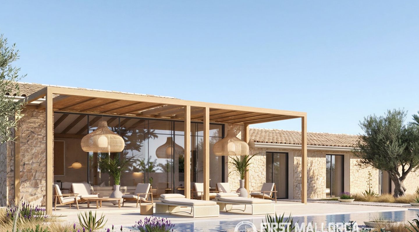 Situada en una zona tranquila de Marratxí, esta elegante finca de obra nueva se asienta sobre una amplia parcela de 22.706 m², ofreciendo privacidad, amplitud y un entorno natural privilegiado a pocos minutos de Palma.