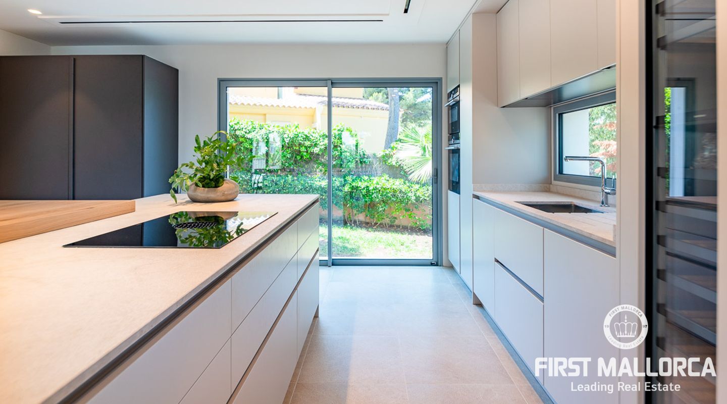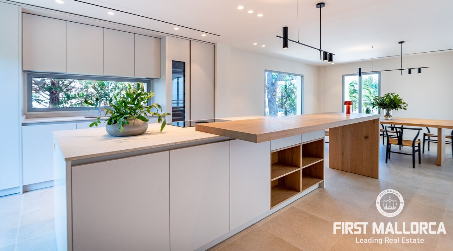 En una parcela de aprox. 1262 m2, la moderna propiedad está construida con materiales de alta calidad, y ofrece 4 amplios dormitorios, todos con baño en suite, un elegante y abierto salón-comedor con una moderna cocina abierta. Además, la casa familiar cuenta con una magnífica zona de piscina con terrazas y, por supuesto, cabe destacar las vistas al mar y a la bahía que se puede disfrutar desde la fantástica terraza de la azotea.