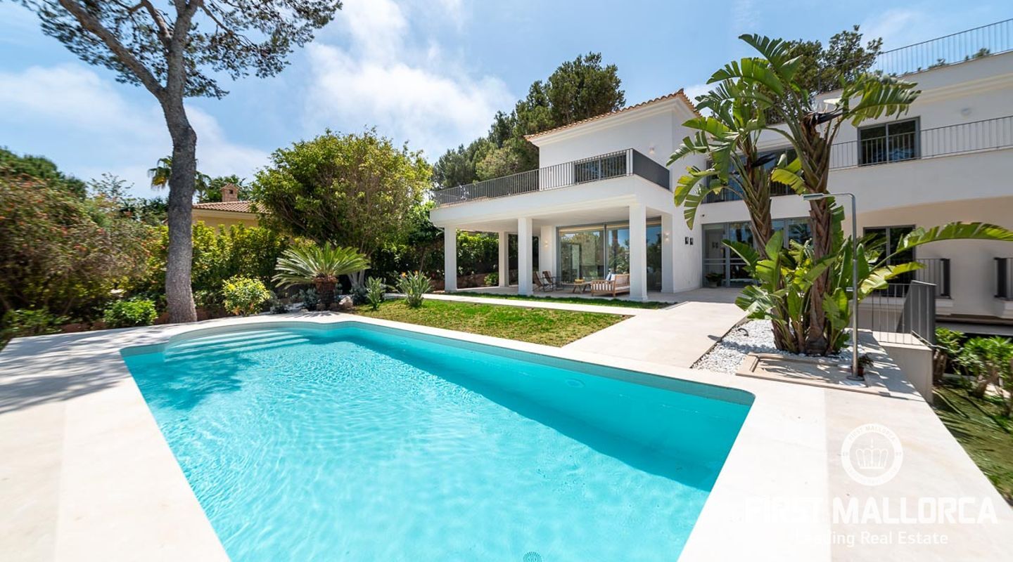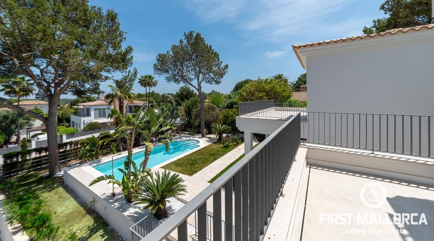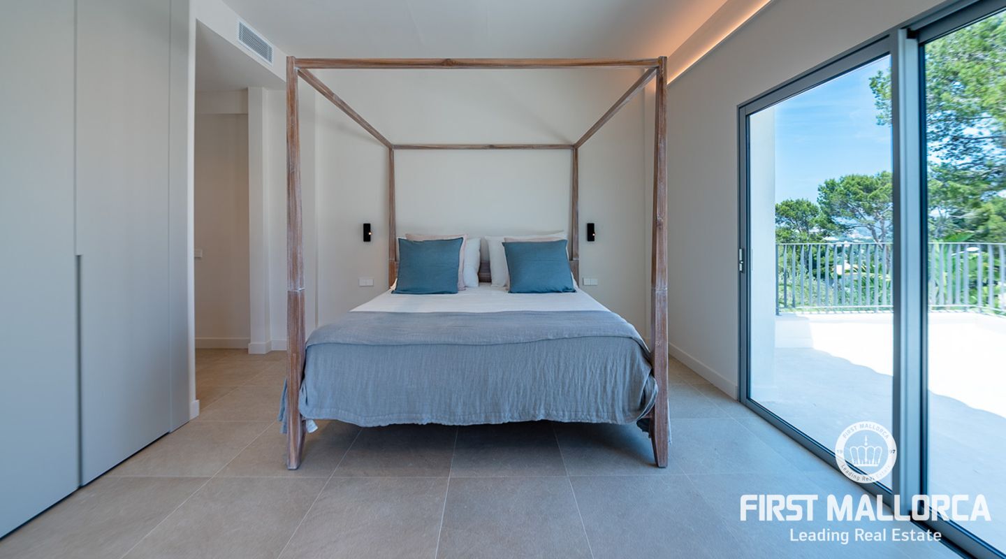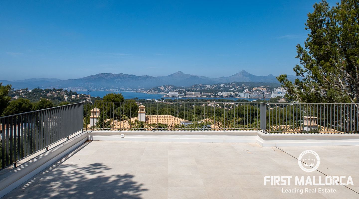 Esta villa de primera clase, recientemente terminada y lista para entrar a vivir, se encuentra en una exclusiva zona residencial de Nova Santa Ponsa, cerca del puerto deportivo de Port Adriano y su playa de arena con aguas tranquilos, así como de varios campos de golf y una gran variedad de restaurantes.
