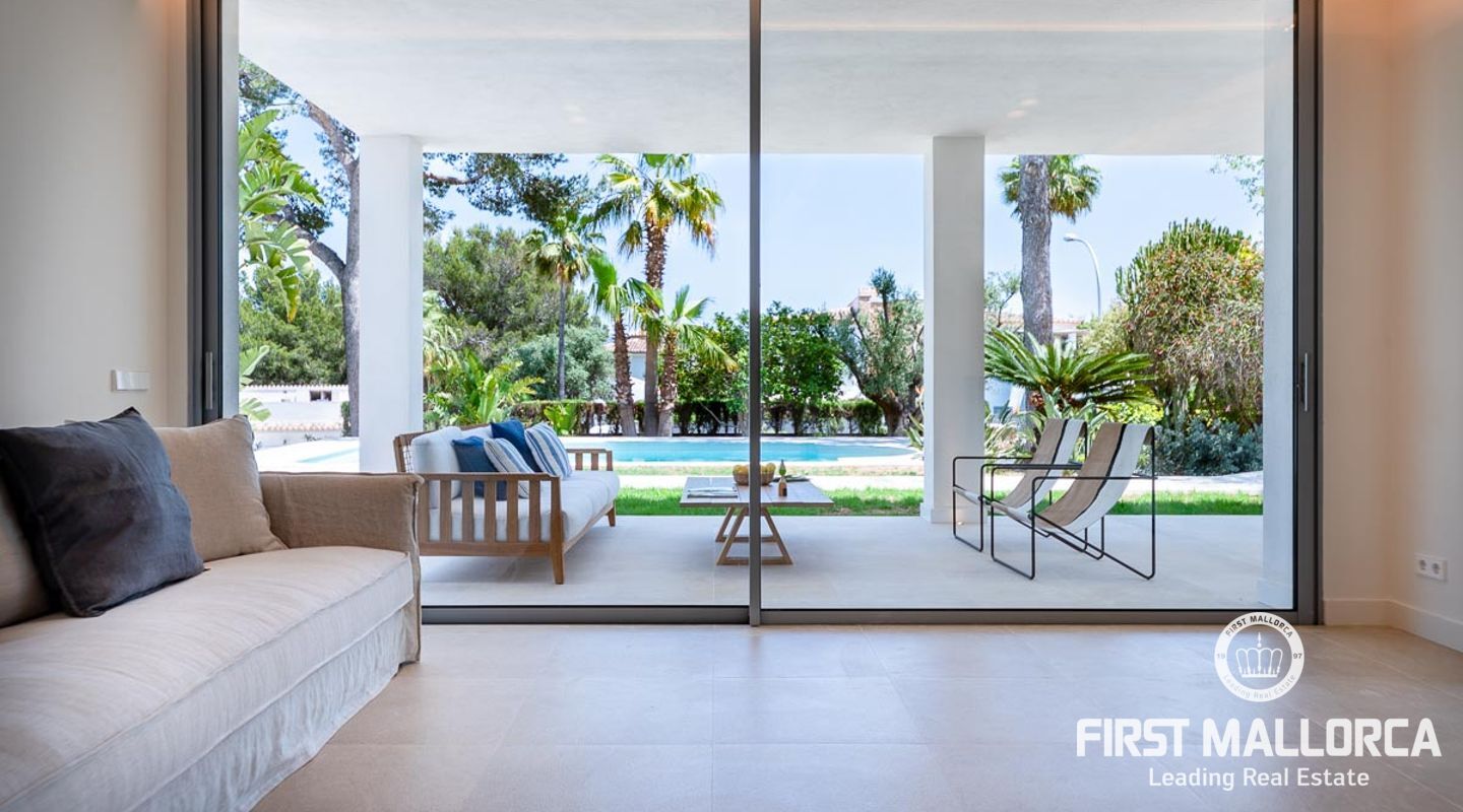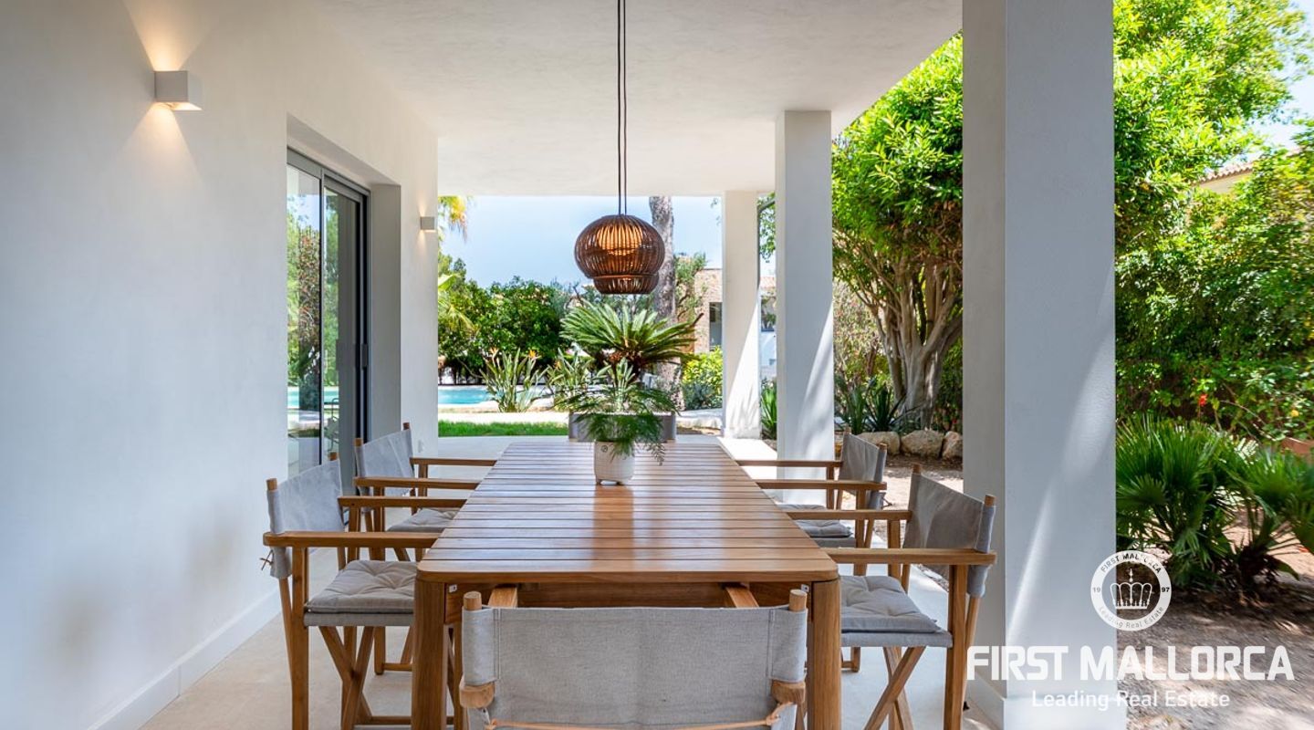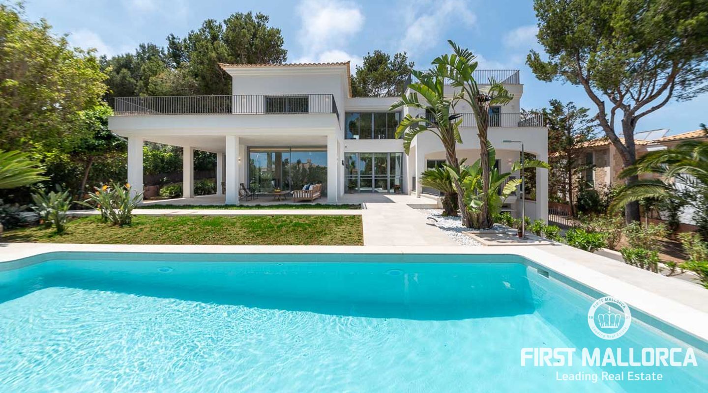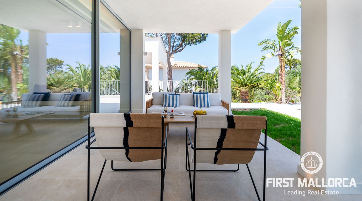 Esta villa de primera clase, recientemente terminada y lista para entrar a vivir, se encuentra en una exclusiva zona residencial de Nova Santa Ponsa, cerca del puerto deportivo de Port Adriano y su playa de arena con aguas tranquilos, así como de varios campos de golf y una gran variedad de restaurantes.