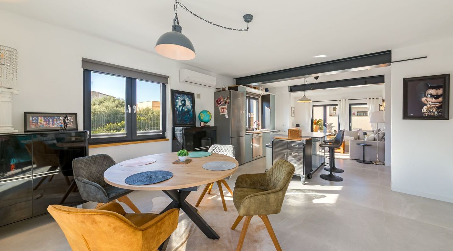Recientemente finalizada, la propiedad ofrece todas las comodidades modernas, como calefacción por suelo radiante y aire acondicionado. Gracias a la bomba de calor aerotérmica y a las ventanas de triple acristalamiento, también cumple con los más altos estándares de eficiencia energética.