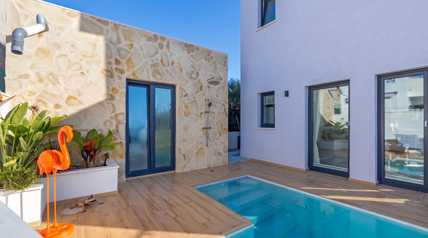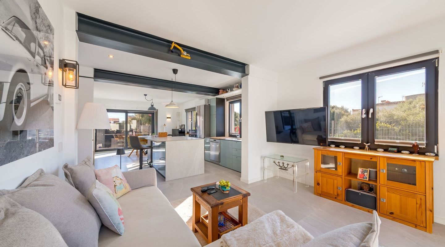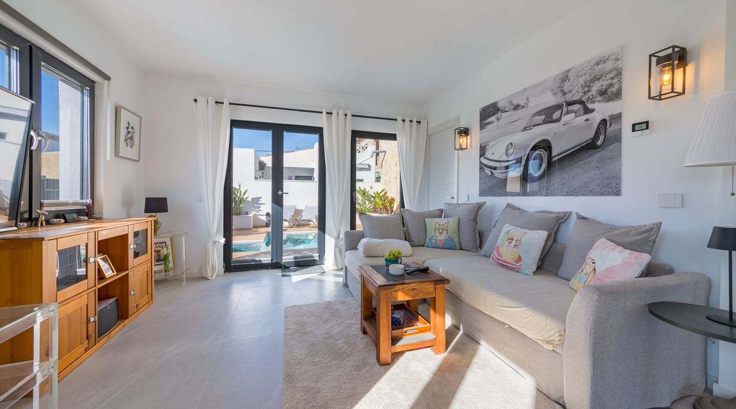 En la actualidad, la casa cuenta con dos dormitorios, pero es posible crear fácilmente un tercer dormitorio dentro de la distribución existente sin necesidad de grandes obras. Asimismo, la propiedad ofrece una sala multifuncional junto a la piscina, que puede utilizarse de forma flexible como despacho, gimnasio, trastero o dormitorio de invitados.