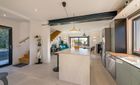 En la planta baja le espera un amplio salón-comedor con cocina integrada, grandes ventanales de suelo a techo y varios accesos a las distintas terrazas, a las zonas exteriores y al área de la piscina.