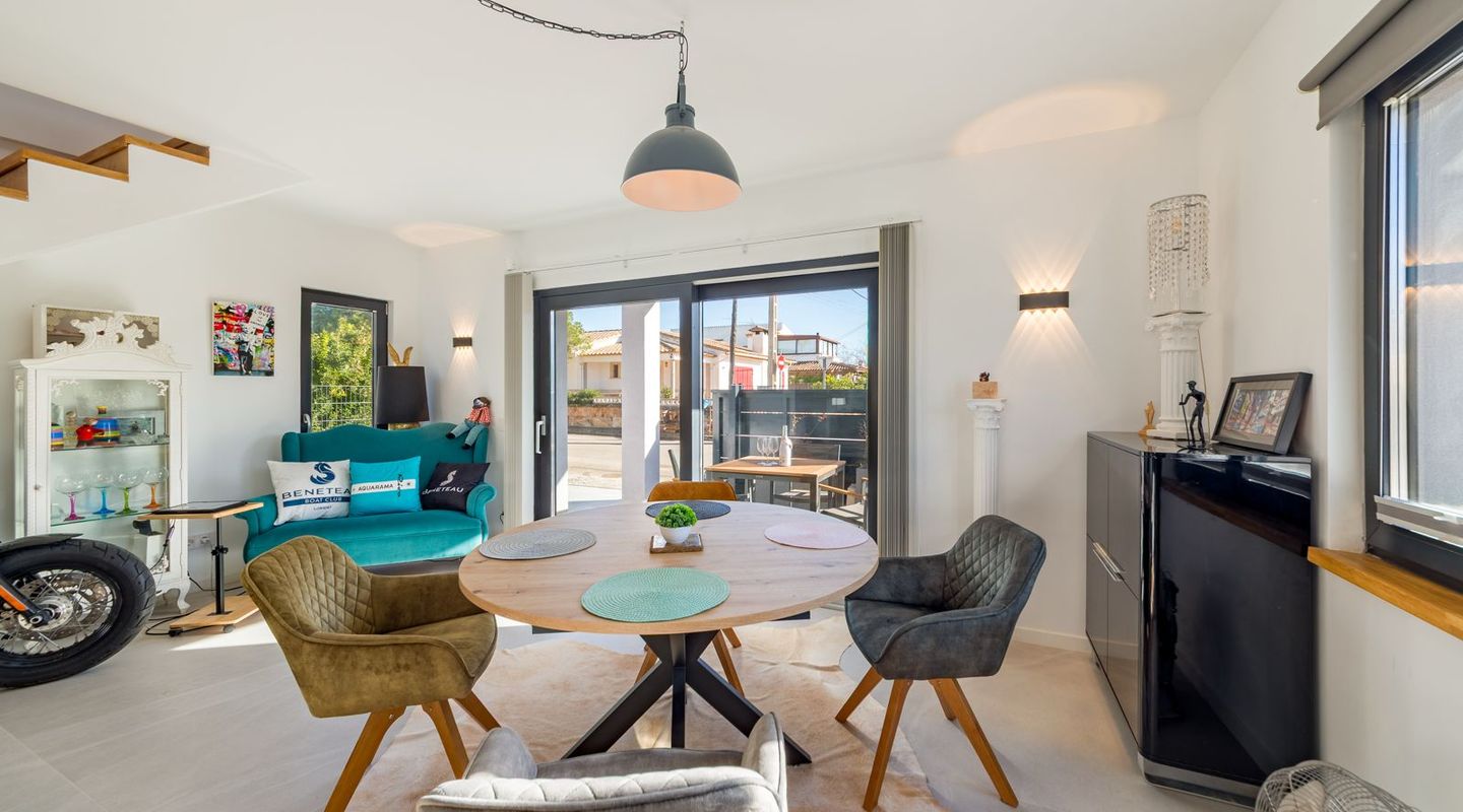 En el corazón del casco antiguo de Sa Ràpita se encuentra esta elegante villa de nueva construcción.