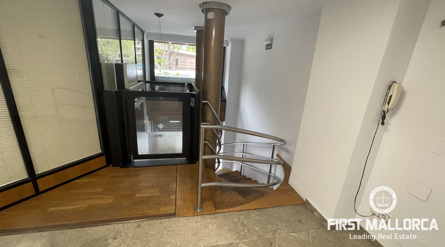 Эта коммерческая недвижимость очень просторная, в настоящее время в ней есть офис открытой планировки и два офиса, разделенных перегородками. Имеется отдельная мини-кухня и две ванные комнаты. Вход в дом отдельный, либо по лестнице, либо с помощью небольшого лифта, хорошо подходящего для детских колясок и инвалидов-колясочников. Подземное парковочное место может быть арендовано отдельно. Отличное место для вашего нового бизнеса в центре Пальмы.