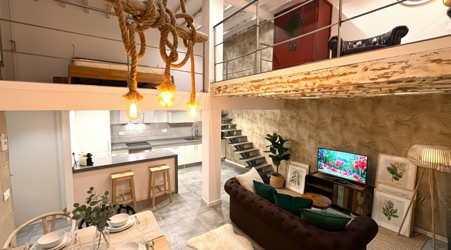 Этот лофт предлагает современную, комфортную и практичную атмосферу, идеально подходящую для жизни в городе, оставаясь рядом со всеми удобствами.