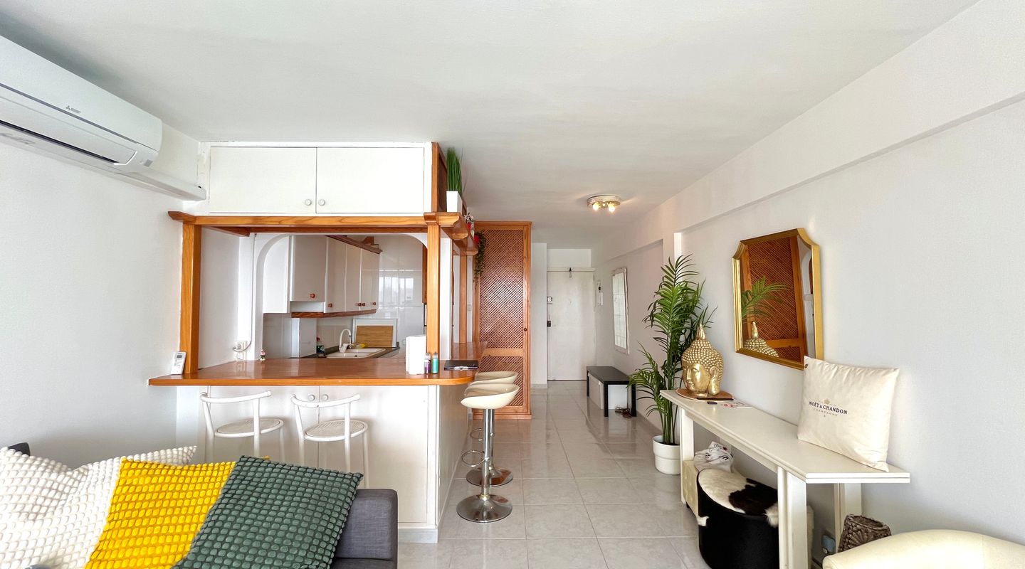 В апартаментах есть гостиная-столовая с диваном-кроватью, полностью оборудованная кухня в стиле яхты, крытая (открывающаяся) терраса и ванная комната с душем и стиральной машиной. Полностью готова к заселению!