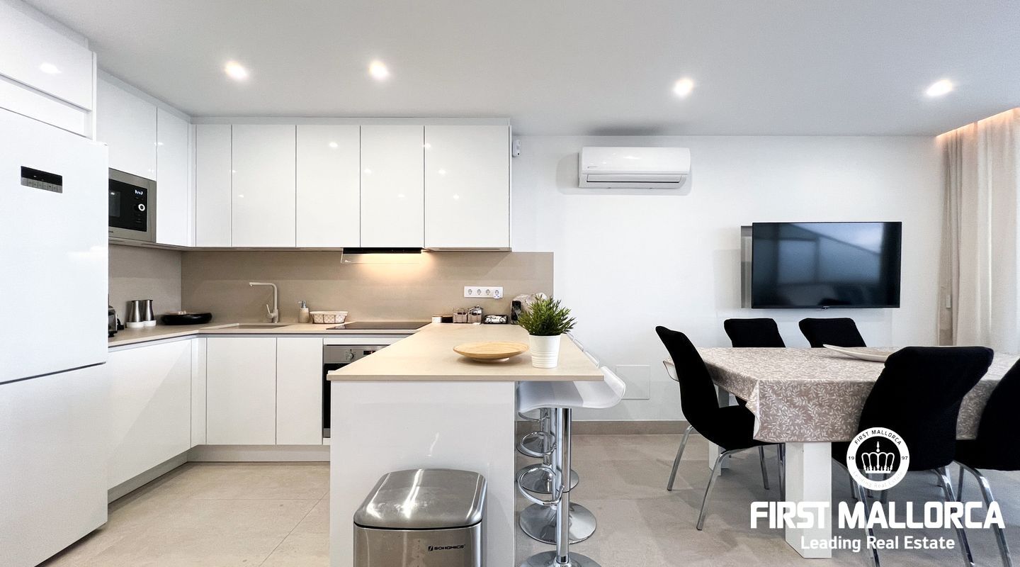 Эта современная и светлая трехкомнатная квартира в Алькудии впечатляет фантастическим видом на море и предлагает максимальный комфорт на жилой площади 101 м². Терраса площадью около 12 м² - идеальное место для того, чтобы насладиться великолепным видом на воду и провести минуты отдыха на свежем воздухе. Квартира состоит из двух просторных спален, обе с ванными комнатами для дополнительного комфорта. Лифт обеспечивает легкий доступ на все этажи. Все комнаты оснащены кондиционерами и телевизорами, что создает уютную атмосферу. Окна с двойным остеклением обеспечивают не только отличную звуко- и теплоизоляцию, но и спокойный ночной сон. В комплексе есть общий бассейн, в котором приятно охладиться в жаркие дни. Домашние животные в этом доме не допускаются. Минимальный срок аренды составляет 12 месяцев, а максимальный - 24 месяца. Особо стоит отметить систему очистки от накипи, которая обеспечивает оптимальный уровень воды в доме. Расходы на воду и коммунальные услуги уже включены в стоимость аренды. Эта эксклюзивная квартира в Алькудии сочетает в себе современный комфорт жизни с захватывающим расположением и предлагает прямой доступ ко всем удобствам повседневной жизни. Мы с нетерпением ждем вашего запроса!