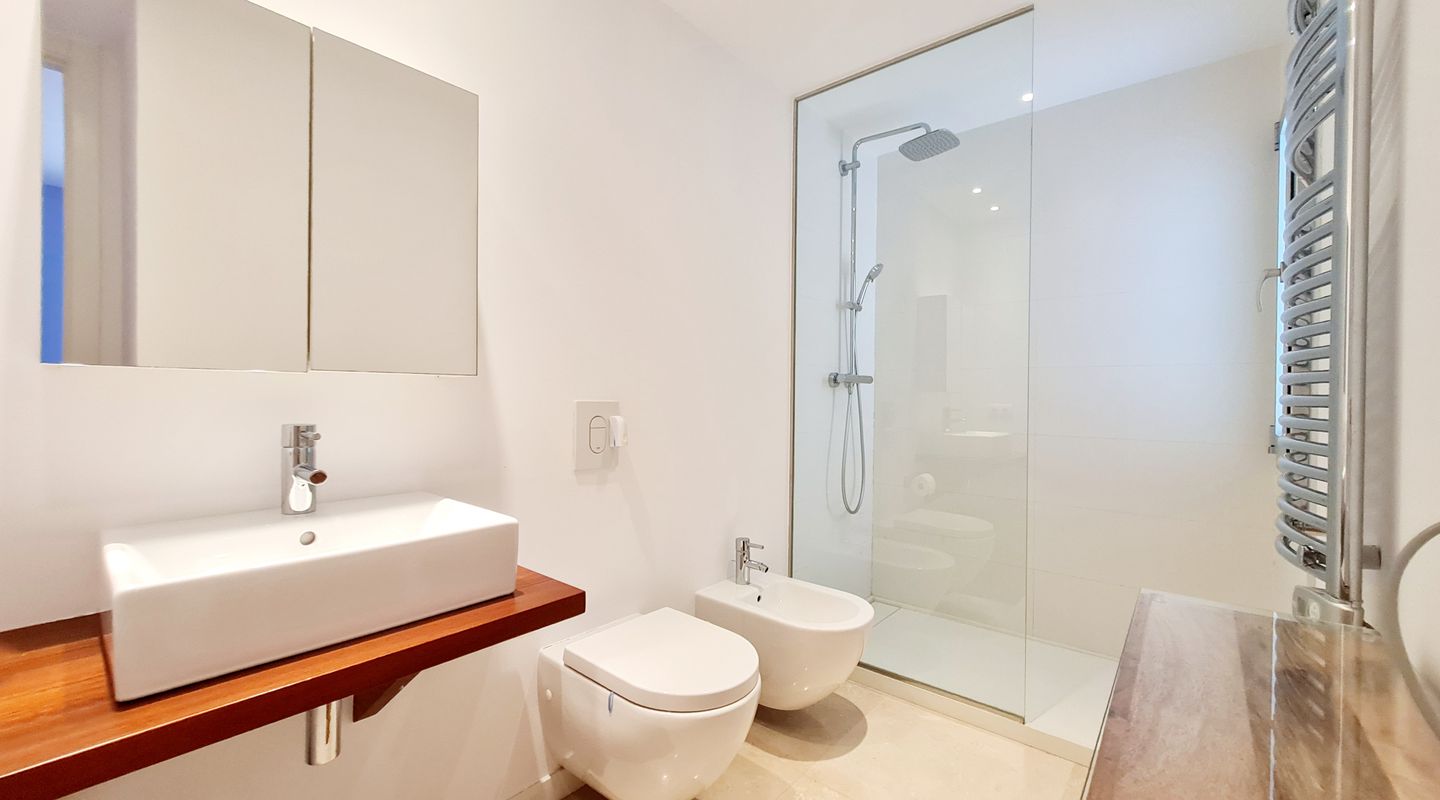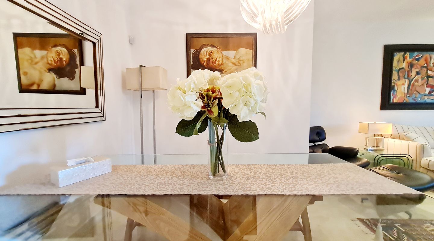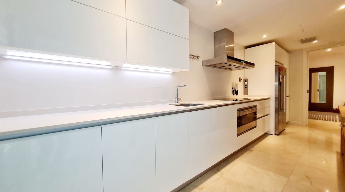 Внутренняя часть предлагает около 150 м² жилой площади, распределенной между светлой и просторной гостиной, удобной полностью оборудованной кухней, тремя спальнями, тремя полностью оборудованными ванными комнатами и гостевым туалетом. Планировка является одновременно просторной и функциональной, что делает ее идеальной для временного проживания со всеми современными удобствами.