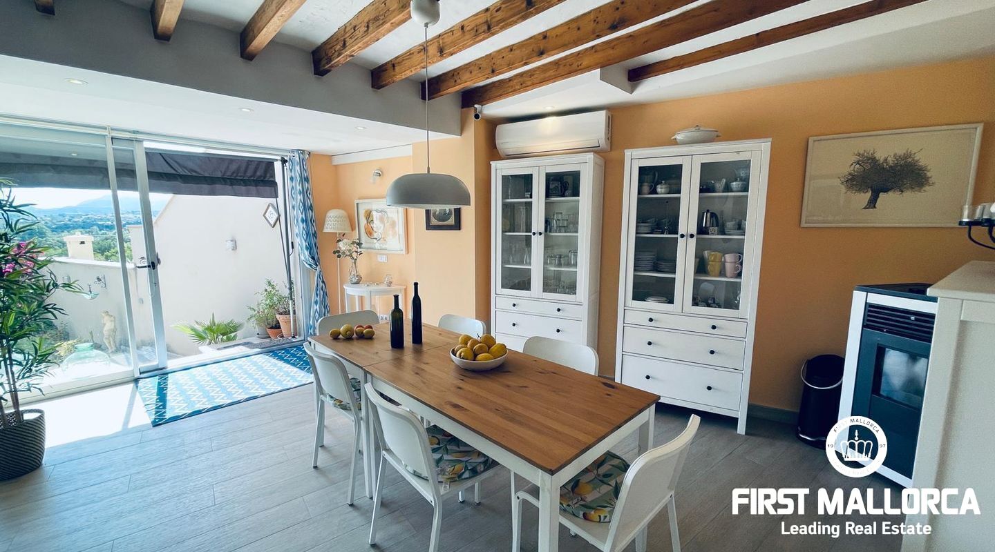 Этот дом с четырьмя спальнями, двумя ванными комнатами и гостевым туалетом сочетает в себе традиционное очарование майоркинских домов с удобствами отремонтированного дома, оснащенного высококачественными элементами. На первом этаже находится спальня и гостиная с камином, которая соединяется с кухней-столовой, также оборудованной пеллетным отоплением и кондиционером. На верхнем этаже находятся три спальни, две из которых оборудованы кондиционерами, две ванные комнаты и большая терраса с фантастическим видом на горы Трамунтана. В саду с террасами есть несколько зон отдыха и фруктовые деревья. К дому примыкает гостиная с туалетом, где можно проводить общественные или семейные собрания. Дом расположен в деревне Кампанет, которая предлагает уединение и спокойствие, а также быстрый доступ к автомагистрали до Пальмы.