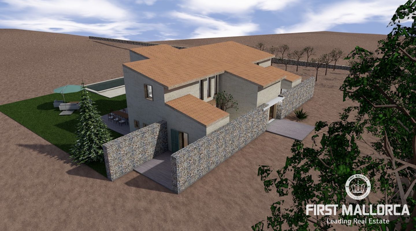 Этот участок с видом на puig de Sant Salvador, имеет проект, утвержденный конселлерией в августе 2022 года, с внеплановым строительством около 352 м2, с 276 м2 застройки и 55 м2 бассейна.