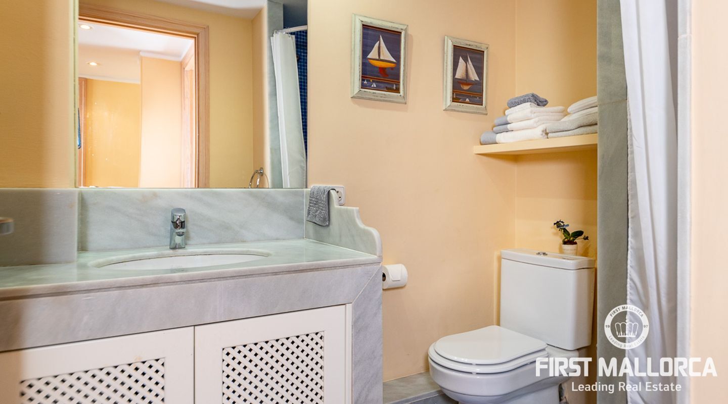 Этот двухуровневый апартамент с 3 спальнями, 2 ванными комнатами и 1 гостевым туалетом расположен в тихом и эксклюзивном сообществе с бассейном, парковкой и кладовой в Пуэрто-де-Андраткс. На первом этаже находится кухня открытого плана, гостиная и столовая, которая выходит на просторную террасу с видом на порт Андрач и окружающие горы. На этом уровне также находится кладовая и гостевой туалет. На верхнем этаже находится главная спальня с собственной террасой, гардеробной и ванной комнатой с ванной и душем. Есть еще 2 спальни с двуспальными кроватями, которые делят ванную комнату с душем. У общего бассейна есть много места на террасе для принятия солнечных ванн.