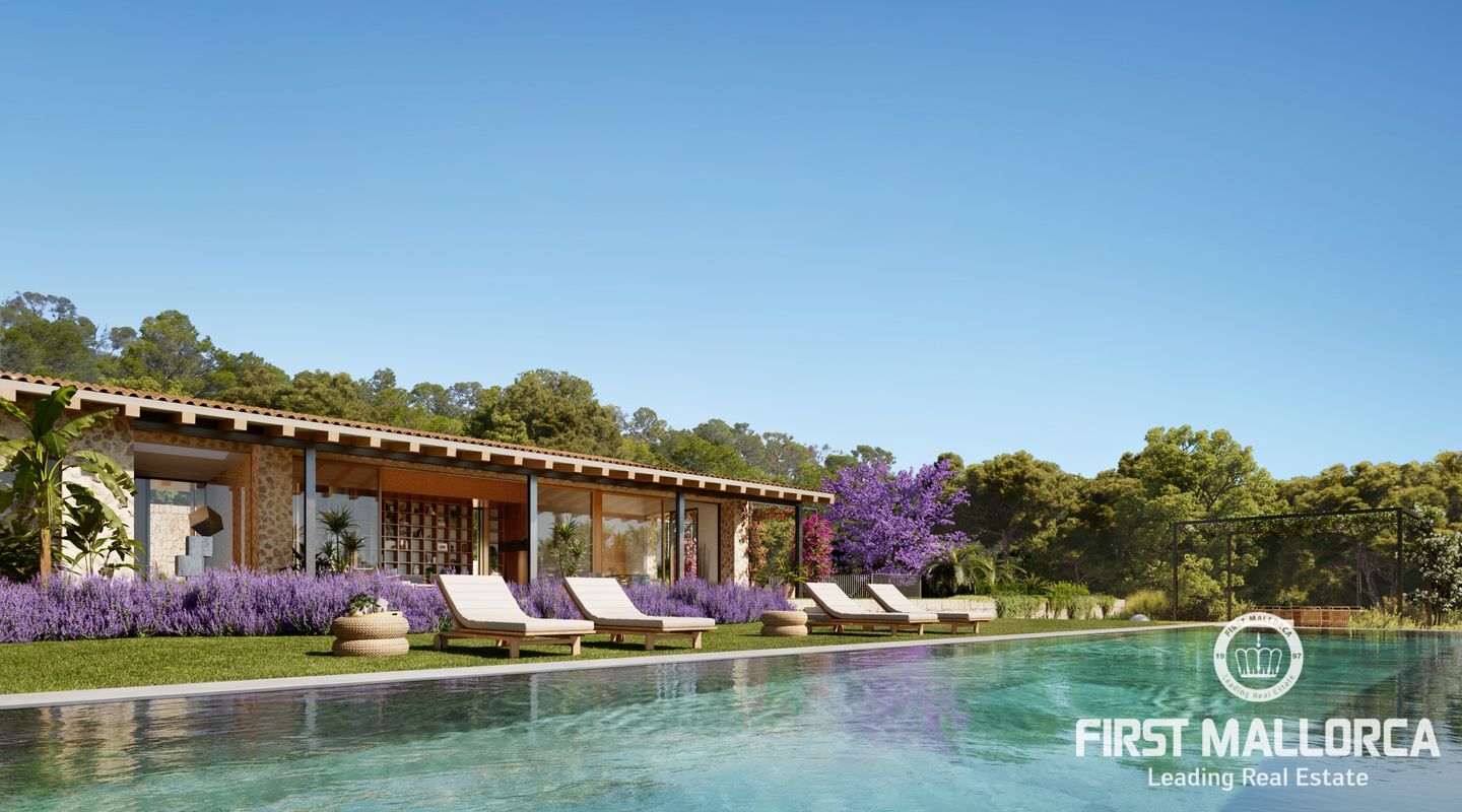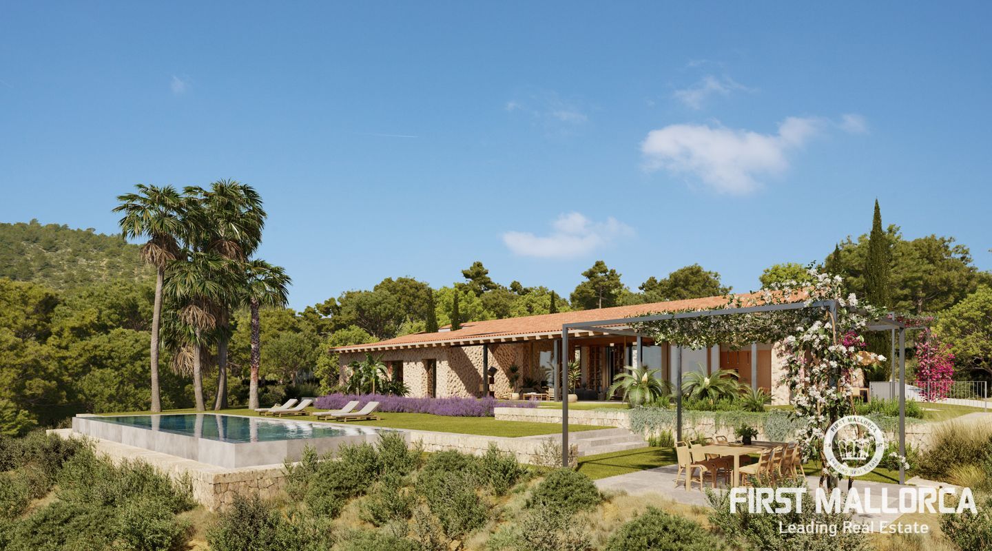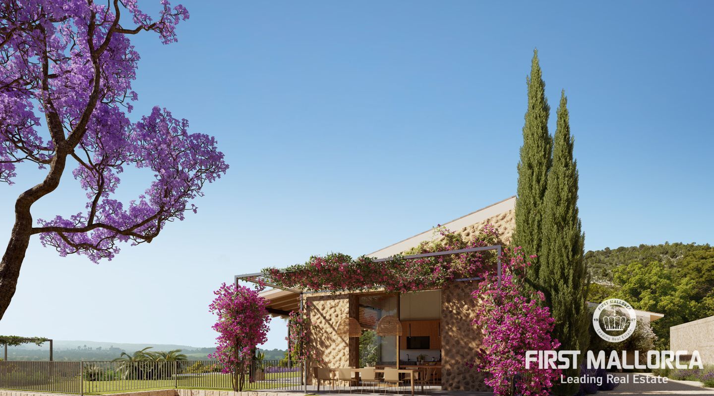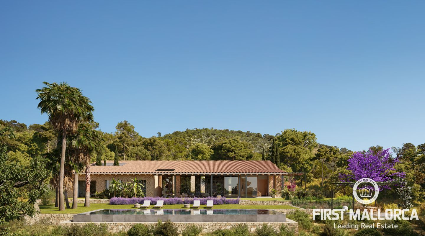 Эта эксклюзивное поместье новой постройки находится на участке площадью около 16.320 м2 недалеко от очаровательной деревни Санта-Мария-дель-Ками. С участка, расположенного на вершине холма, открывается великолепный вид на пейзаж и залив Пальмы. Этот элитный объект недвижимости подойдет тем, кто ценит уединение в окружении природы, в то же время имея доступ к городу и всем его удобствам. Дом площадью 357 м2 распределен на одном этаже и объединяет в себе три основные зоны: спальни, гостиную и кухню. Изысканный дом имеет просторную гостиную с камином, столовую, кухню с оборудованием Miele, три спальни, три ванные комнаты и рабочий кабинет. Нейтральный декор создает светлое и яркое жилое пространство, а натуральные материалы, такие как каменные стены и деревянные балочные потолки в деревенском стиле, придают теплоту, в то время как современные элементы обеспечивают полный комфорт. В цокольном этаже находится еще одна комната с ванной, место для тренажерного зала и спа, а также изысканный винный погреб. В доме установлены энергосберегающие кондиционеры Aerotermia, полы с подогревом, окна с двойным остеклением. Снаружи находится бассейн 16×5 м с потрясающим видом на море и деревню Санта Мария, а также сад и терраса - идеальное место для обедов на свежем воздухе. В подвале дома оборудована парковка на 3 машины. Вилла расположена недалеко от красивой деревни Санта-Мария-дель-Ками, у подножия величественной горной цепи Серра-де-Трамунтана. Санта Мария - идеальное место для проживания, если вы хотите погрузиться в мирную сельскую жизнь, но при этом иметь удобства Пальмы в пределах легкой досягаемости.
