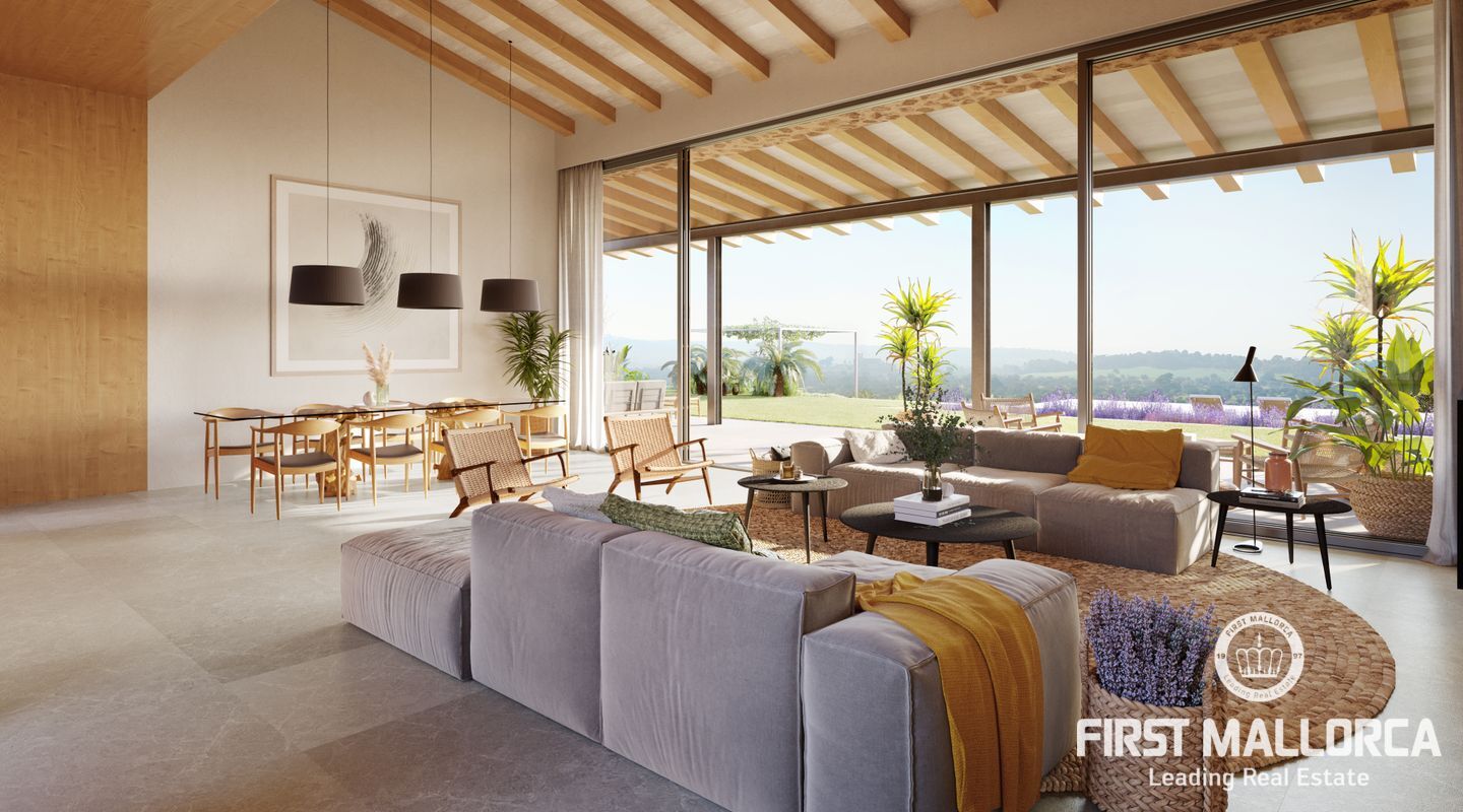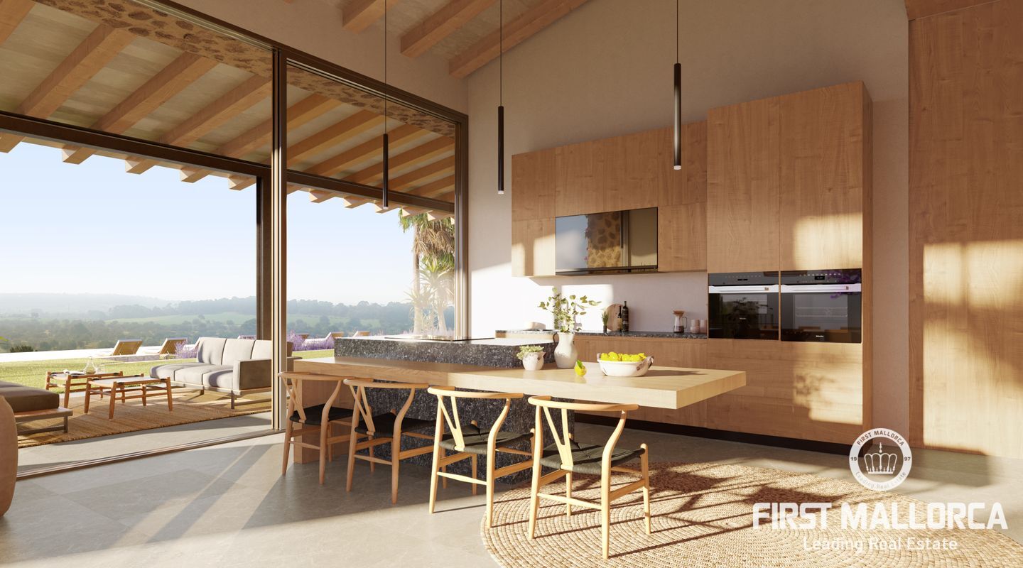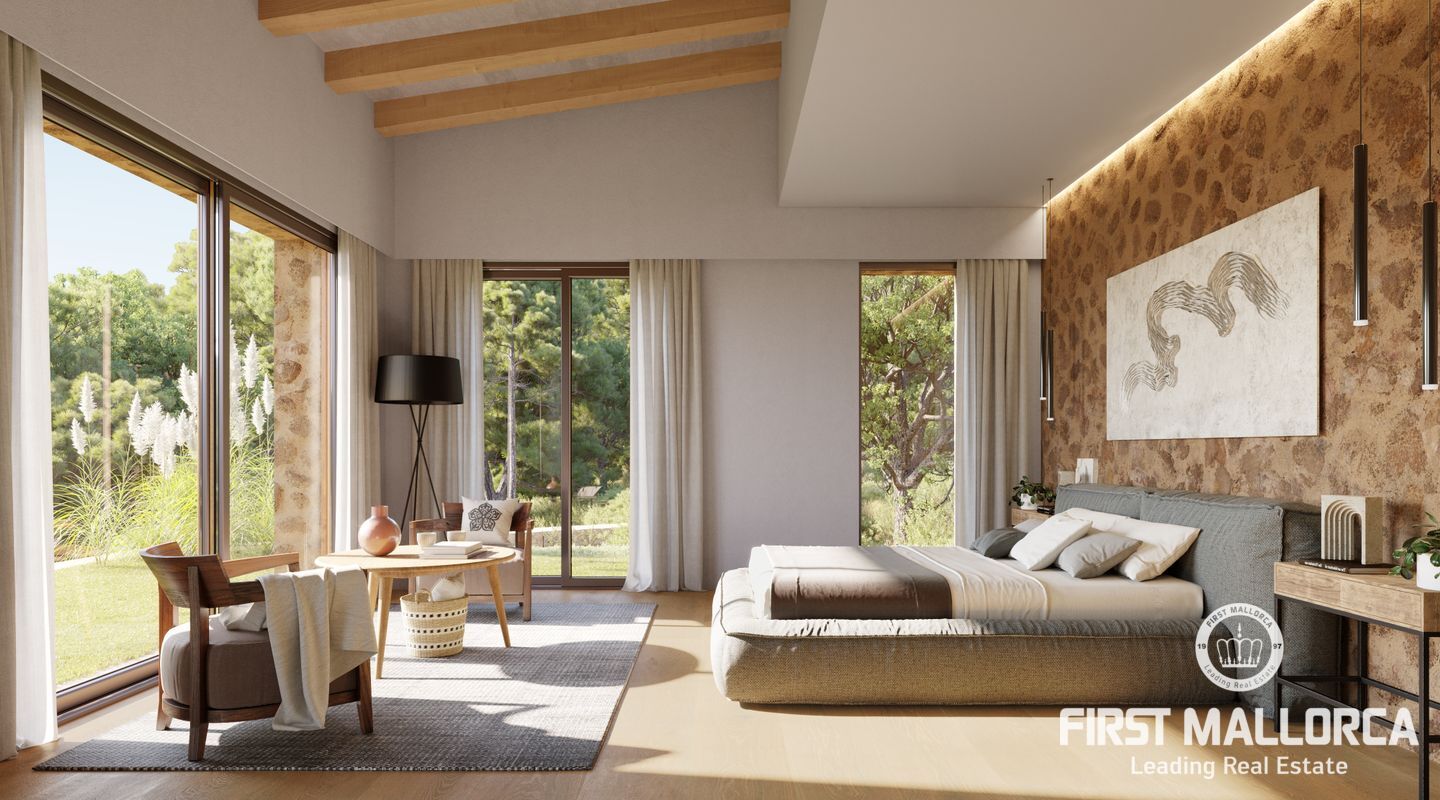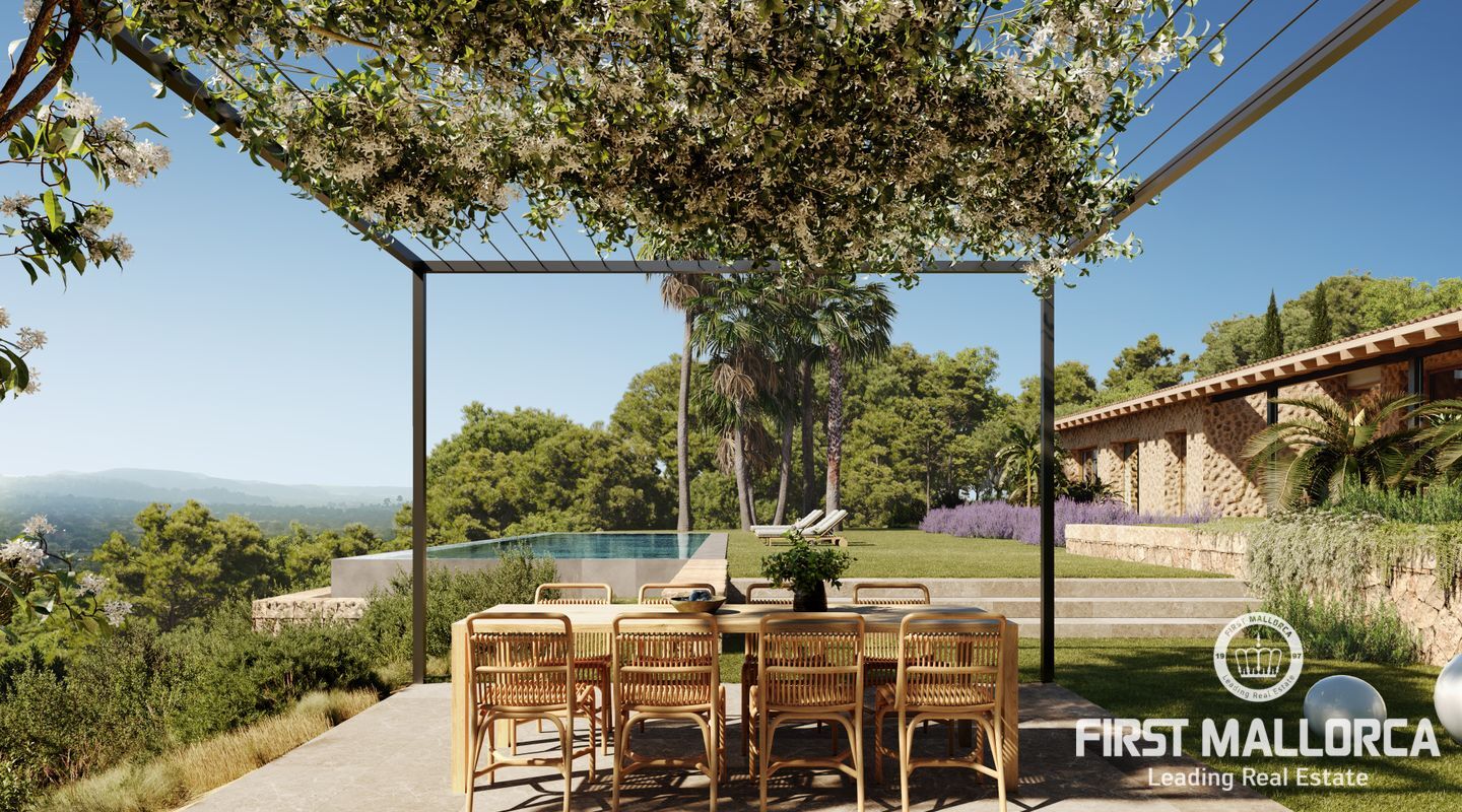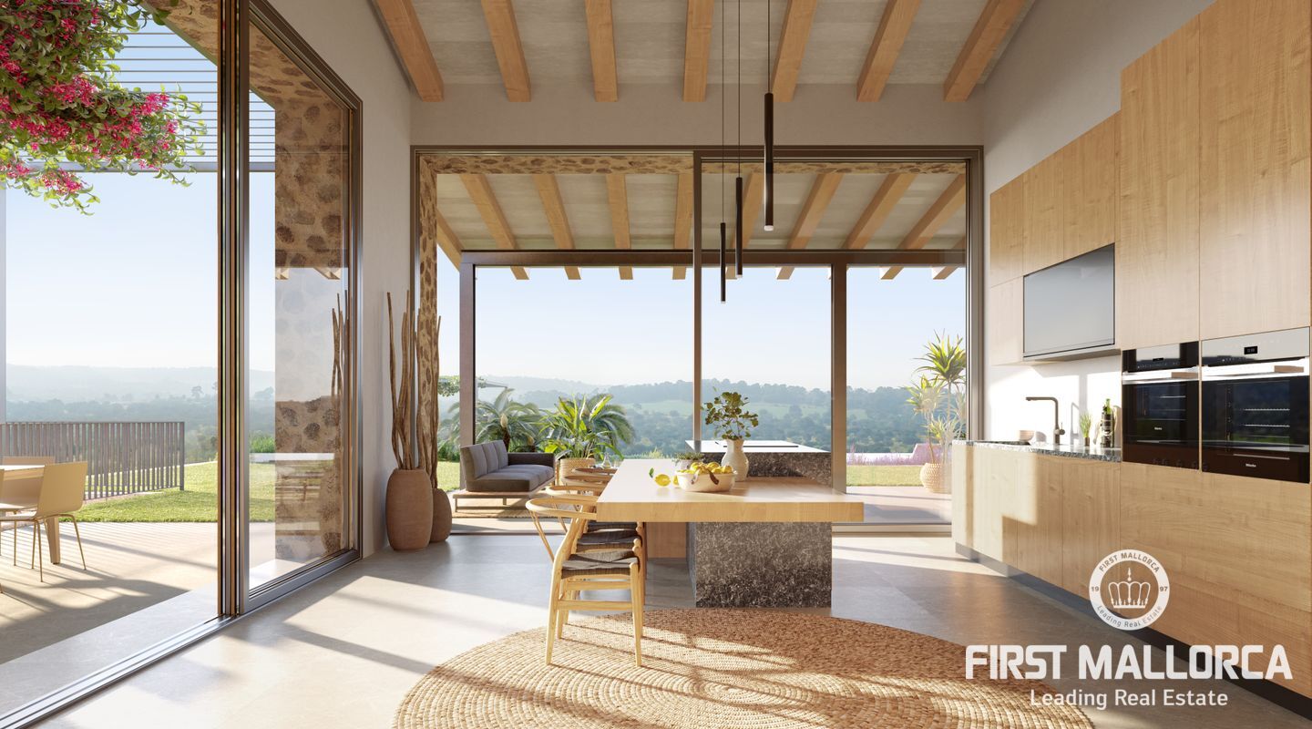 Эта эксклюзивное поместье новой постройки находится на участке площадью около 16.320 м2 недалеко от очаровательной деревни Санта-Мария-дель-Ками. С участка, расположенного на вершине холма, открывается великолепный вид на пейзаж и залив Пальмы. Этот элитный объект недвижимости подойдет тем, кто ценит уединение в окружении природы, в то же время имея доступ к городу и всем его удобствам. Дом площадью 357 м2 распределен на одном этаже и объединяет в себе три основные зоны: спальни, гостиную и кухню. Изысканный дом имеет просторную гостиную с камином, столовую, кухню с оборудованием Miele, три спальни, три ванные комнаты и рабочий кабинет. Нейтральный декор создает светлое и яркое жилое пространство, а натуральные материалы, такие как каменные стены и деревянные балочные потолки в деревенском стиле, придают теплоту, в то время как современные элементы обеспечивают полный комфорт. В цокольном этаже находится еще одна комната с ванной, место для тренажерного зала и спа, а также изысканный винный погреб. В доме установлены энергосберегающие кондиционеры Aerotermia, полы с подогревом, окна с двойным остеклением. Снаружи находится бассейн 16×5 м с потрясающим видом на море и деревню Санта Мария, а также сад и терраса - идеальное место для обедов на свежем воздухе. В подвале дома оборудована парковка на 3 машины. Вилла расположена недалеко от красивой деревни Санта-Мария-дель-Ками, у подножия величественной горной цепи Серра-де-Трамунтана. Санта Мария - идеальное место для проживания, если вы хотите погрузиться в мирную сельскую жизнь, но при этом иметь удобства Пальмы в пределах легкой досягаемости.
