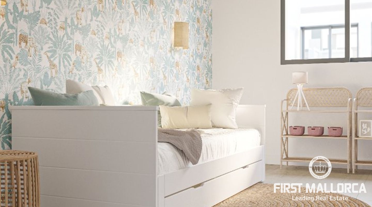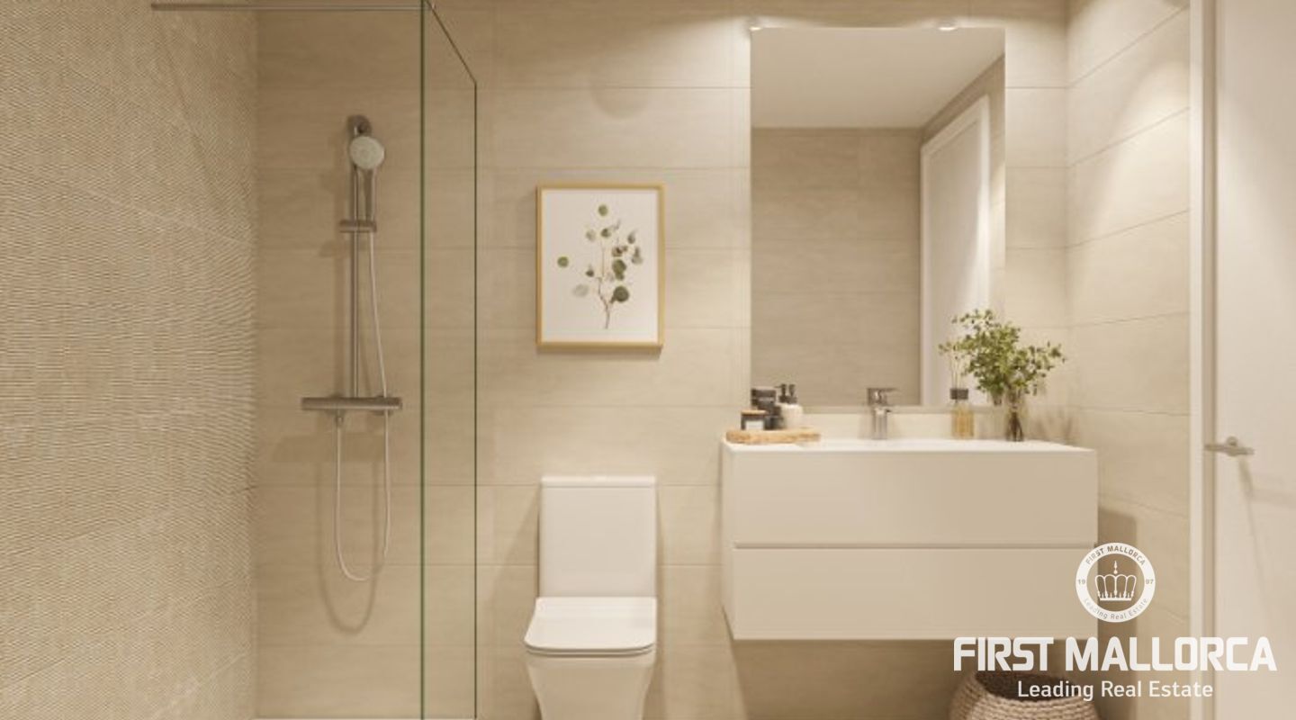 Этот новый комплекс, по словам его архитектора, имеет конфигурацию волны, характеризующуюся ритмом жилых помещений, все они имеют внешнюю ориентацию, много света и естественную вентиляцию. Во внутренней части открытый, озелененный атриум обеспечивает доступ к жилым помещениям и способствует проведению общественных собраний. Большие террасы размывают границу между внутренним и внешним пространством и подчеркивают связь между домами и природой". Расположение, коммуникации и услуги: вот три ключевых момента, определяющих удачное местоположение вашего дома. Этот новый комплекс отвечает всем этим требованиям. Общий бассейн будет полностью интегрирован в ландшафтный дизайн открытых площадок, создавая уникальное и непохожее на другие пространство, которое станет одним из самых особенных мест в комплексе. Насладитесь расслабляющим плаванием или пригласите своих близких охладиться летними вечерами, чтобы поделиться незабываемыми моментами. Пожалуйста, свяжитесь с командой First Mallorca, чтобы договориться о визите!