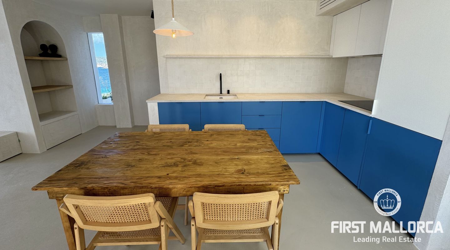 Эта квартира с 2 спальнями и 2 санузлами расположена на первой линии моря в доме всего на 3 квартиры и с прямым выходом к морю. Бежевые тона интерьера идеально вписываются в пейзаж очаровательной рыбацкой деревни Сант-Эльм, а синие тона напоминают море и создают прямую связь с природой.