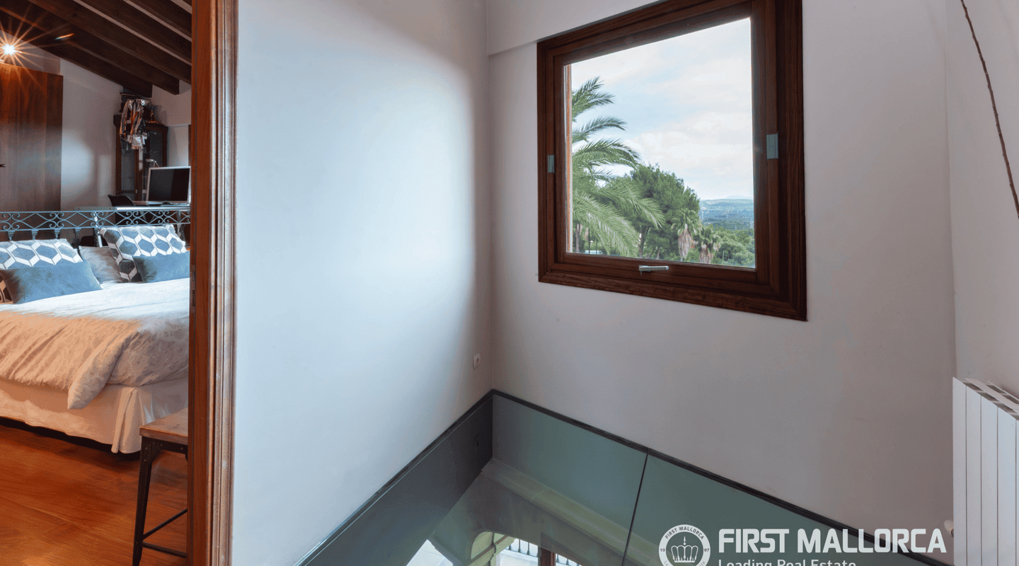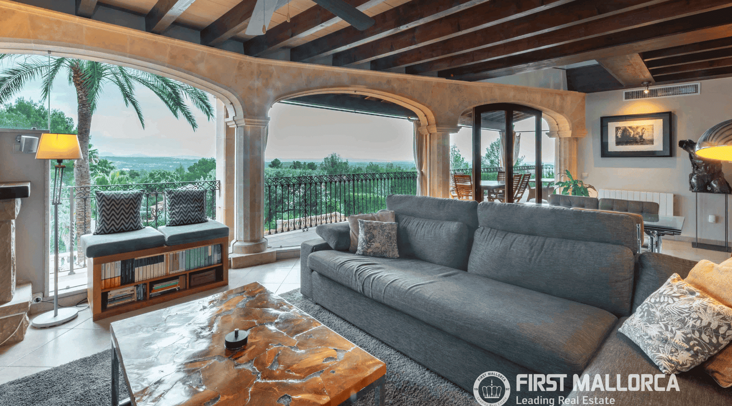 Панорамные виды в Са-Кома-де-Буньола Расположенная в престижном верхнем районе Са-Кома-де-Буньола, эта архитектурная жемчужина площадью 548 м² предлагает идеальный баланс между горным спокойствием и близостью к городу. Всего в 20 минутах от оживленного центра Пальмы, это поместье с ориентацией на юго-восток встречает первые лучи рассвета и утопает в естественном солнечном свете в течение всего дня.