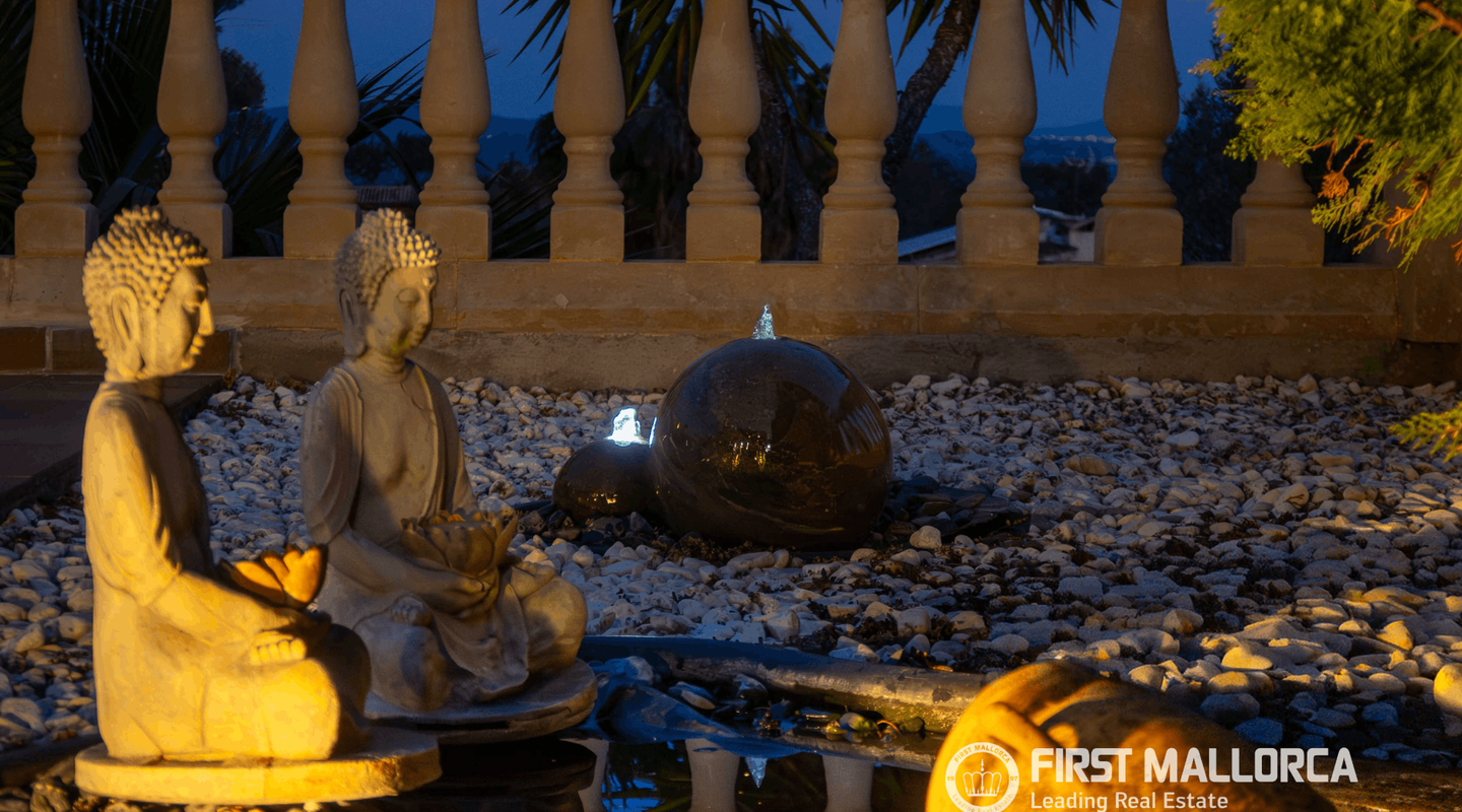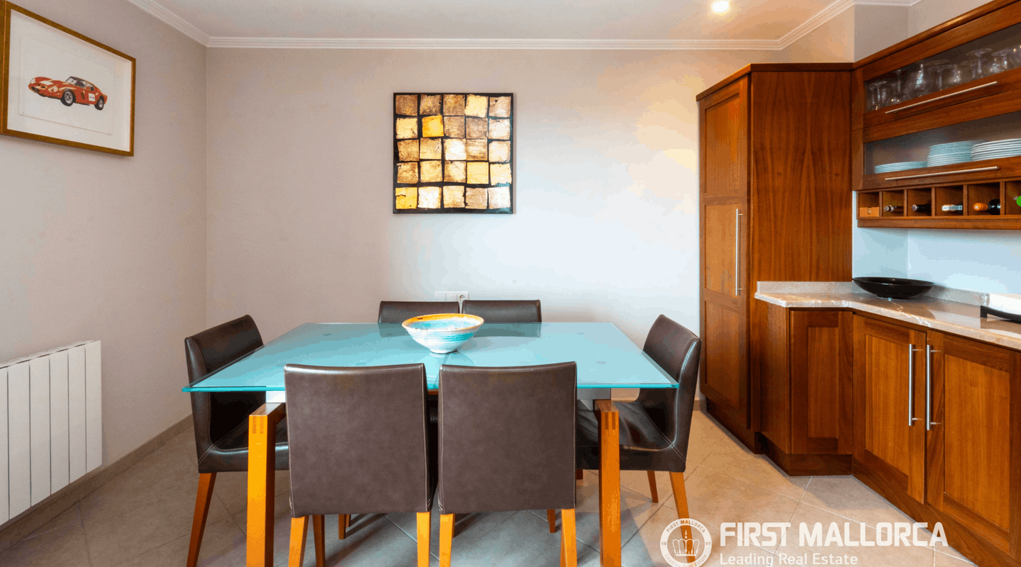 Панорама Выйдите на просторные террасы, чтобы увидеть главное сокровище этого дома: захватывающие, ничем не ограниченные виды на залив Пальмы. Отдыхаете ли вы у бирюзового бассейна или наслаждаетесь ужином на закате — средиземноморский пейзаж станет вашими "живыми обоями".