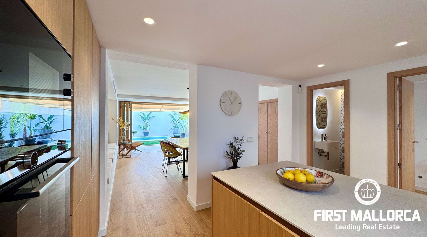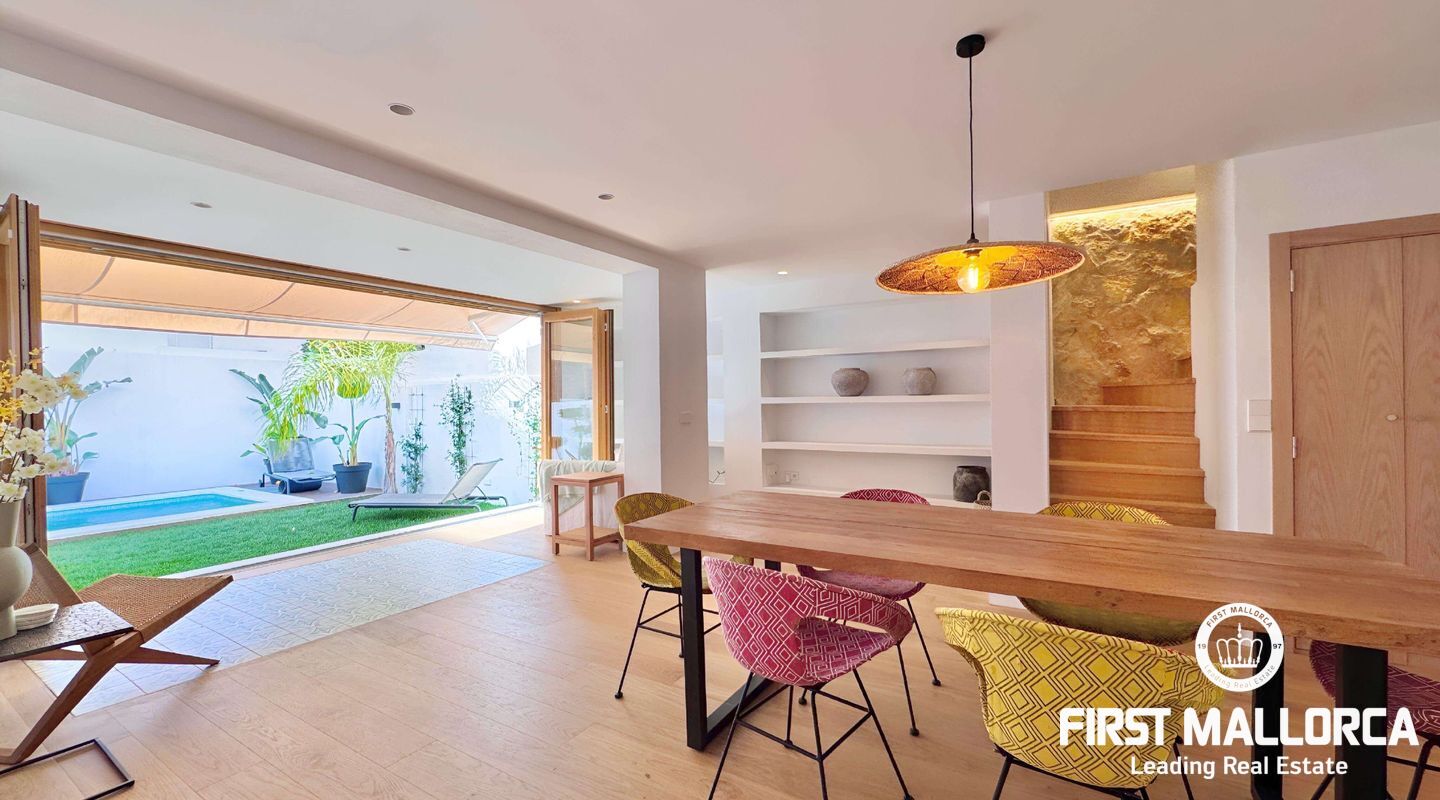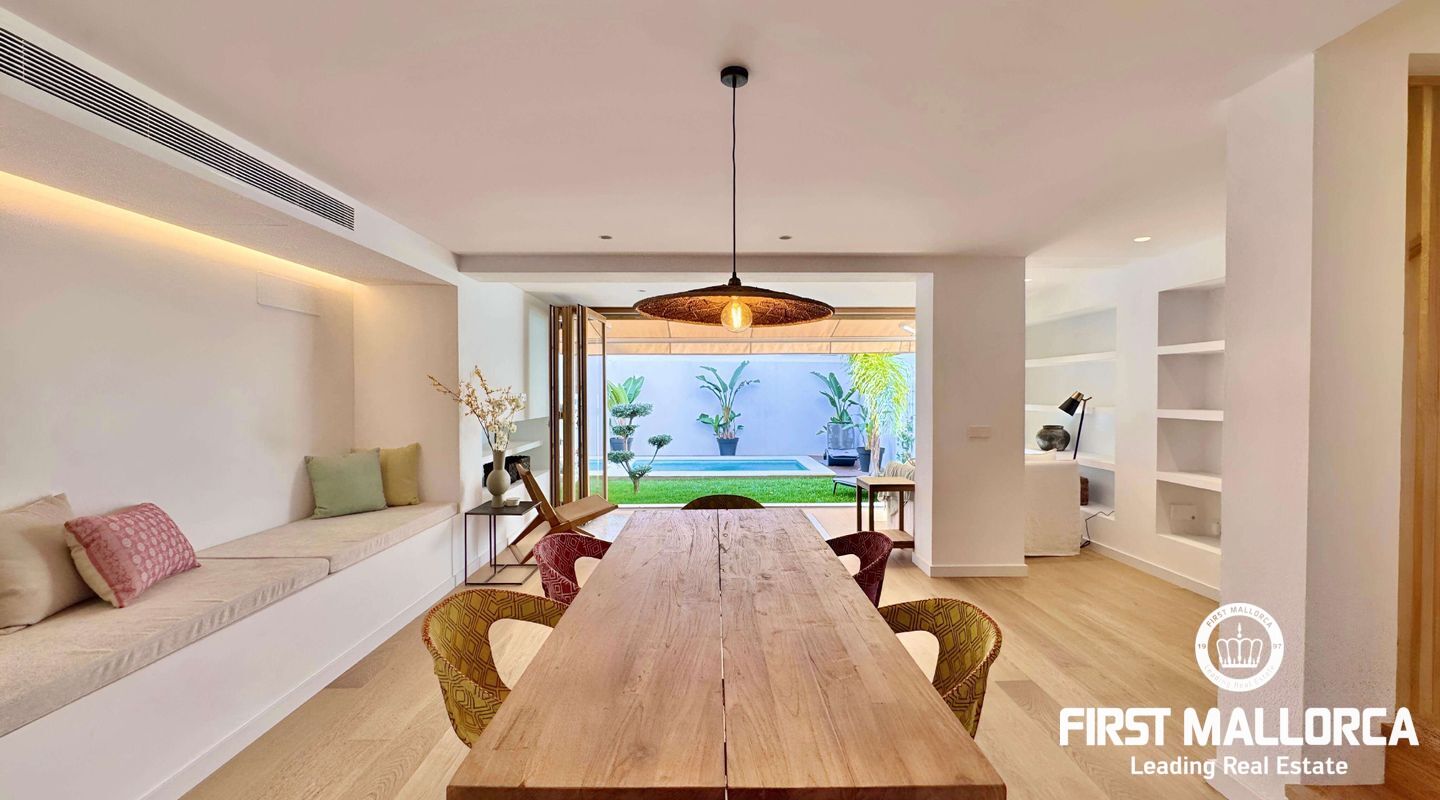 Оригинальный дом был полностью перестроен, сохранив интересные объемы в некоторых частях. Все системы были изменены, включая полы с подогревом и канальную систему кондиционирования воздуха. Удачное расположение рядом с центром города и известным рынком Санта-Каталина позволяет иметь все необходимое всего в нескольких метрах. На первом этаже находится просторная гостиная-столовая с выходом на террасу и в сад с красивым бассейном. Оборудованная кухня, прачечная и ванная комната. На втором этаже находится главная спальня с ванной комнатой, спальня с двуспальной кроватью и спальня с одной кроватью или кабинет. На втором этаже находится многофункциональная комната большого объема, ванная комната и две одноместные комнаты.