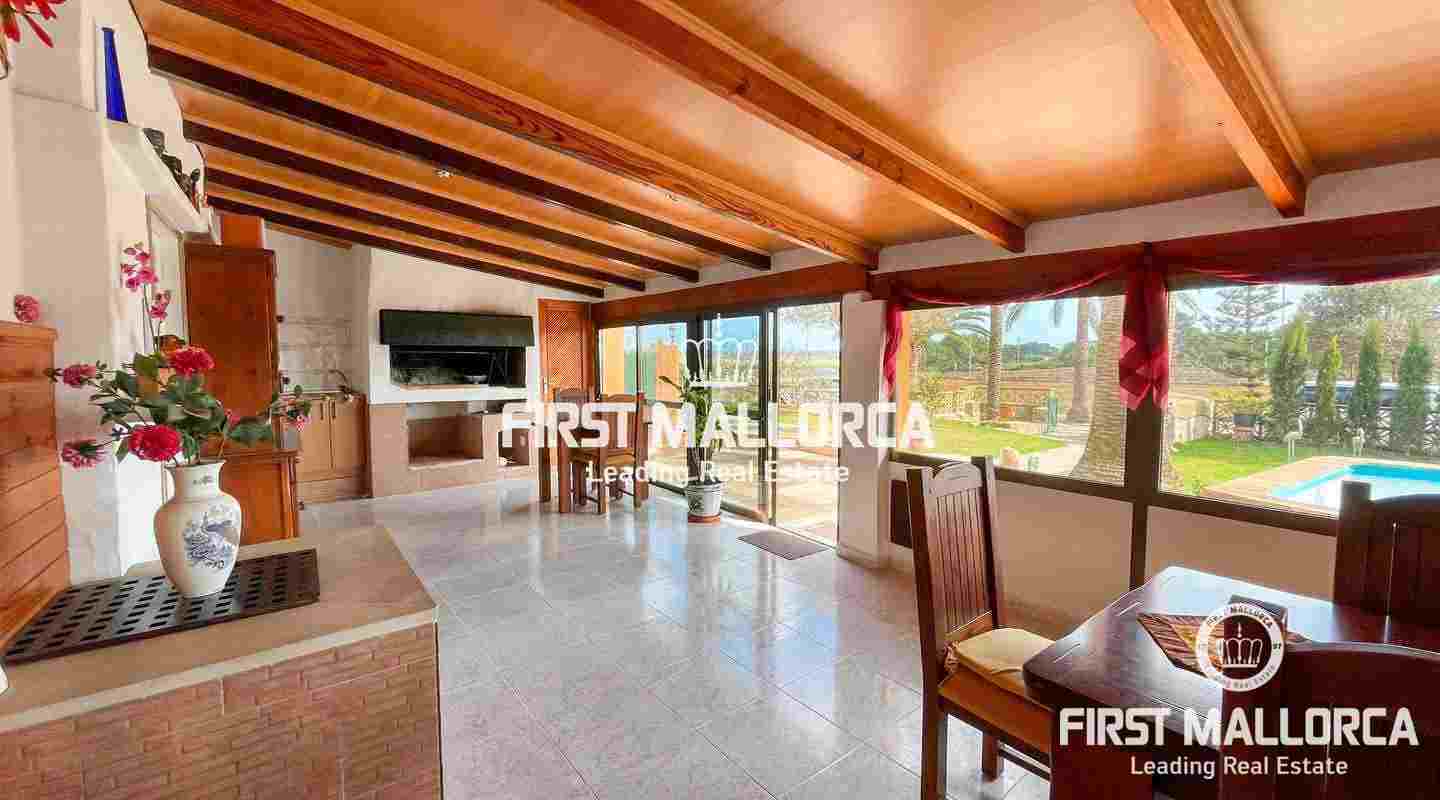 В усадьбе есть три спальни, одна с ванной комнатой. Также есть собственный бассейн и крытые террасы с большим барбекю.