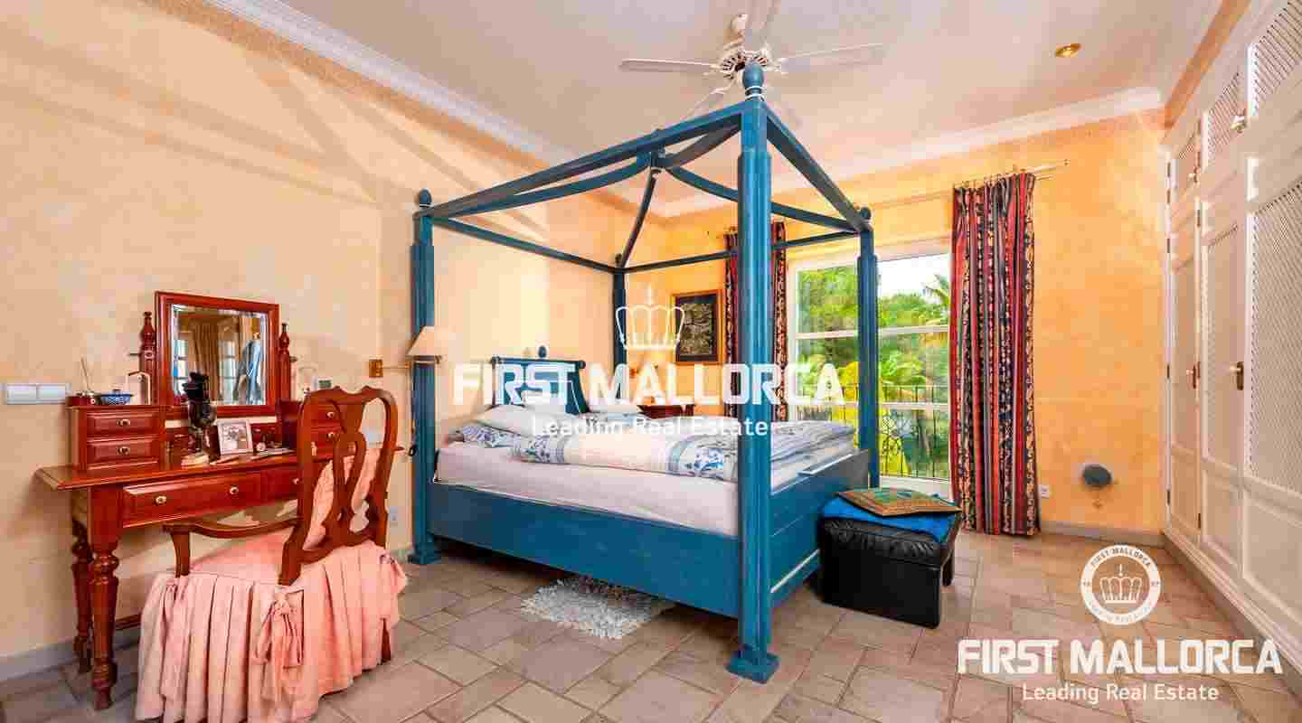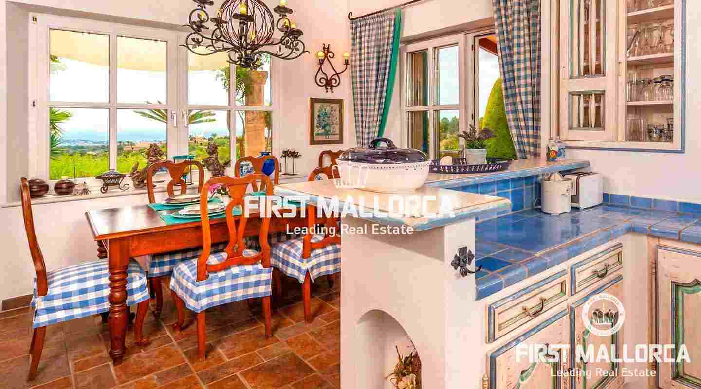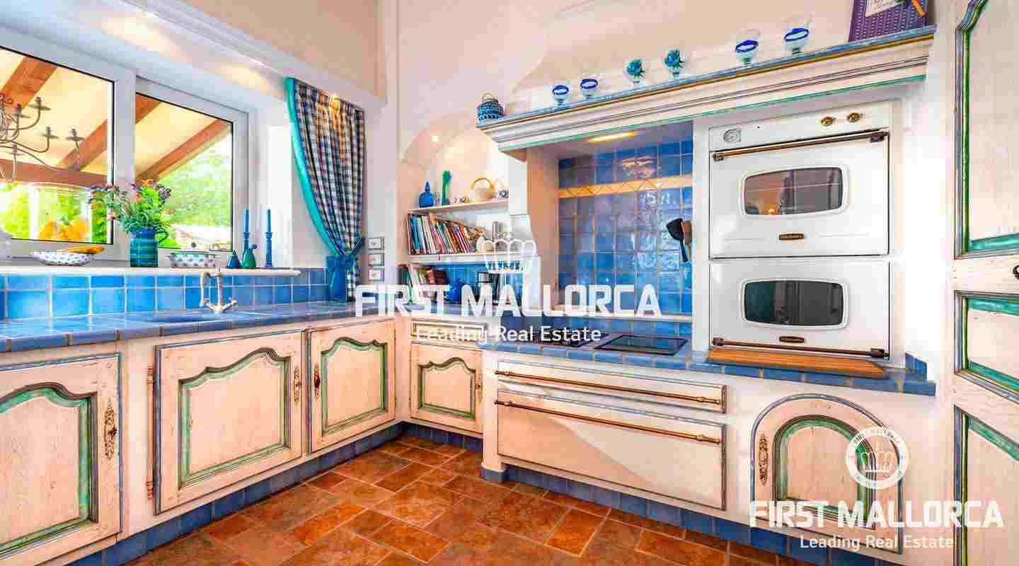 Вилла класса люкс в майоркинском стиле с идеальной планировкой комнат была построена из материалов высочайшего качества. На главном жилом уровне виллы находится главная спальня, еще одна спальня и просторная гостиная с камином, кухней открытой планировки и столовой. На нижнем уровне находится квартира для гостей, просторный гараж и дополнительные помещения, которые обладают большим потенциалом.