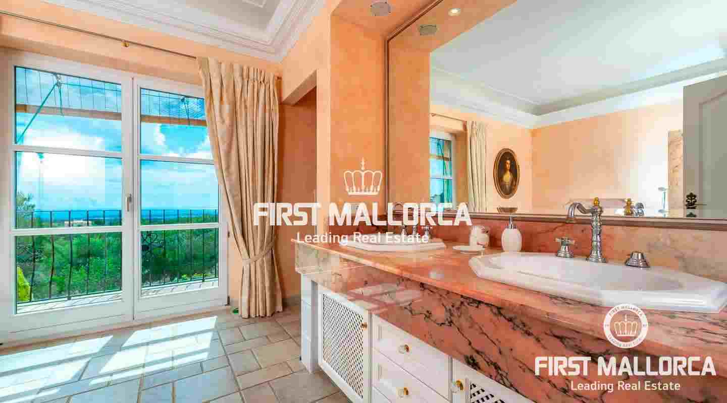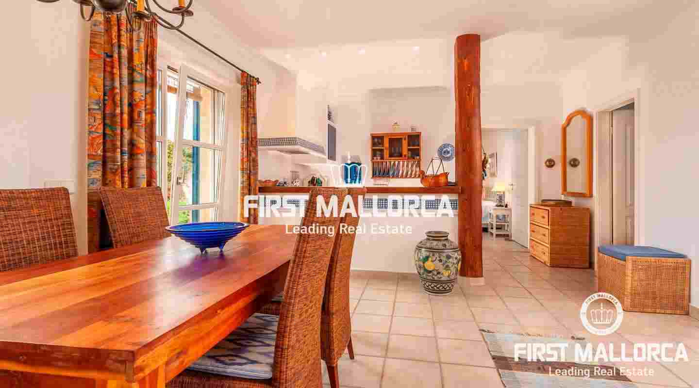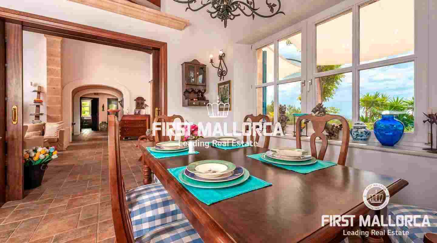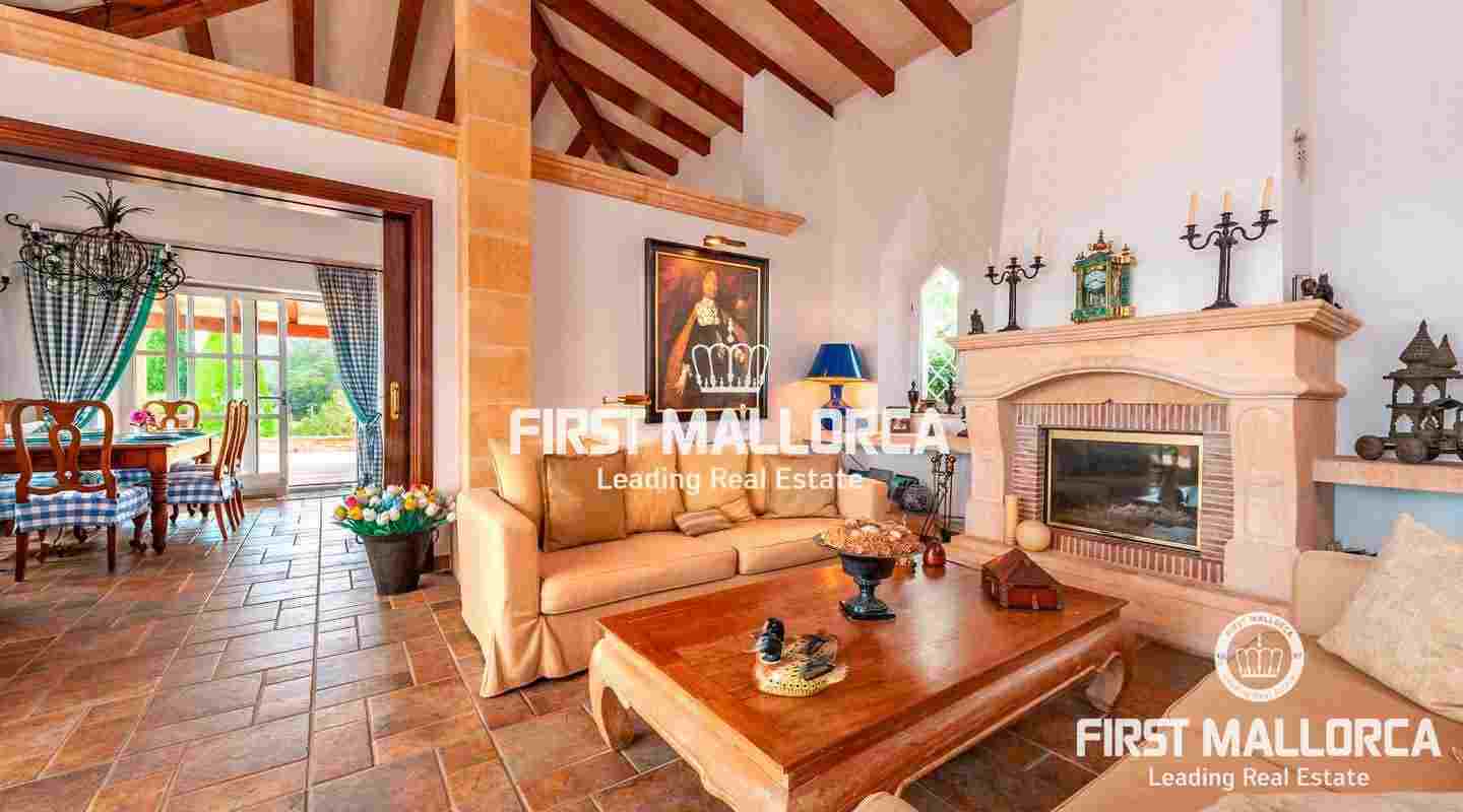 Вилла класса люкс в майоркинском стиле с идеальной планировкой комнат была построена из материалов высочайшего качества. На главном жилом уровне виллы находится главная спальня, еще одна спальня и просторная гостиная с камином, кухней открытой планировки и столовой. На нижнем уровне находится квартира для гостей, просторный гараж и дополнительные помещения, которые обладают большим потенциалом.