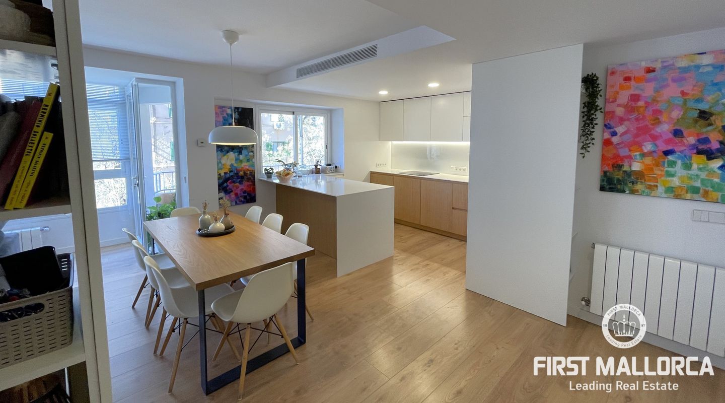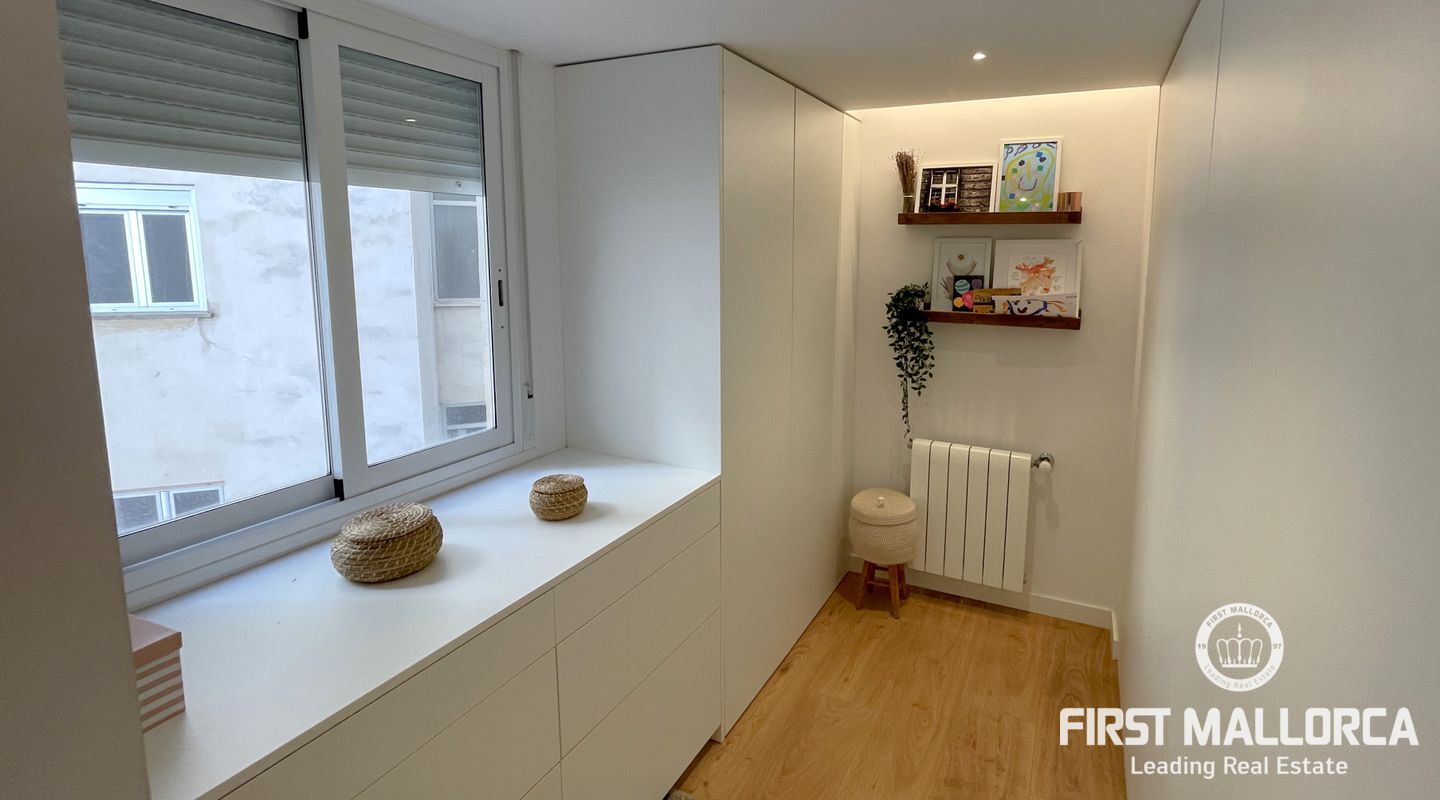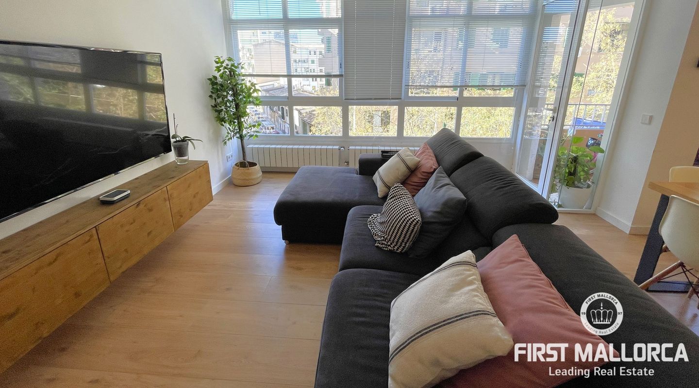 Эта 3-комнатная квартира расположена в центре города Пальма и была полностью отремонтирована. Большая светлая гостиная с открытой кухней предлагает достаточно места для всей семьи. Помимо 3 спален, в квартире есть 2 ванные комнаты, одна из которых смежная.