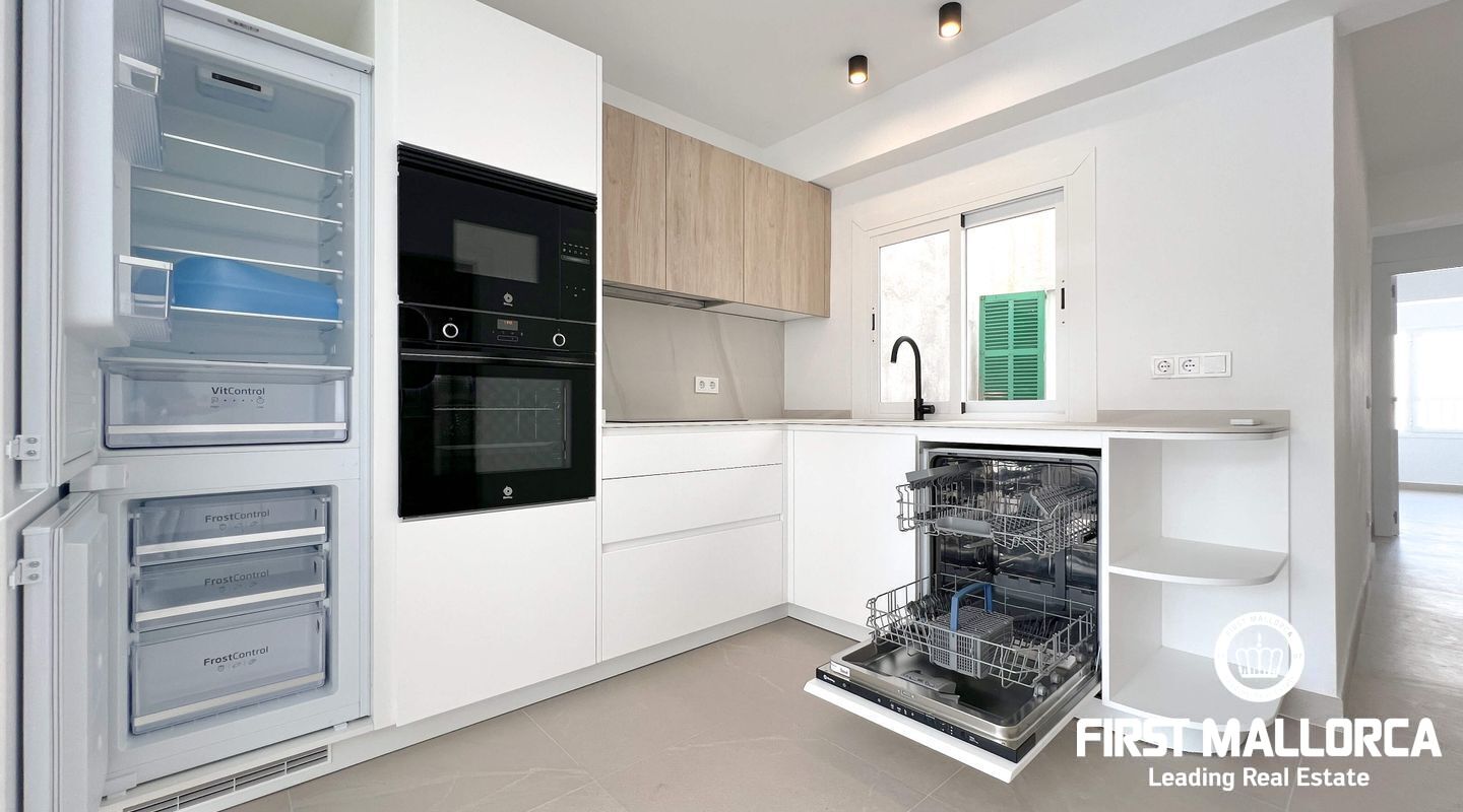 Эта недавно отремонтированная квартира в современном стиле расположена в районе Пальмы "Эль Камп д'эн Серральта". Жилая площадь квартиры, построенной в 1974 году, составляет около 66 квадратных метров, и она очень светлая благодаря большим окнам. Есть две спальни и современная ванная комната с душем (и окном). Новые кондиционеры (горячий/холодный) установлены во всех комнатах и обеспечивают приятную температуру в помещении круглый год. В просторной гостиной также есть современная высококачественная кухня (из Манакора), которая оснащена всеми стандартными электроприборами. Черные ручки и фурнитура присутствуют на всех дверях и в ванной комнате, расставляя акценты и сочетаясь с цветом плитки. В рамках ремонтных работ была заменена вся электрика и водопроводные трубы, а также стеклопакеты на окнах и дверях! Квартира расположена на третьем этаже небольшого жилого дома. Есть общая терраса с небольшим трастеро, где установлена стиральная машина и где еще есть место для ваших личных вещей. Коммунальные расходы составляют 45 евро в месяц и оплачиваются каждые 3 месяца. Если вы видите себя в качестве нового владельца и очень заинтересованы в этой недвижимости, пожалуйста, не стесняйтесь связаться с нами. Мы с нетерпением ждем вашего звонка!