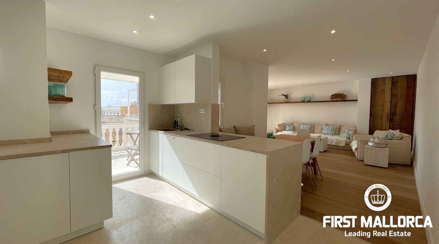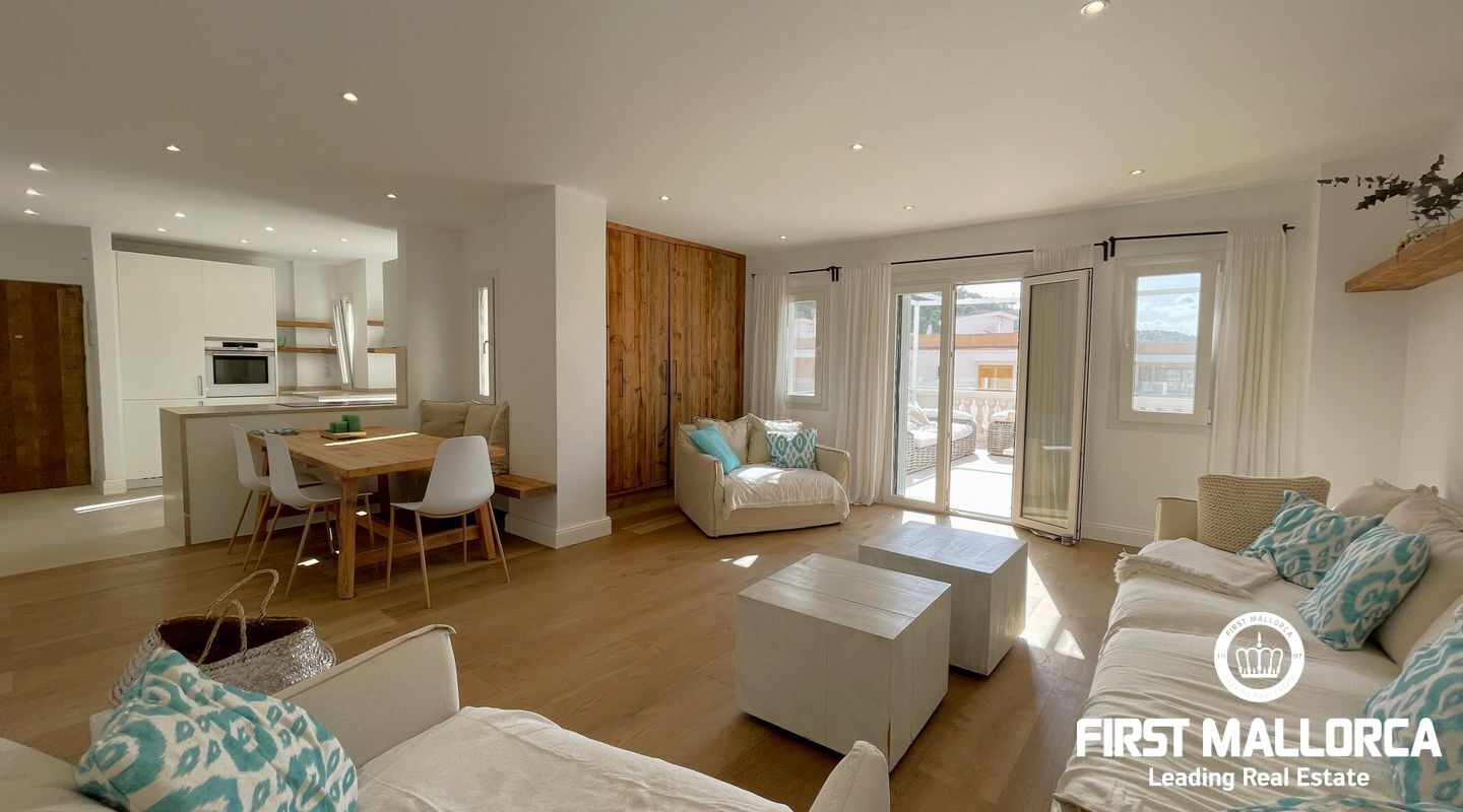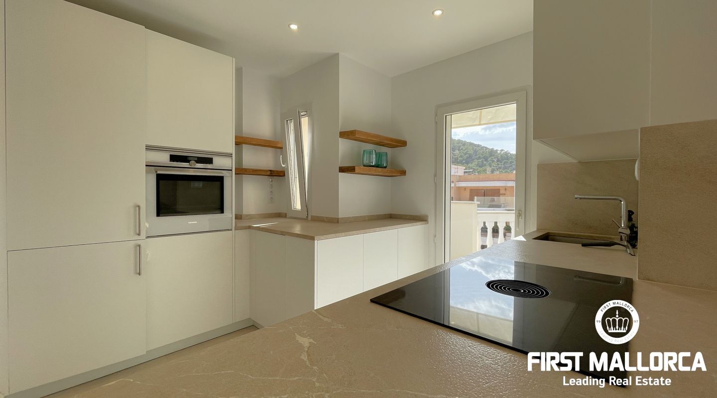 Современная кухня открытой планировки, уютная гостиная-столовая с выходом на очаровательную террасу, идеально подходящую для обедов на свежем воздухе и отдыха, а с большой террасы на крыше открывается непревзойденный вид на море и панорамный вид на окружающие горы, идеальный для развлечений и спокойных закатов.