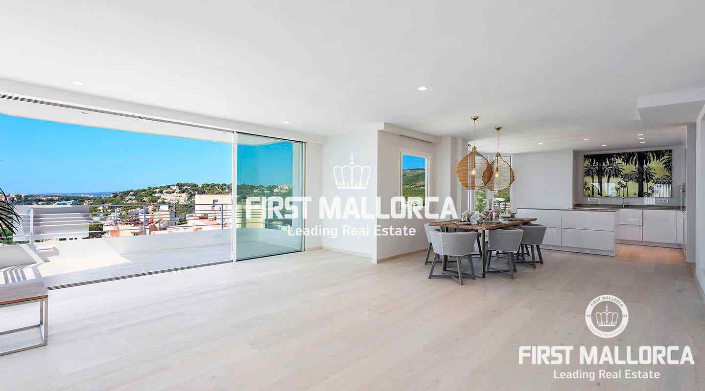 Очень просторный пентхаус, занимающий весь верхний этаж жилого дома. Отсюда открывается не только прекрасный вид на море, залив Пальмы до Кабреры, но и панорамный вид на 360 градусов, так что вы можете увидеть замок Беллвер, Королевский дворец или предгорья гор Трамунтана. Дом полностью реконструируется по высоким стандартам и будет готов к заселению весной 2019 года. В пентхаусе будет 4 спальни, каждая с ванной комнатой. Другие особенности включают: кондиционер горячего/холодного воздуха, полы с подогревом, натуральный камень и деревянные полы, гостевой туалет, кладовую, парковочные места, а в комплексе есть общий бассейн.